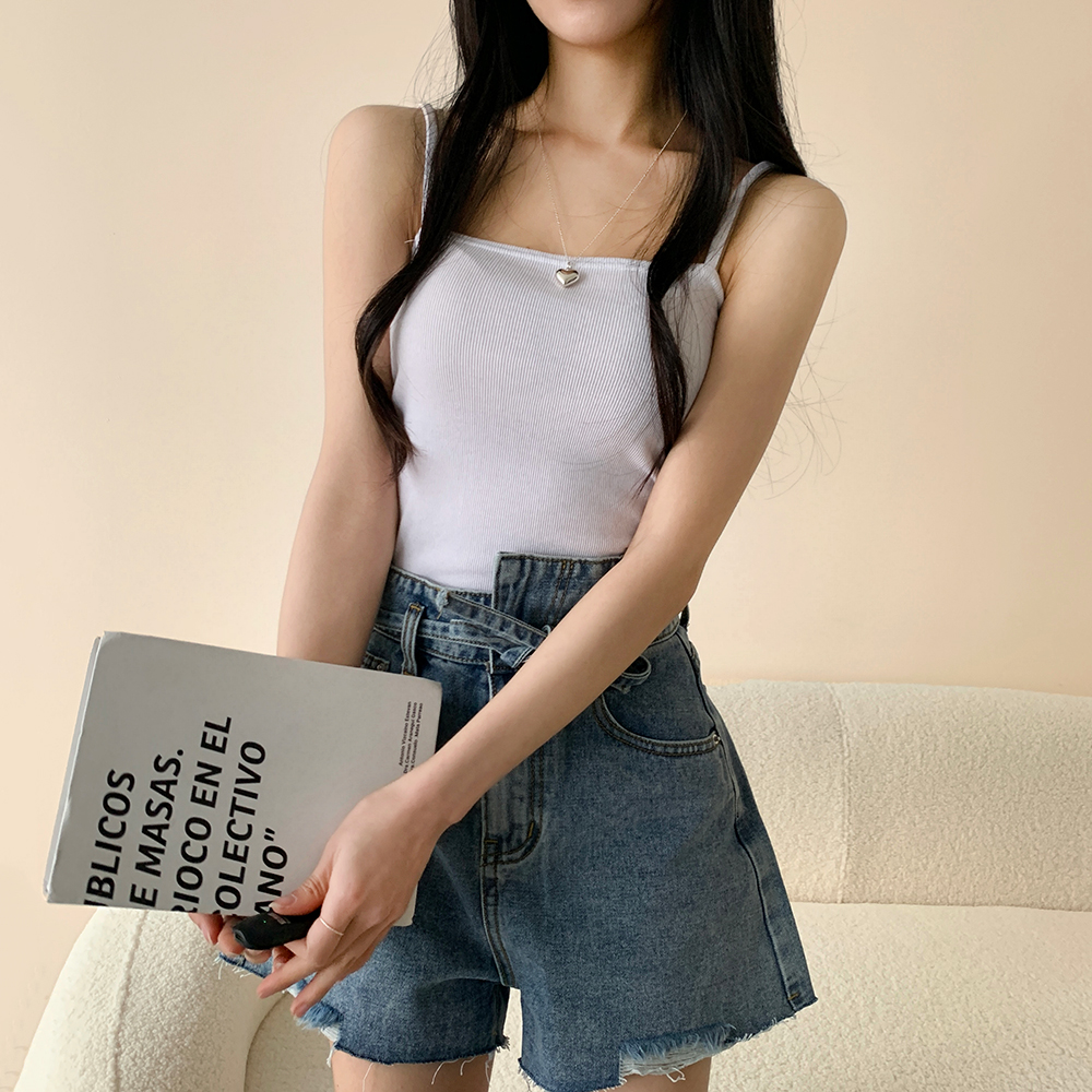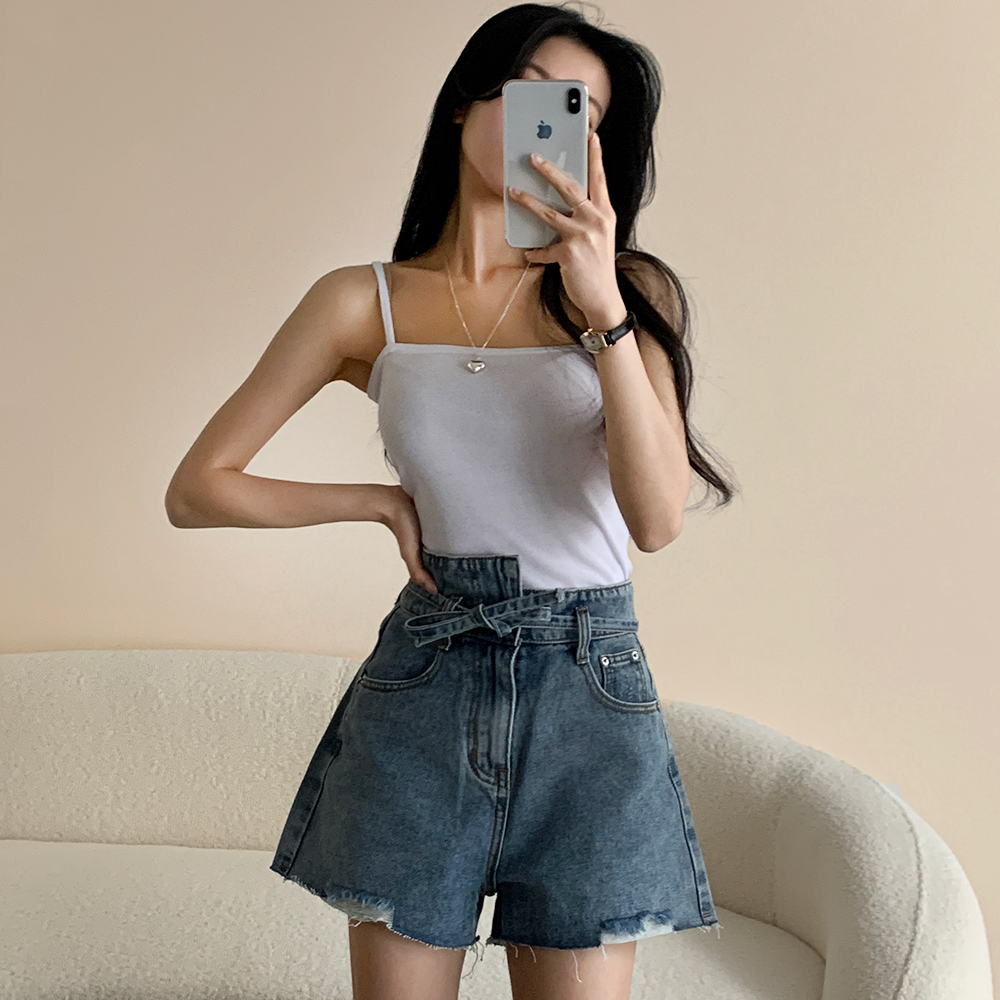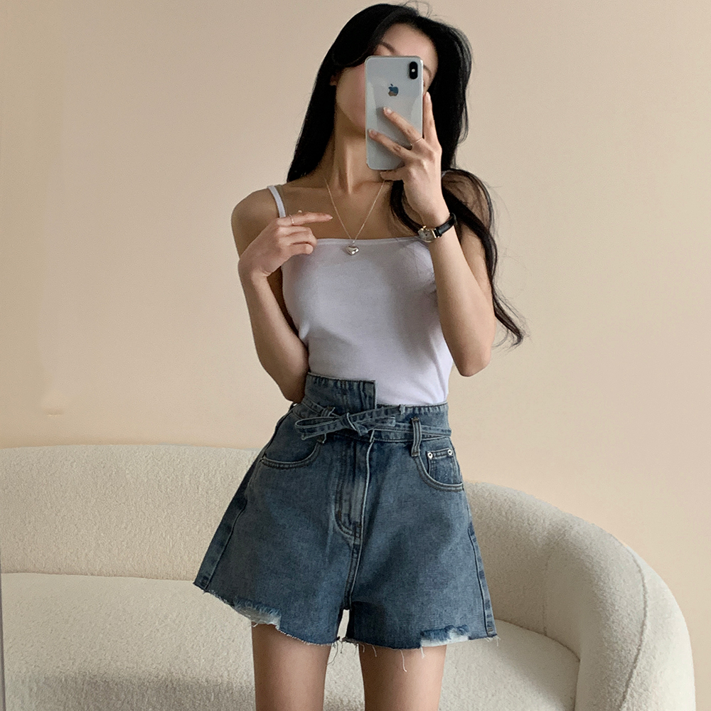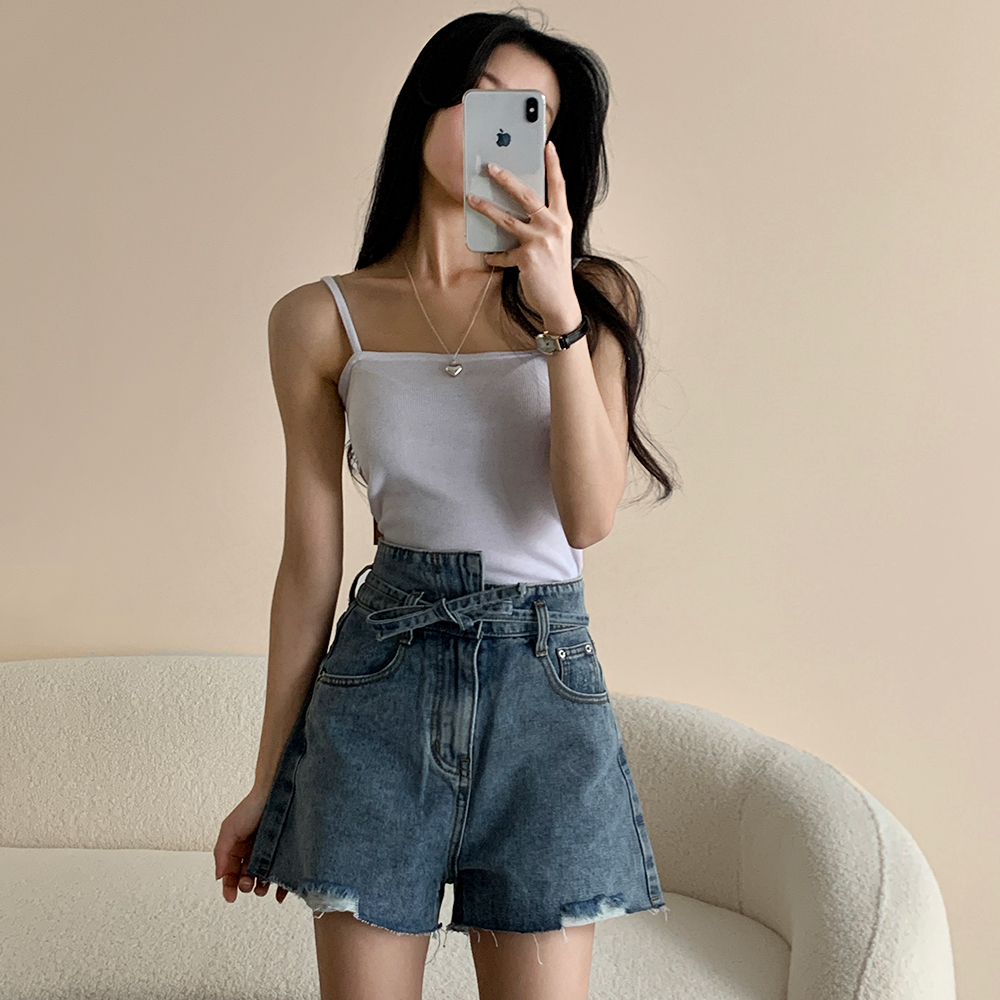 アシンメトリーリボンハイウエストパンツ