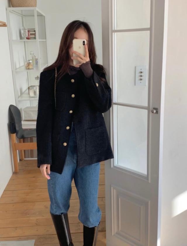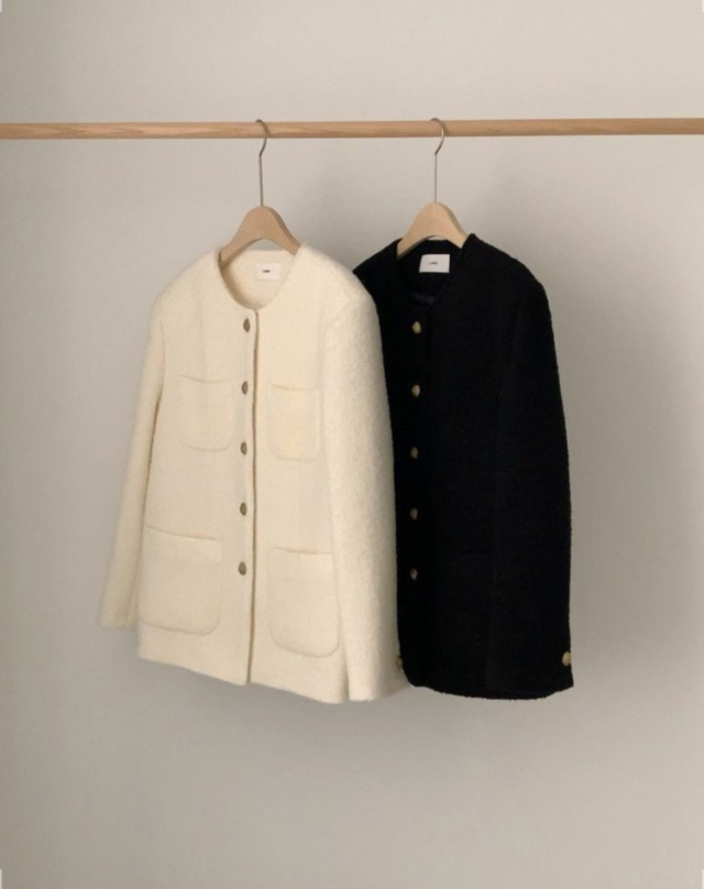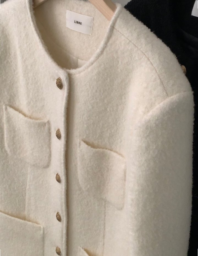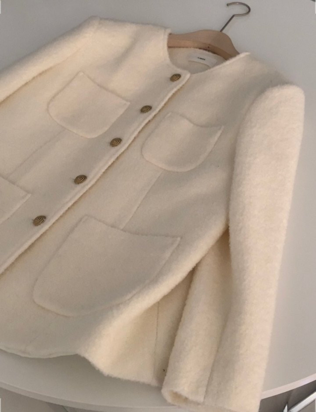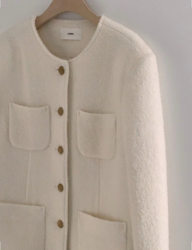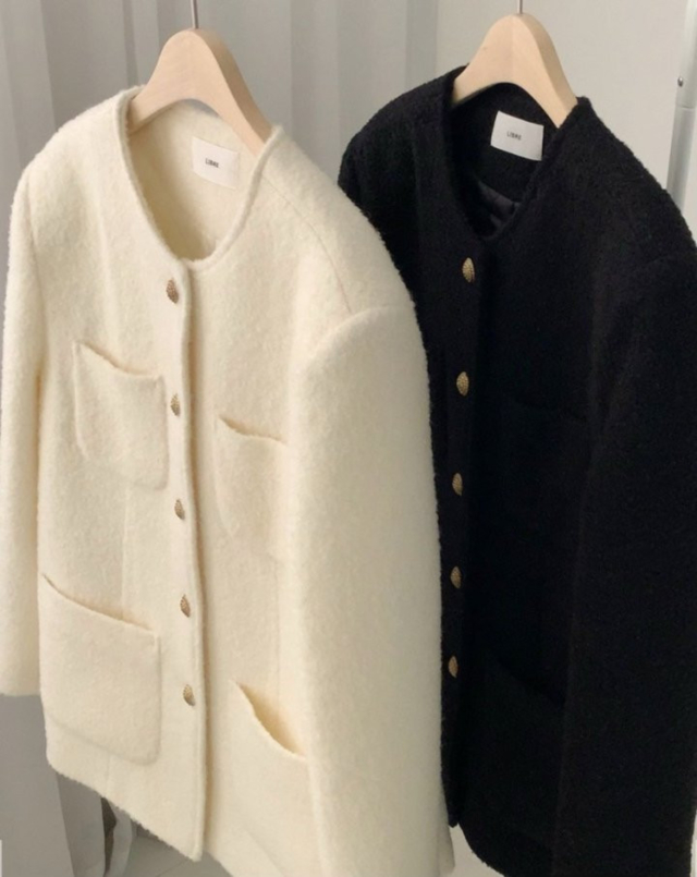 冬オーバーサイズウールキルティングノーカラーブークレツイードジャケット(2c)