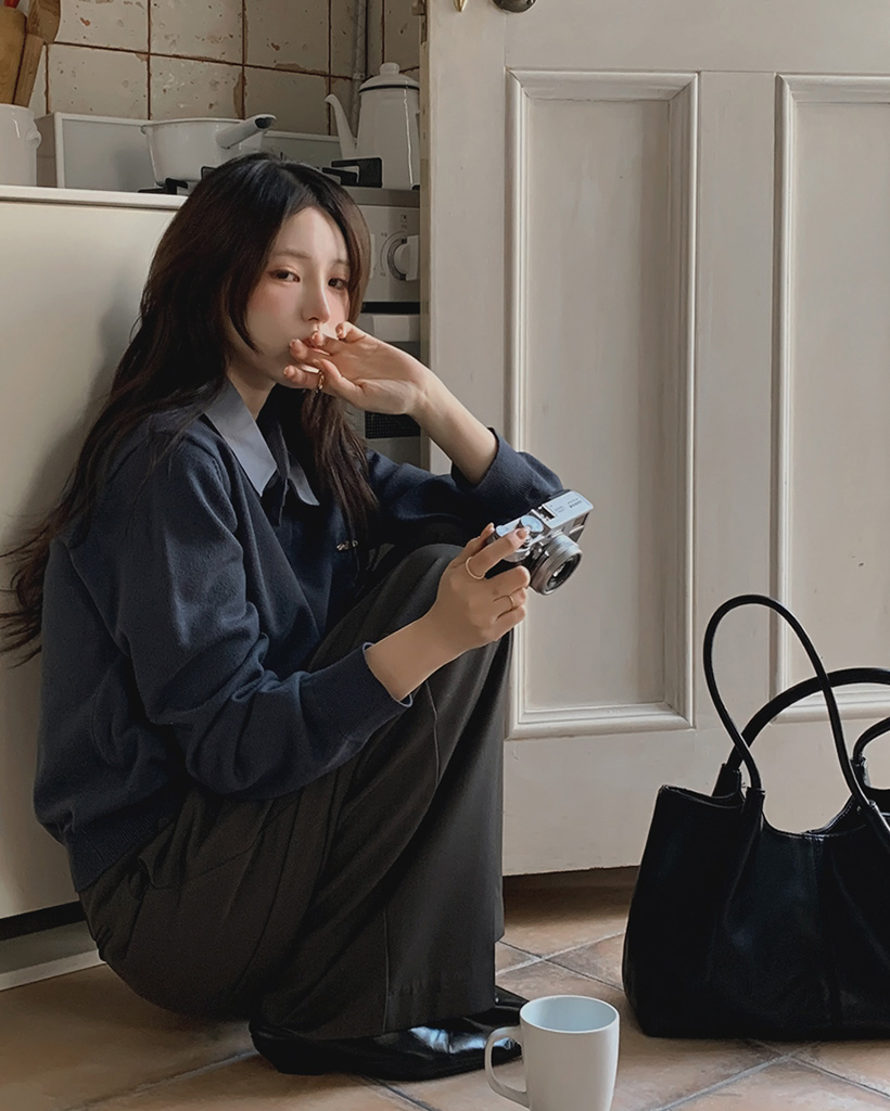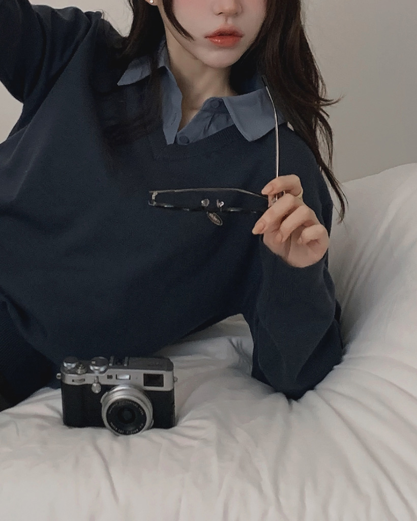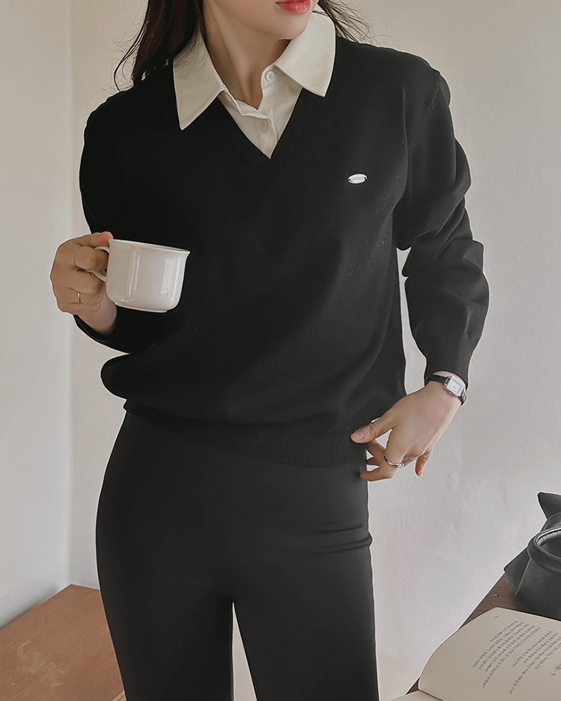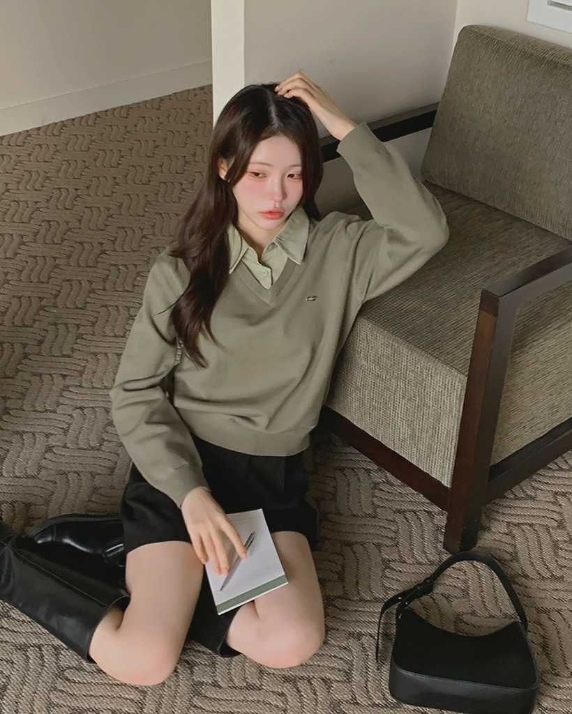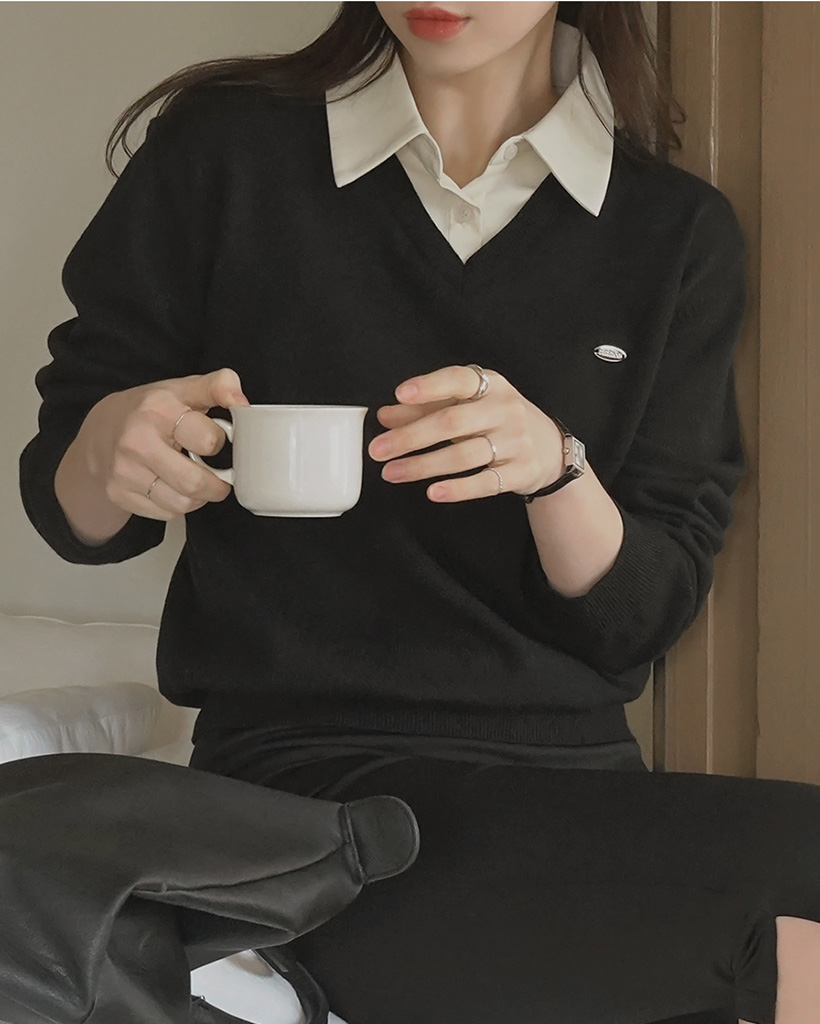 Vネックにシャツのカラーがナチュラルに