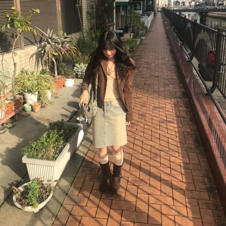 デニムベーシックミドル丈スカート