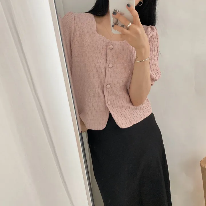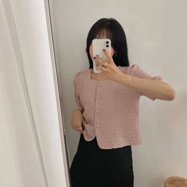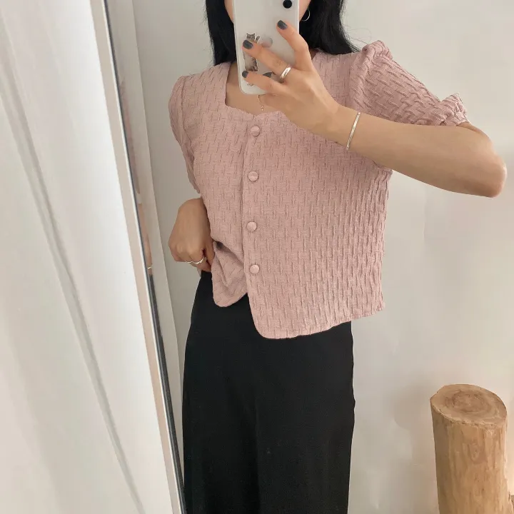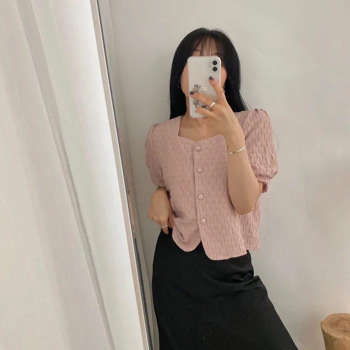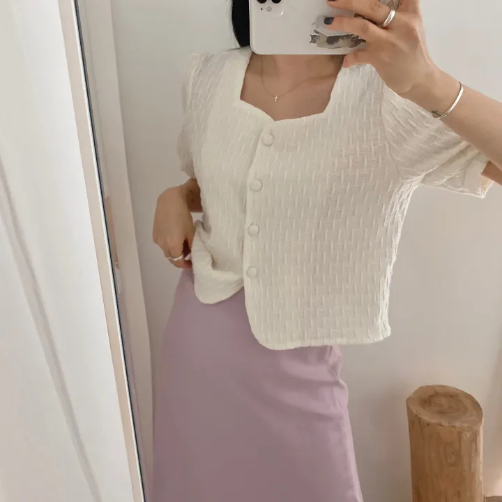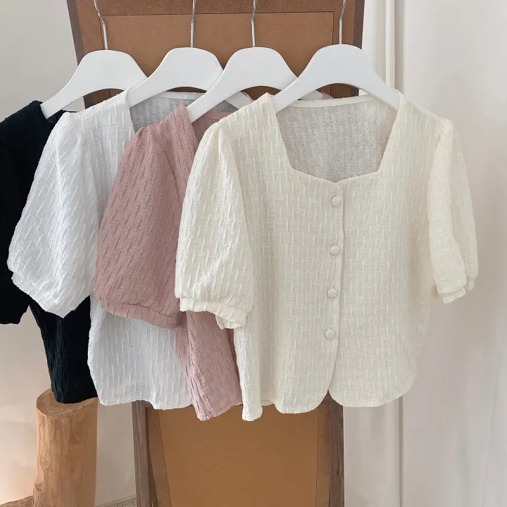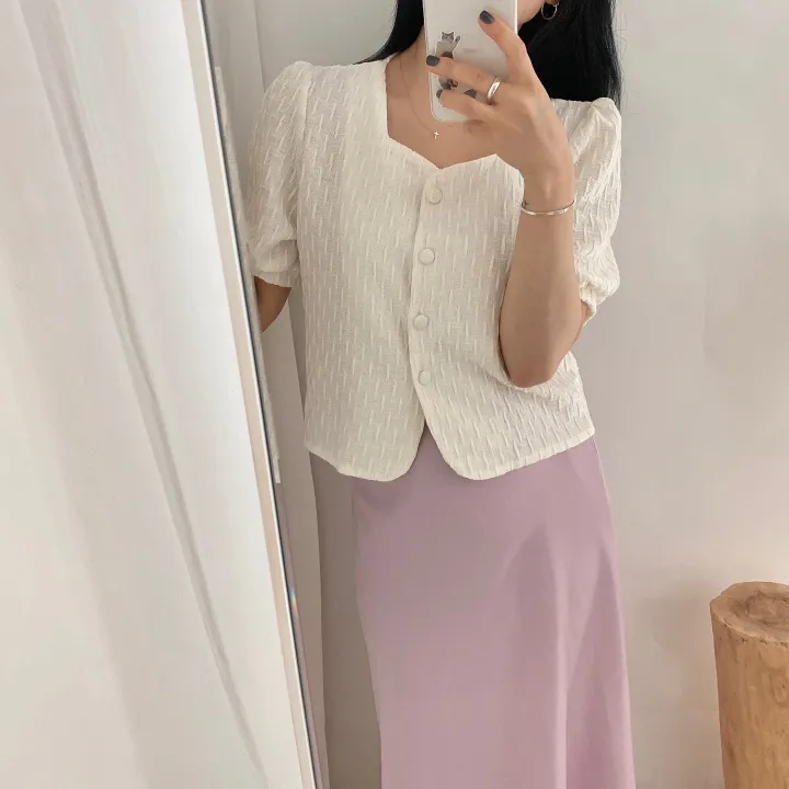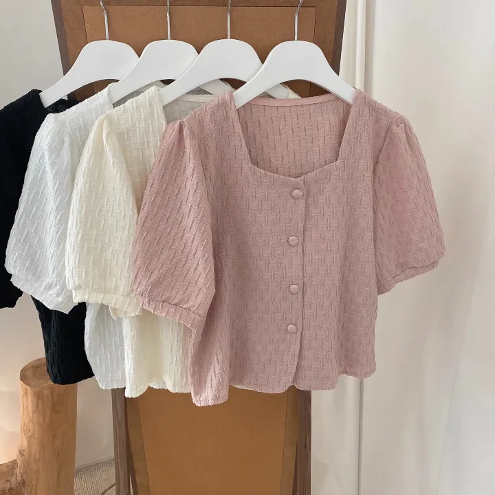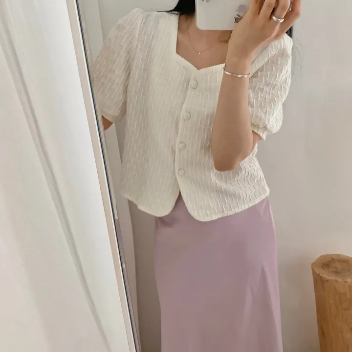スクエアネックパフ半袖ブラウス