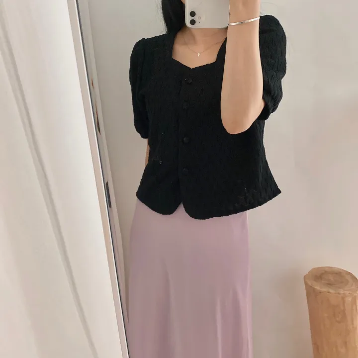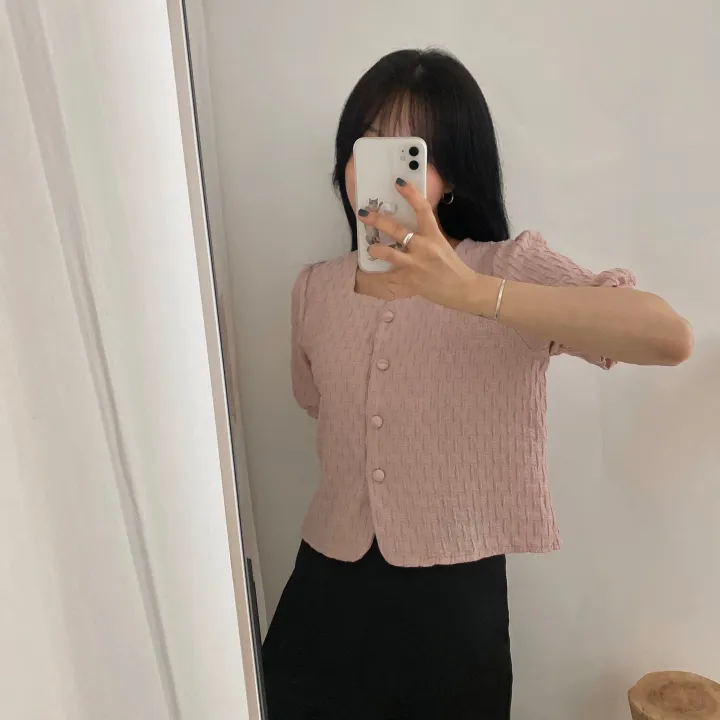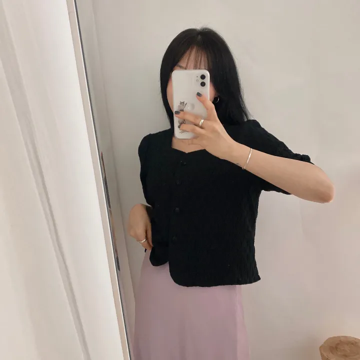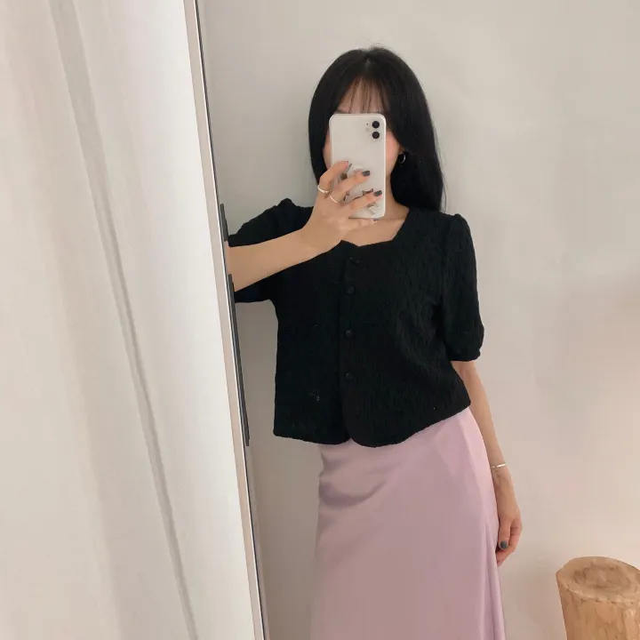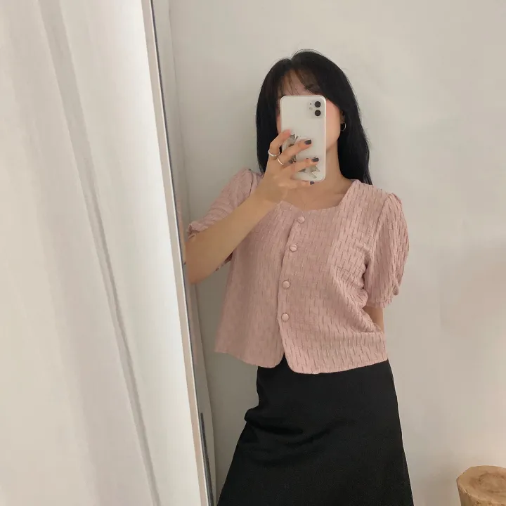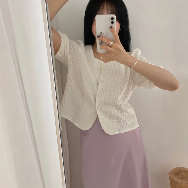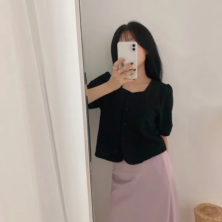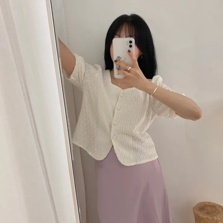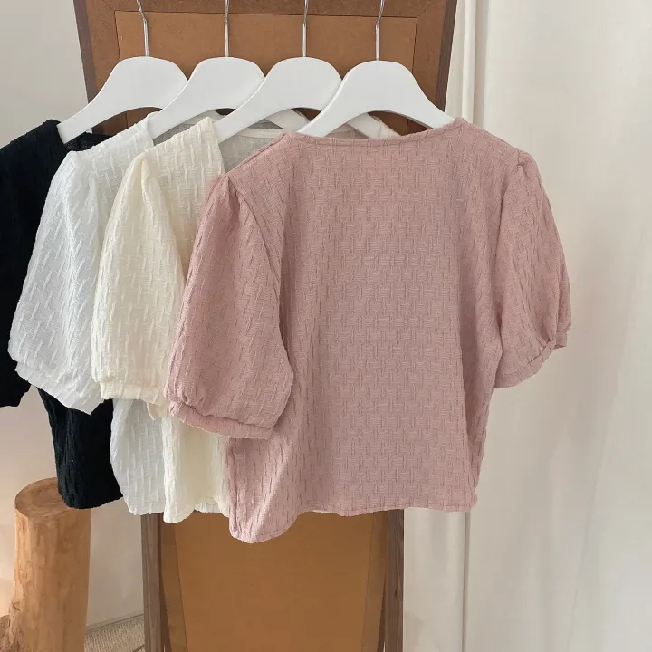 スクエアネックパフ半袖ブラウス