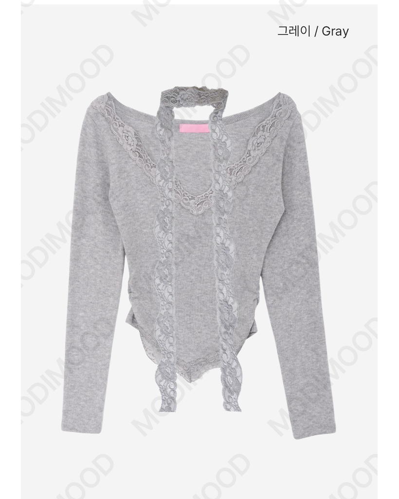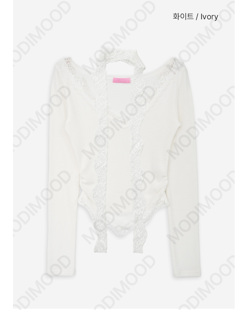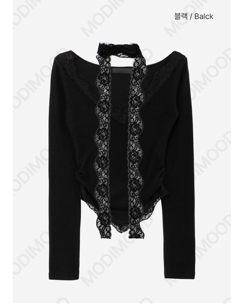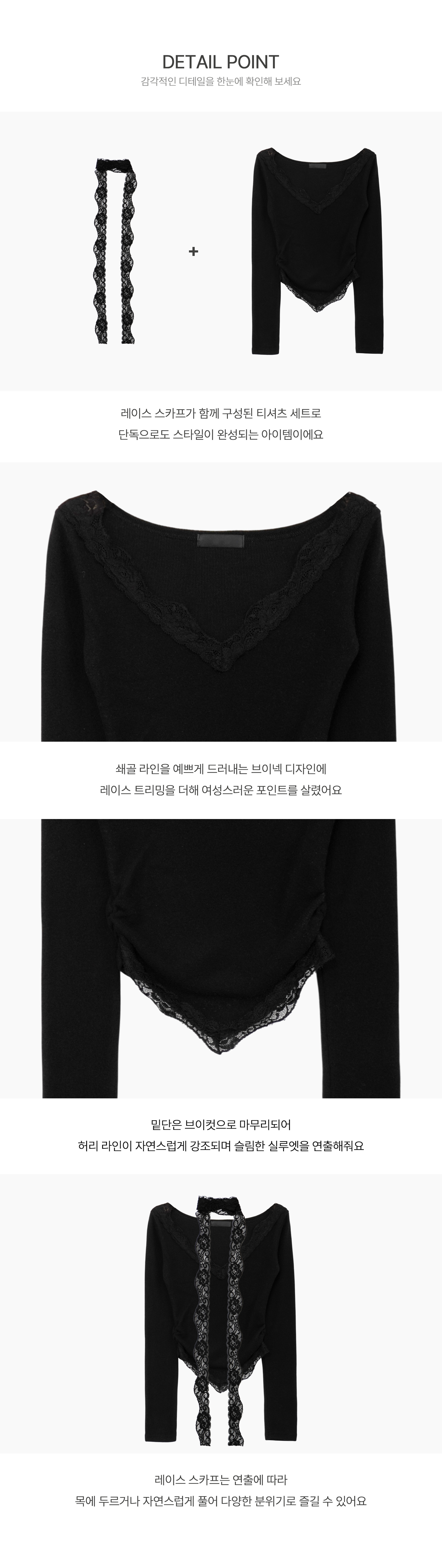 [set] Vネック レース Tシャツ スカーフ セット