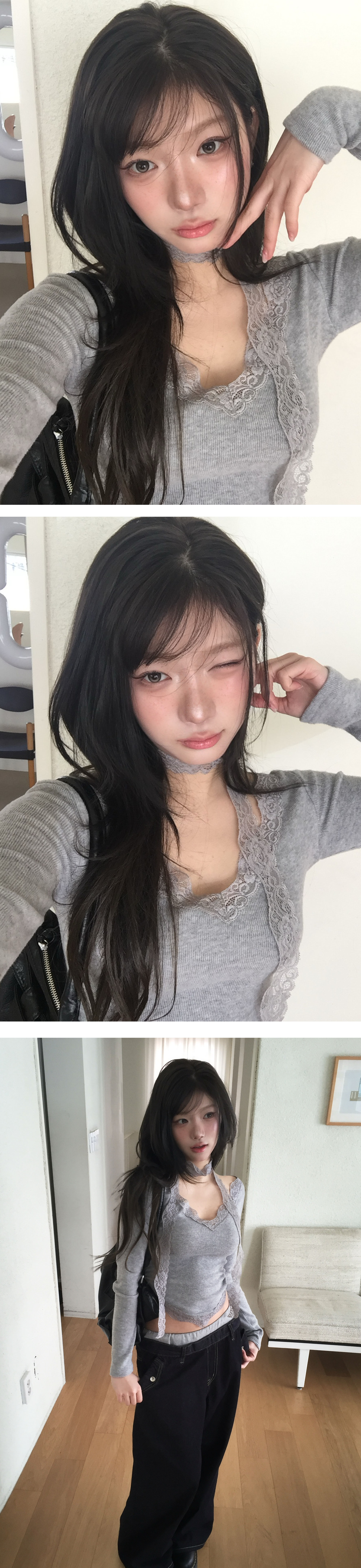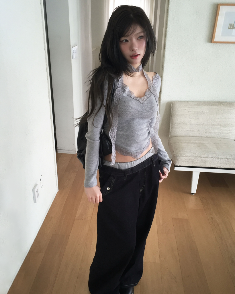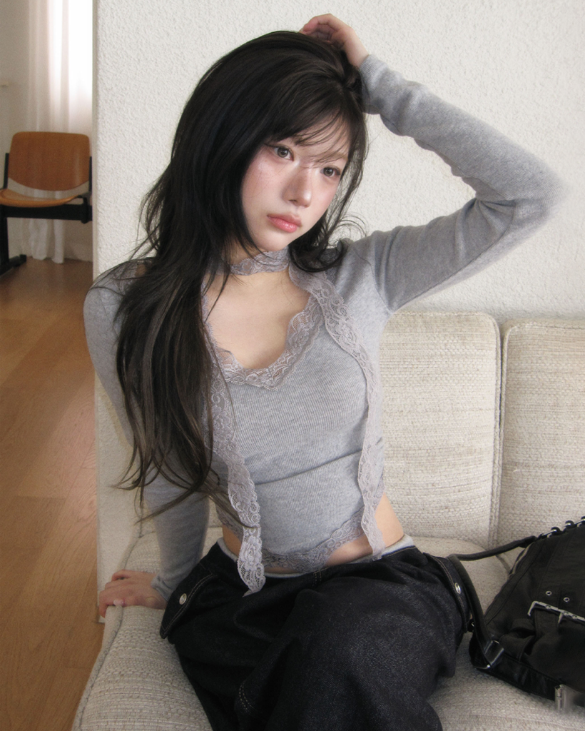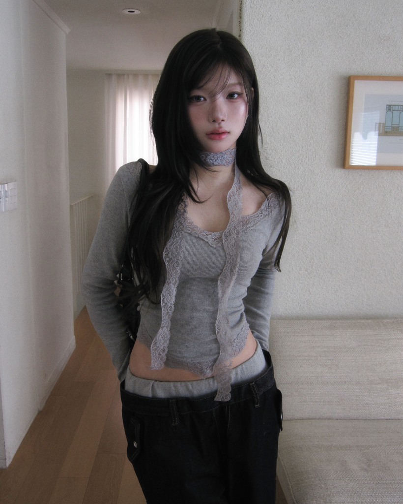 [set] Vネック レース Tシャツ スカーフ セット