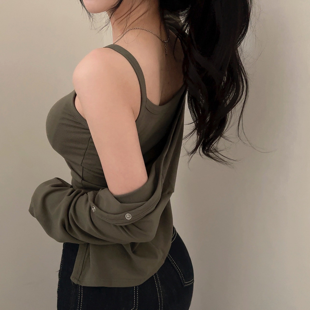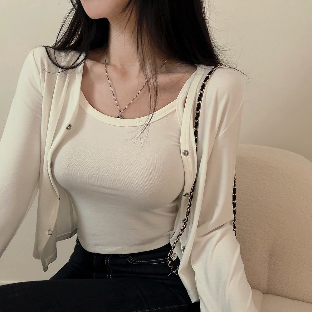 [SET] クロップドㅡ無地ノースリーブ+カーディガンセット