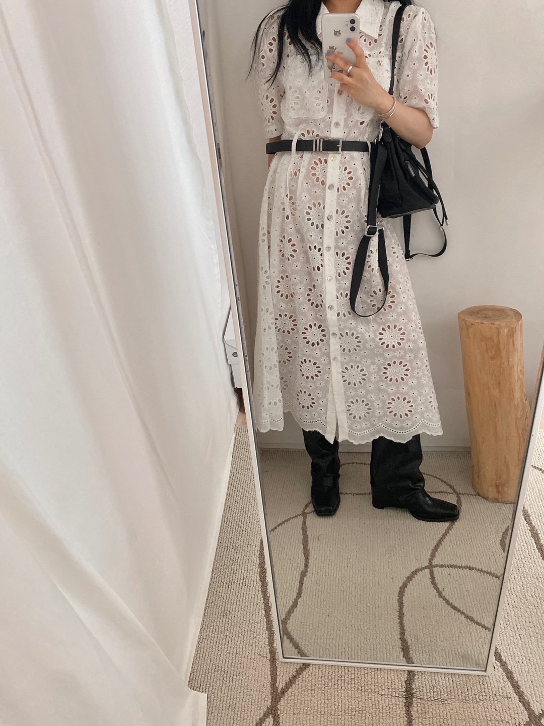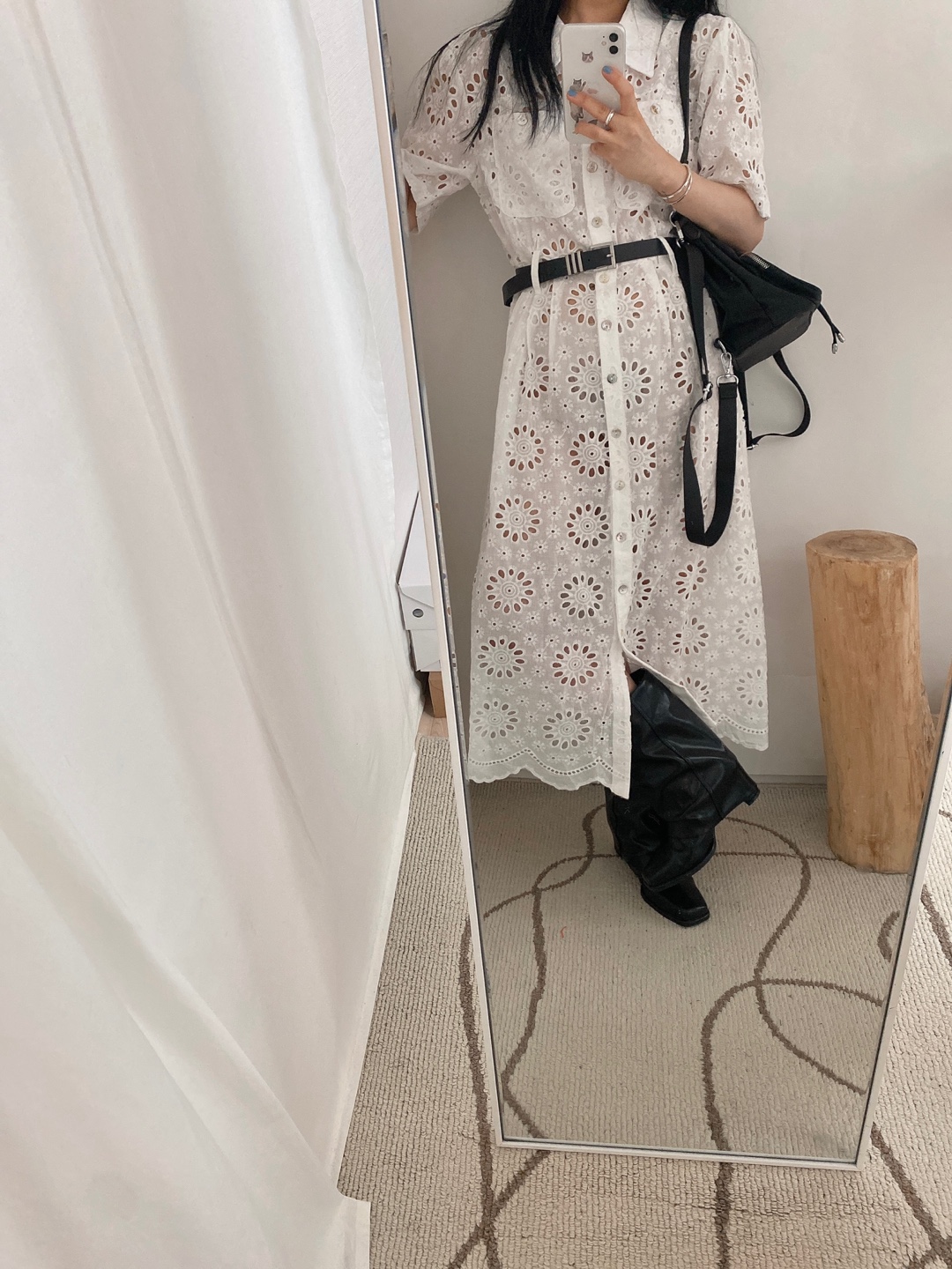 ワンピース-肩 43 胸 44 ウエスト 33 袖丈 28 アームホール 23 着丈 117 裾丈 95
