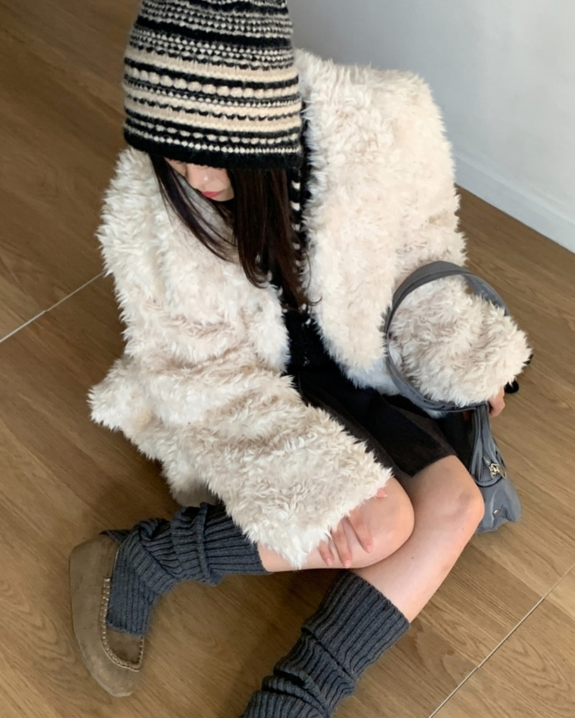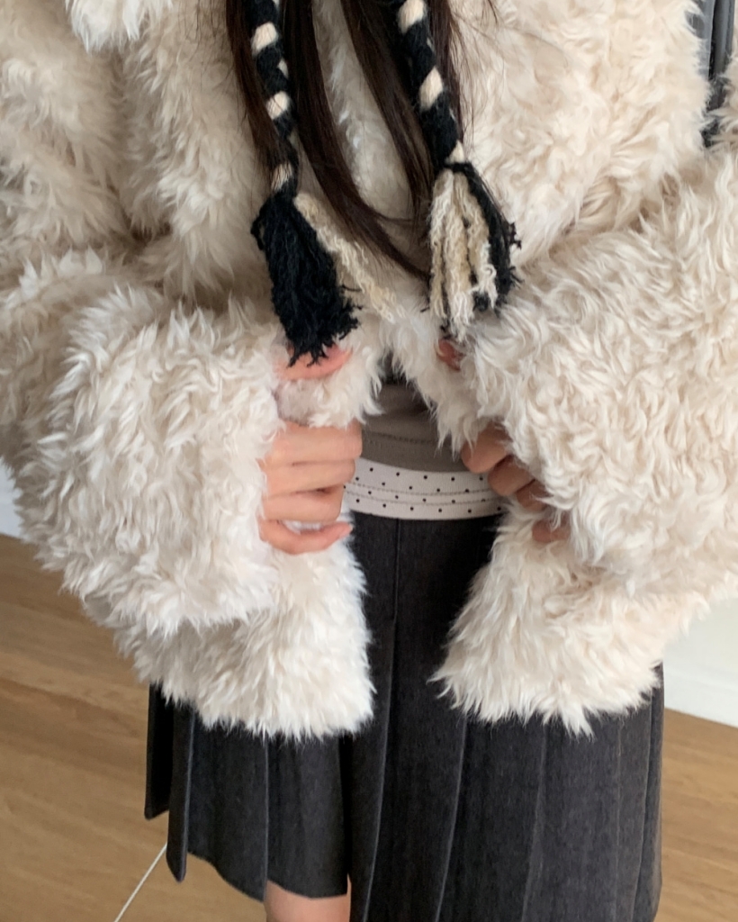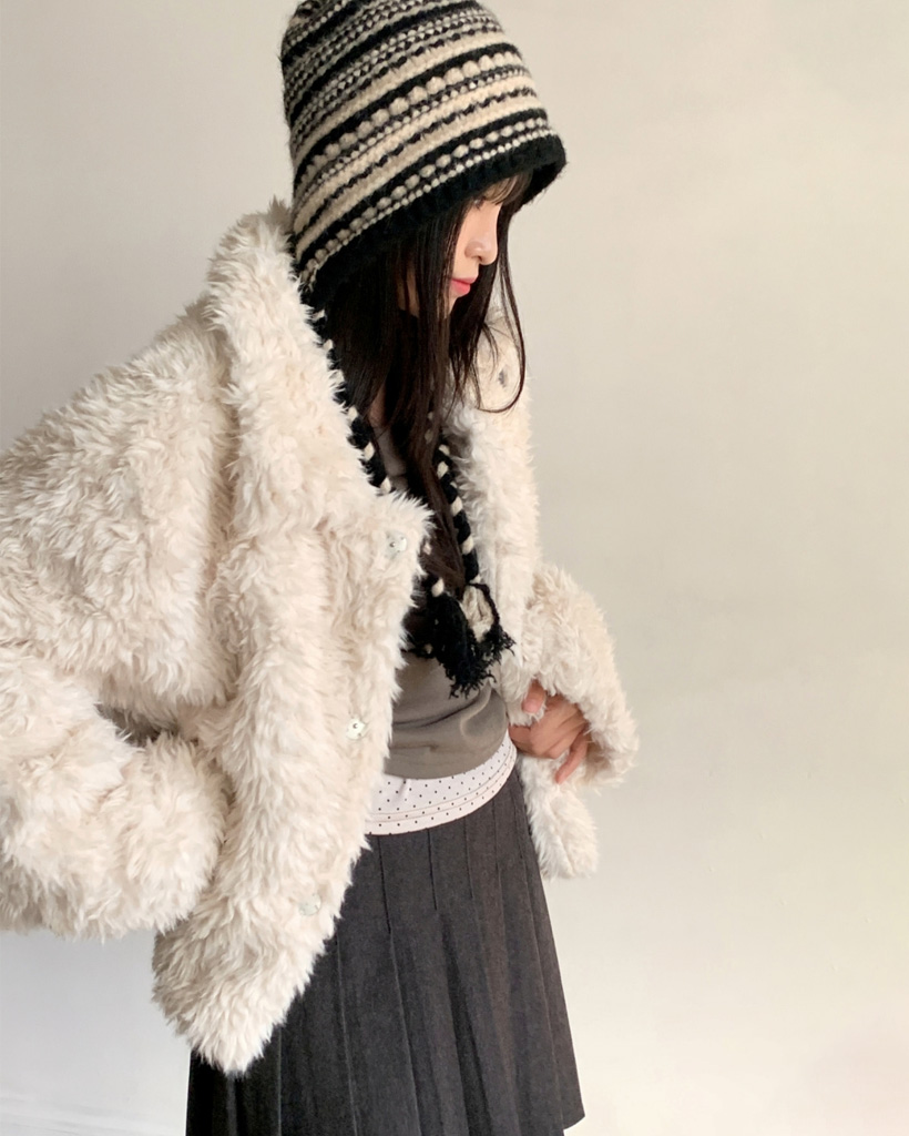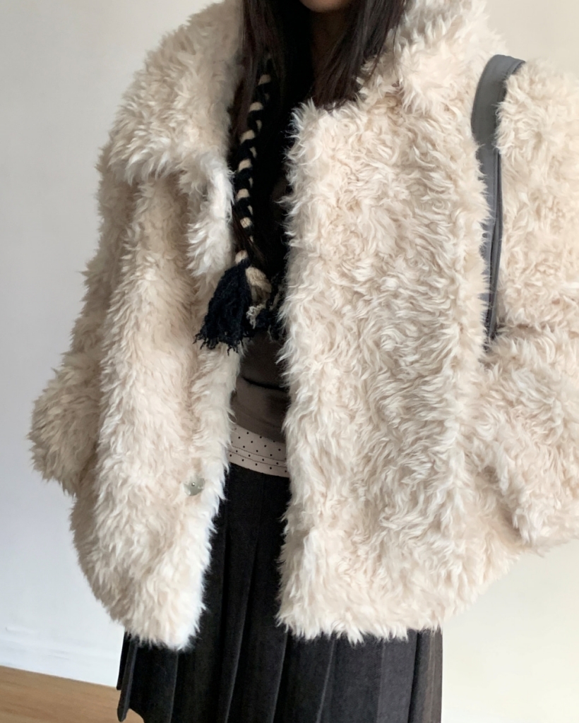 (5 color) 襟付きファージャケット ブークレ アウター