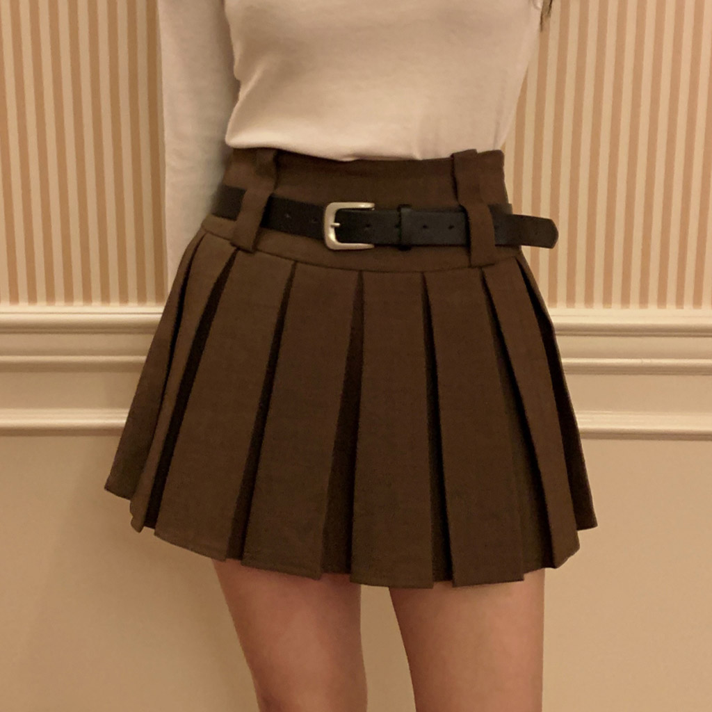 ハイウエストベルトプリーツミニスカートセット(3color)