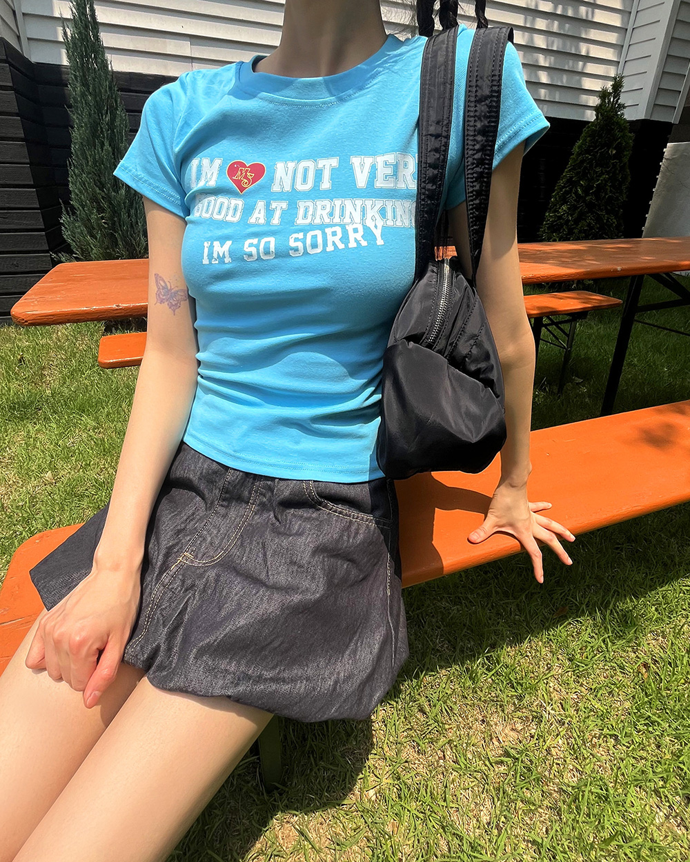 スリムレタリングプリント半袖Tシャツ