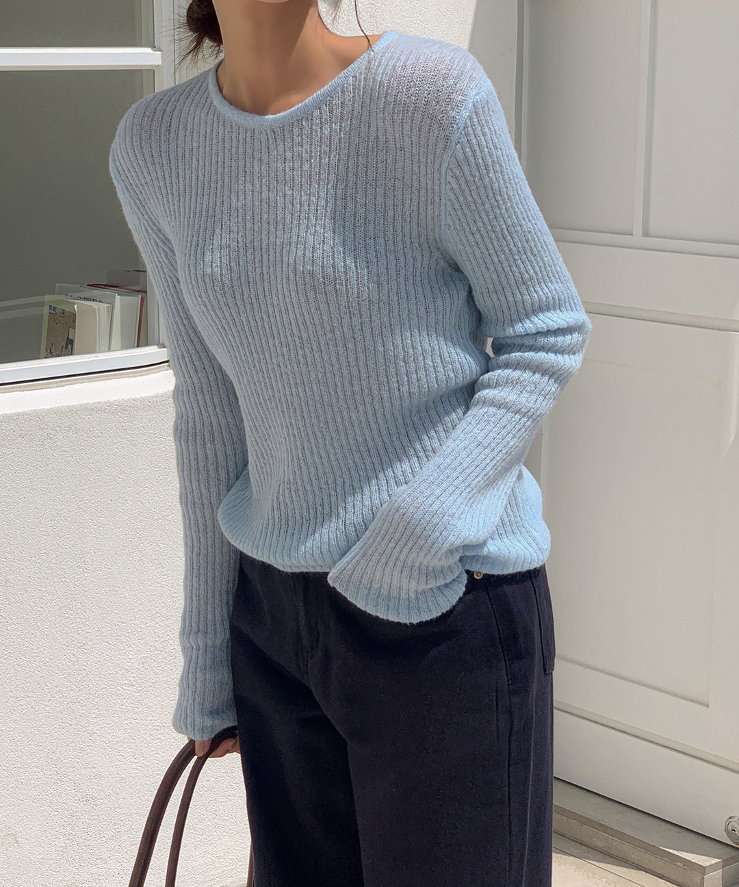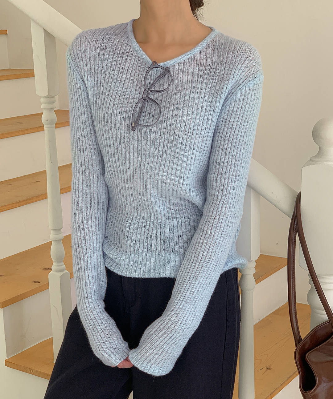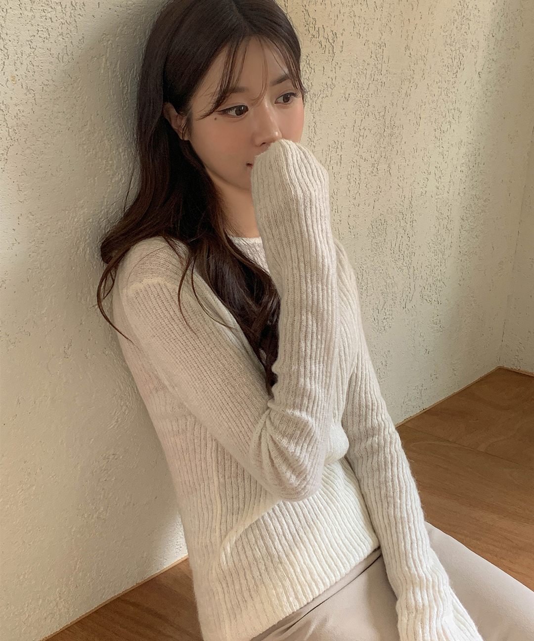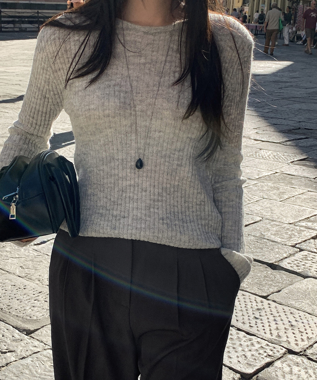 ウール リブ クルーネック ニット