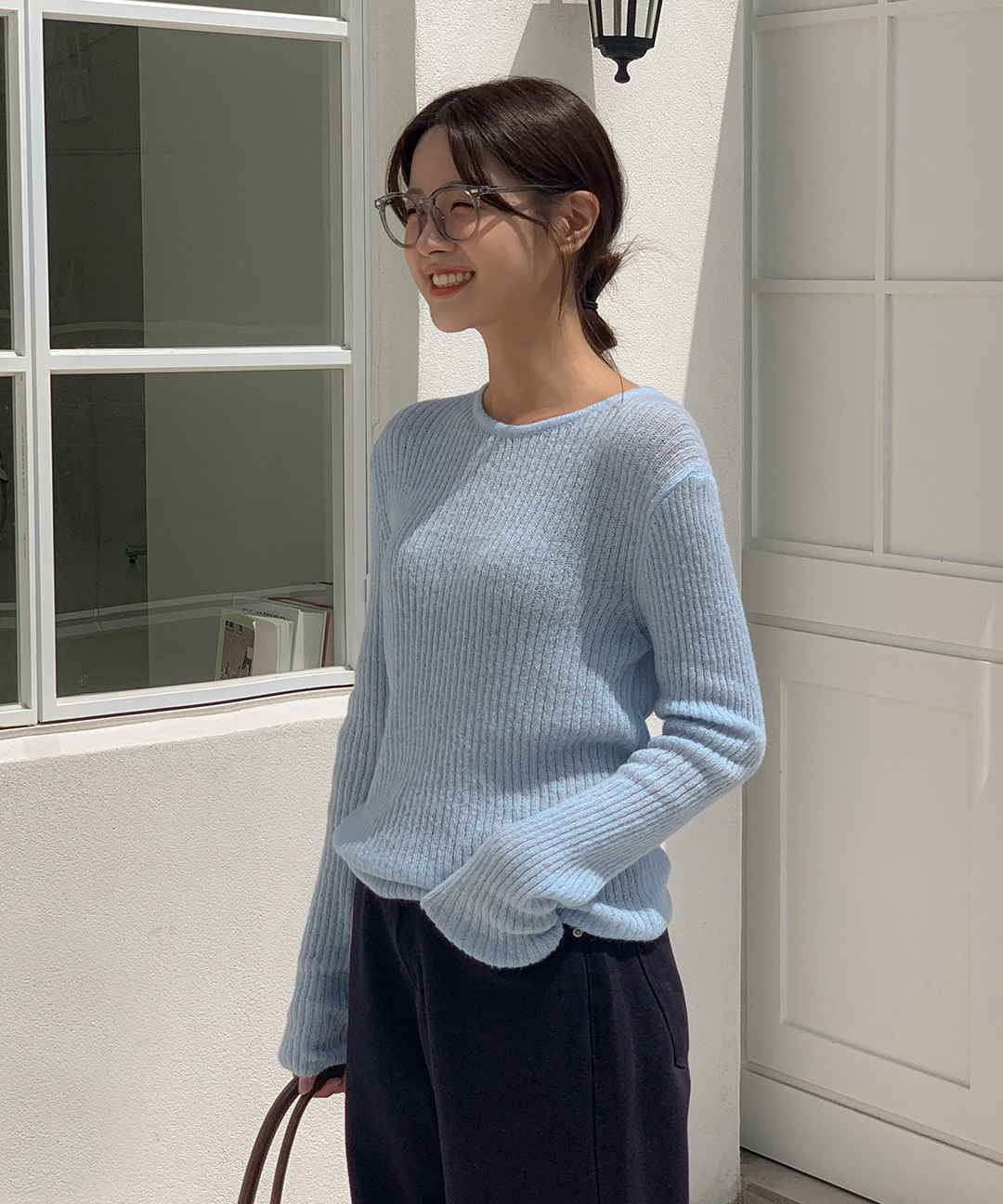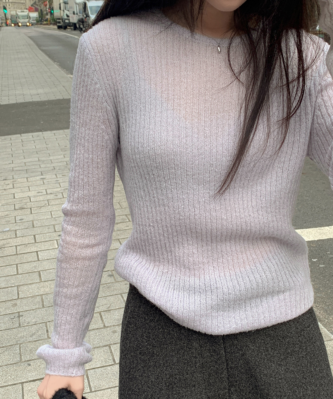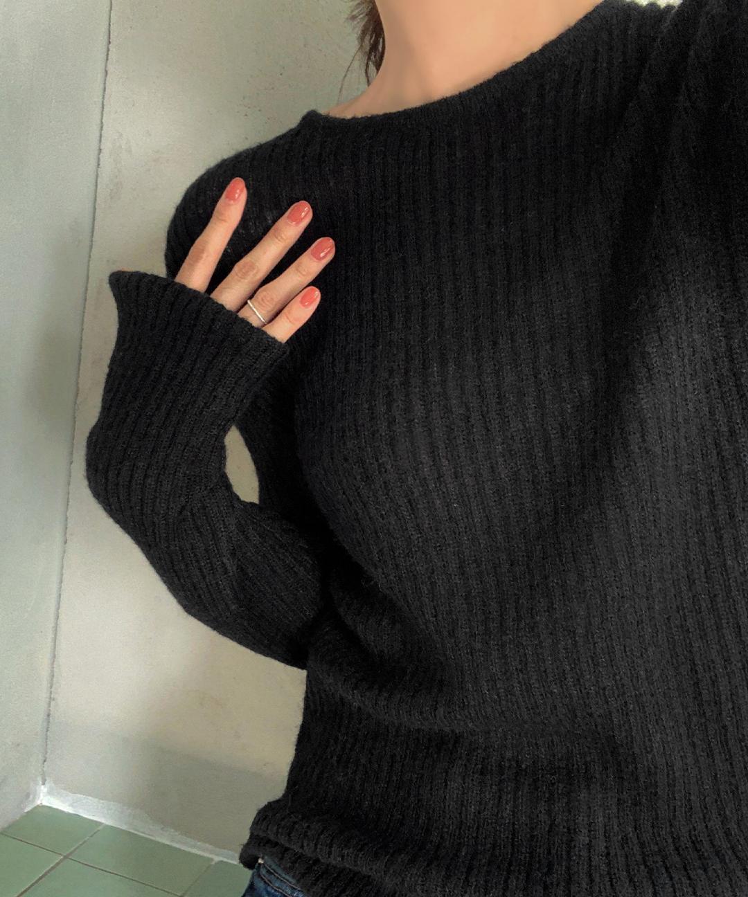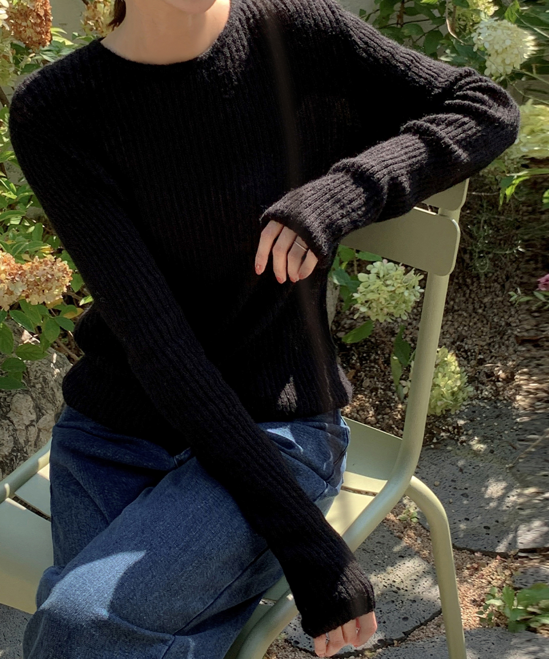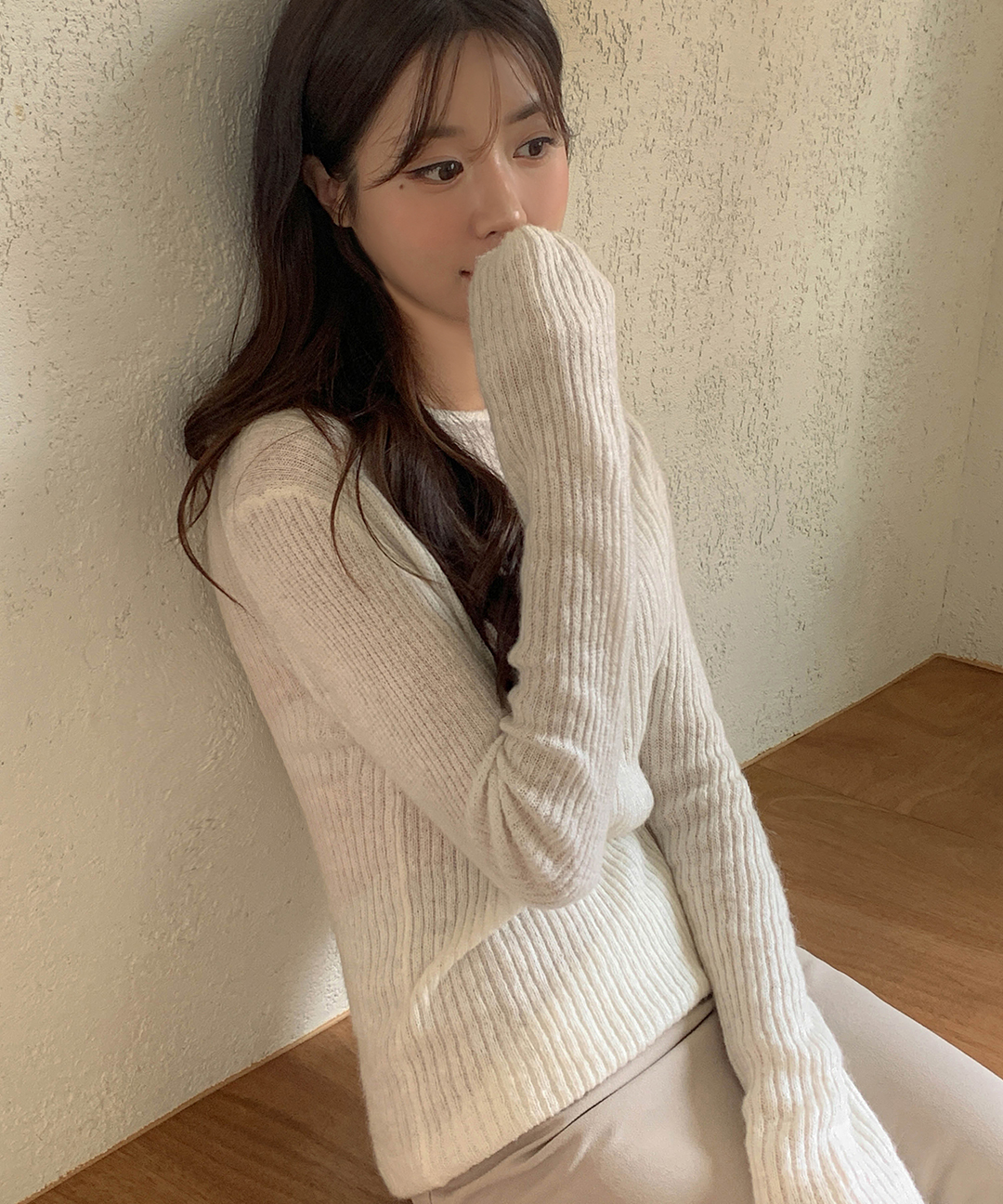 ウール リブ クルーネック ニット