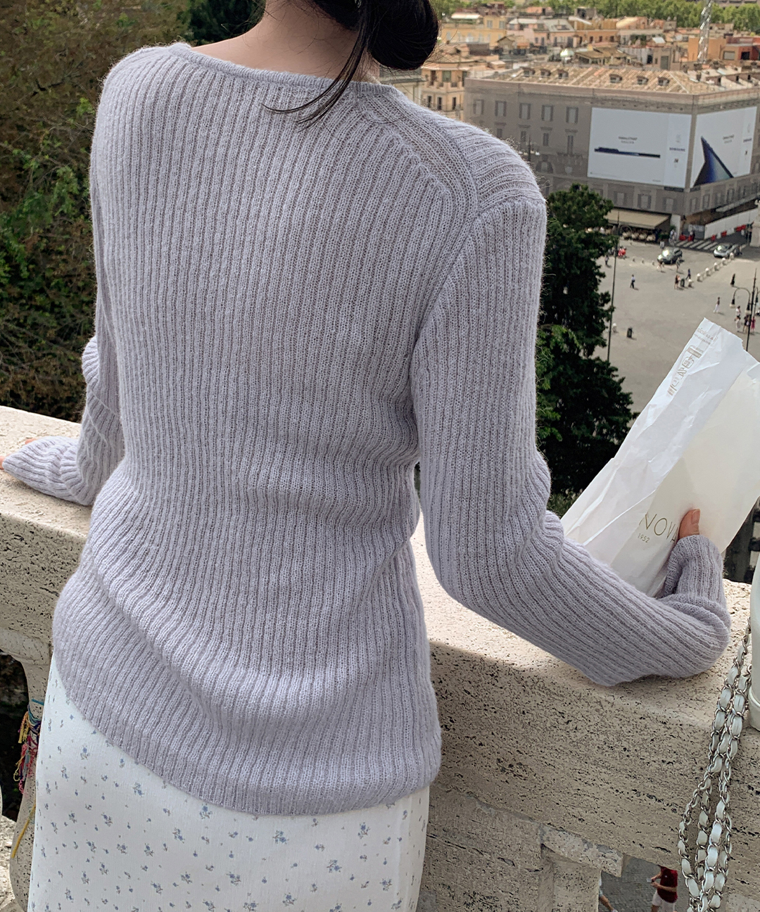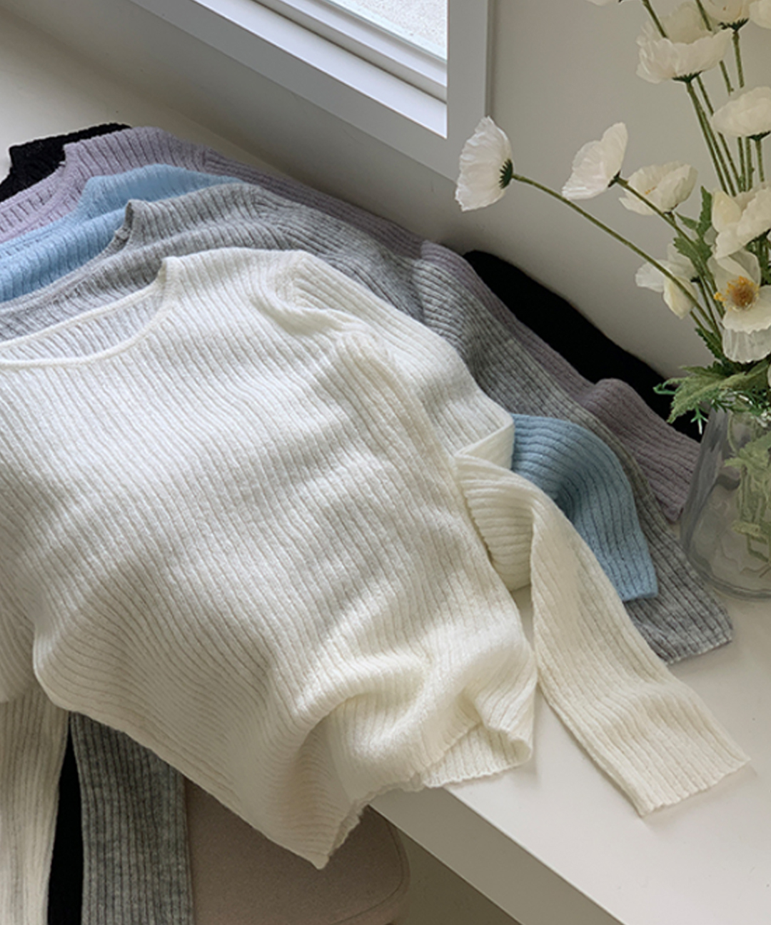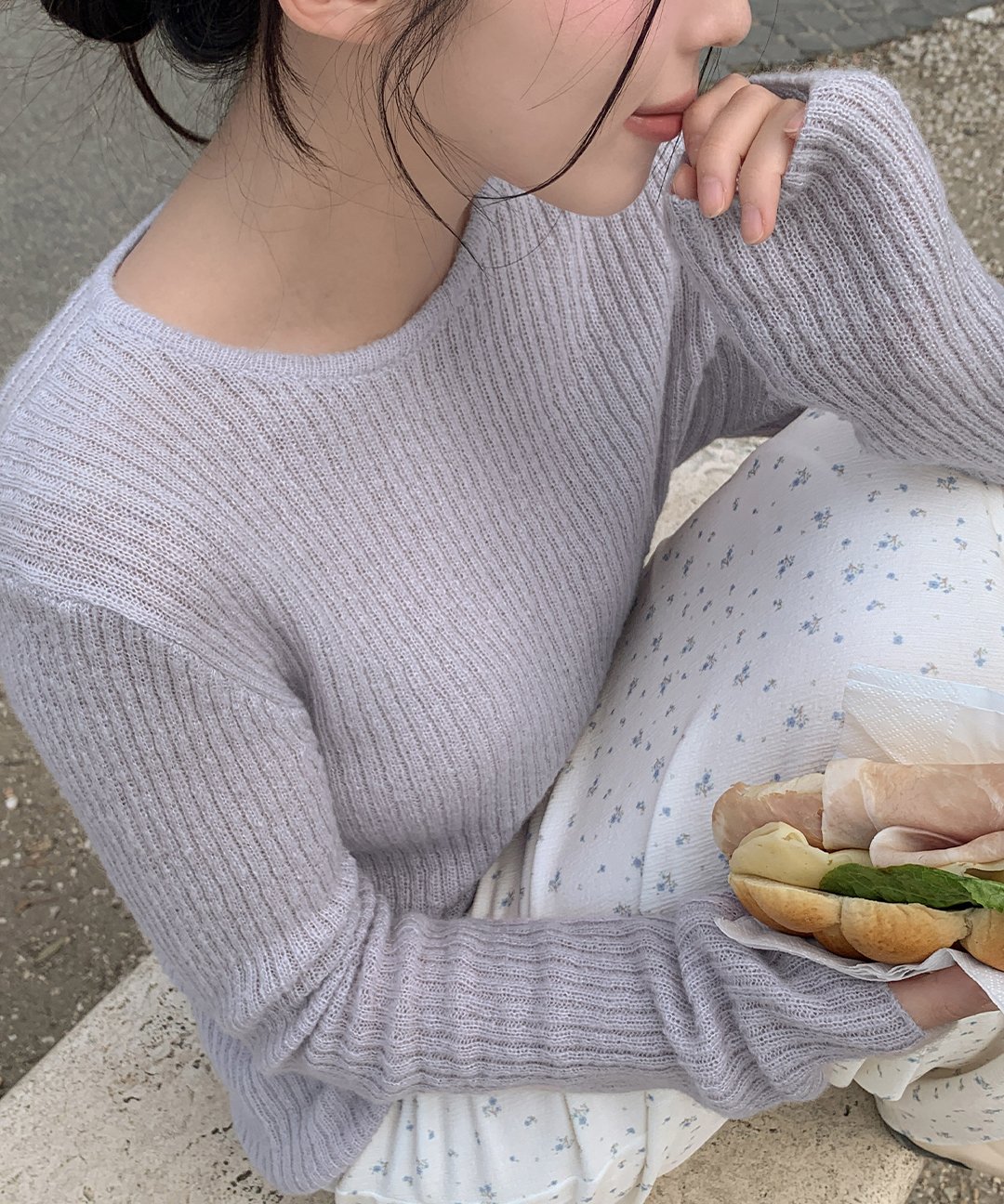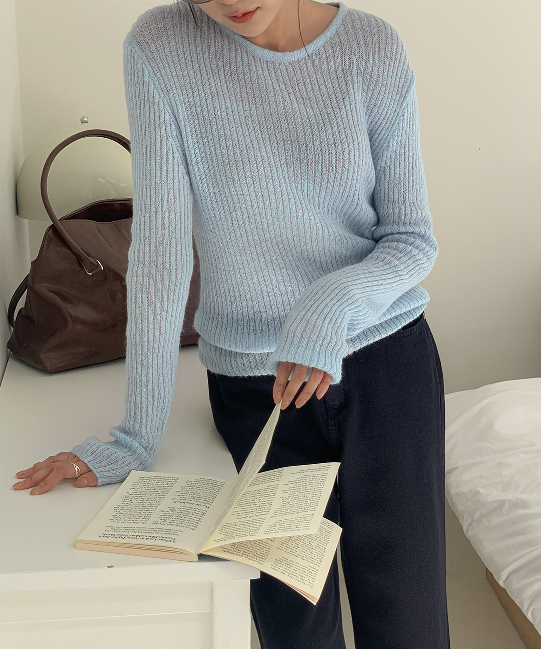 ウール リブ クルーネック ニット