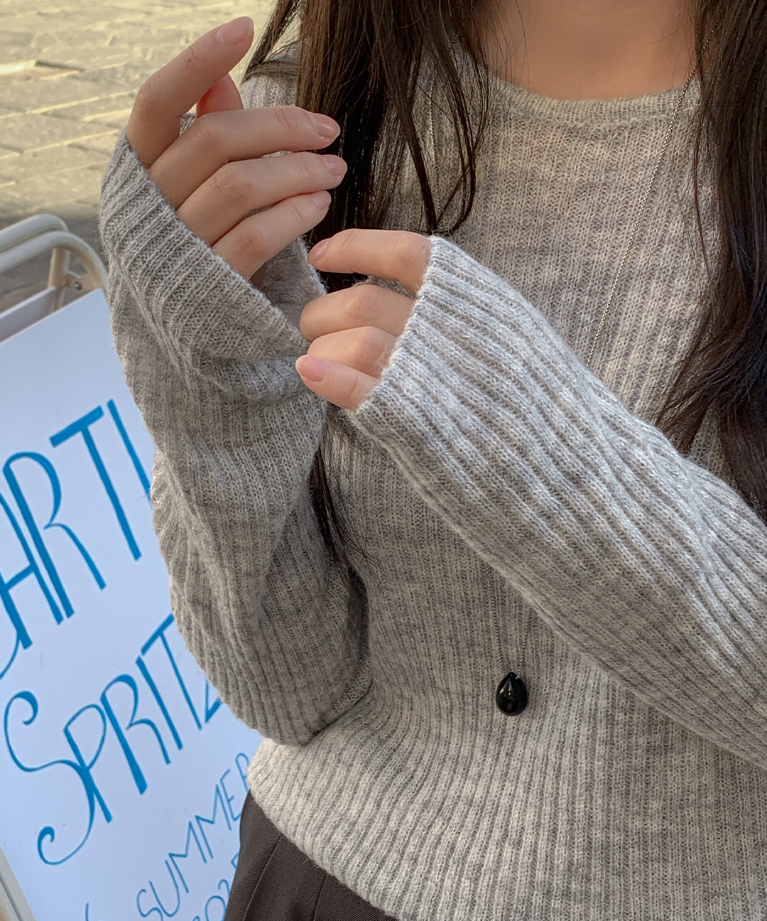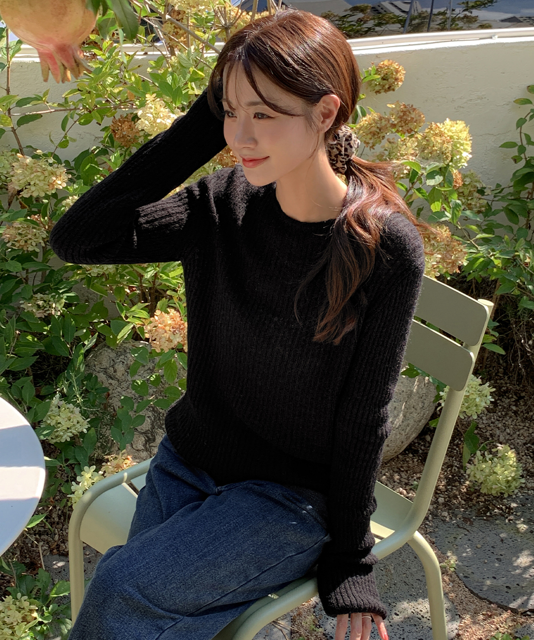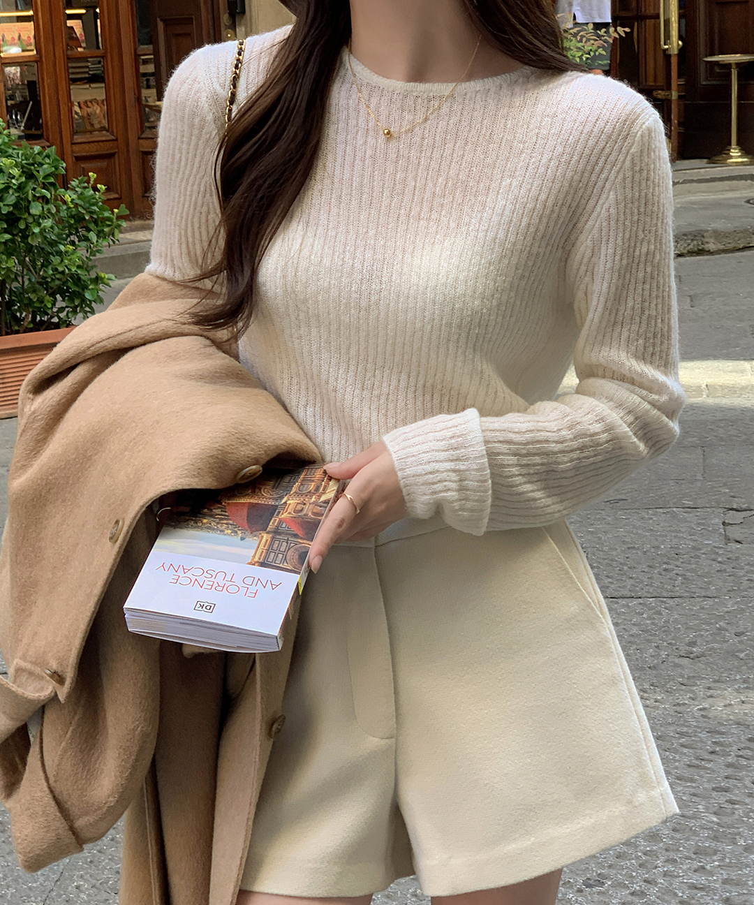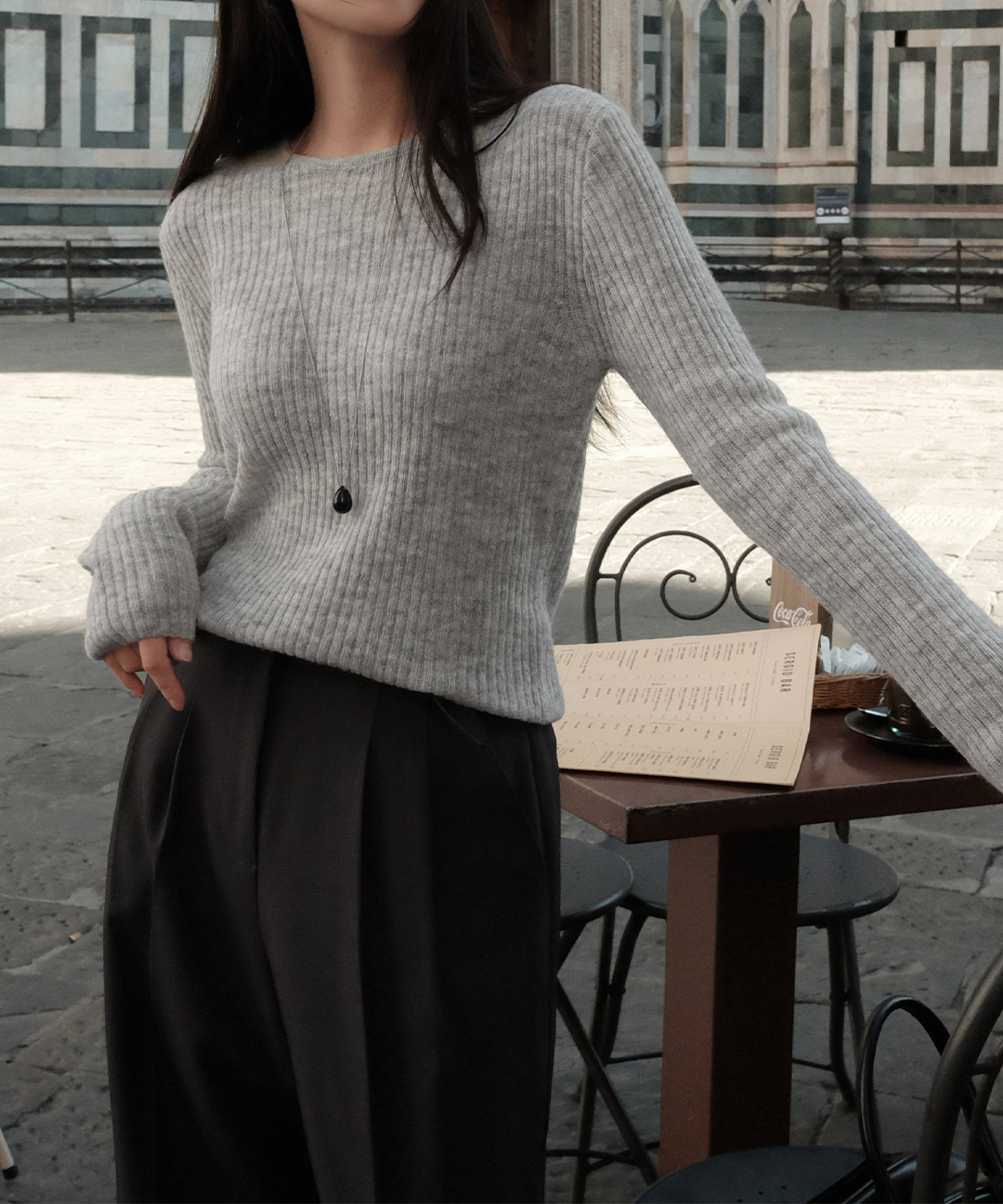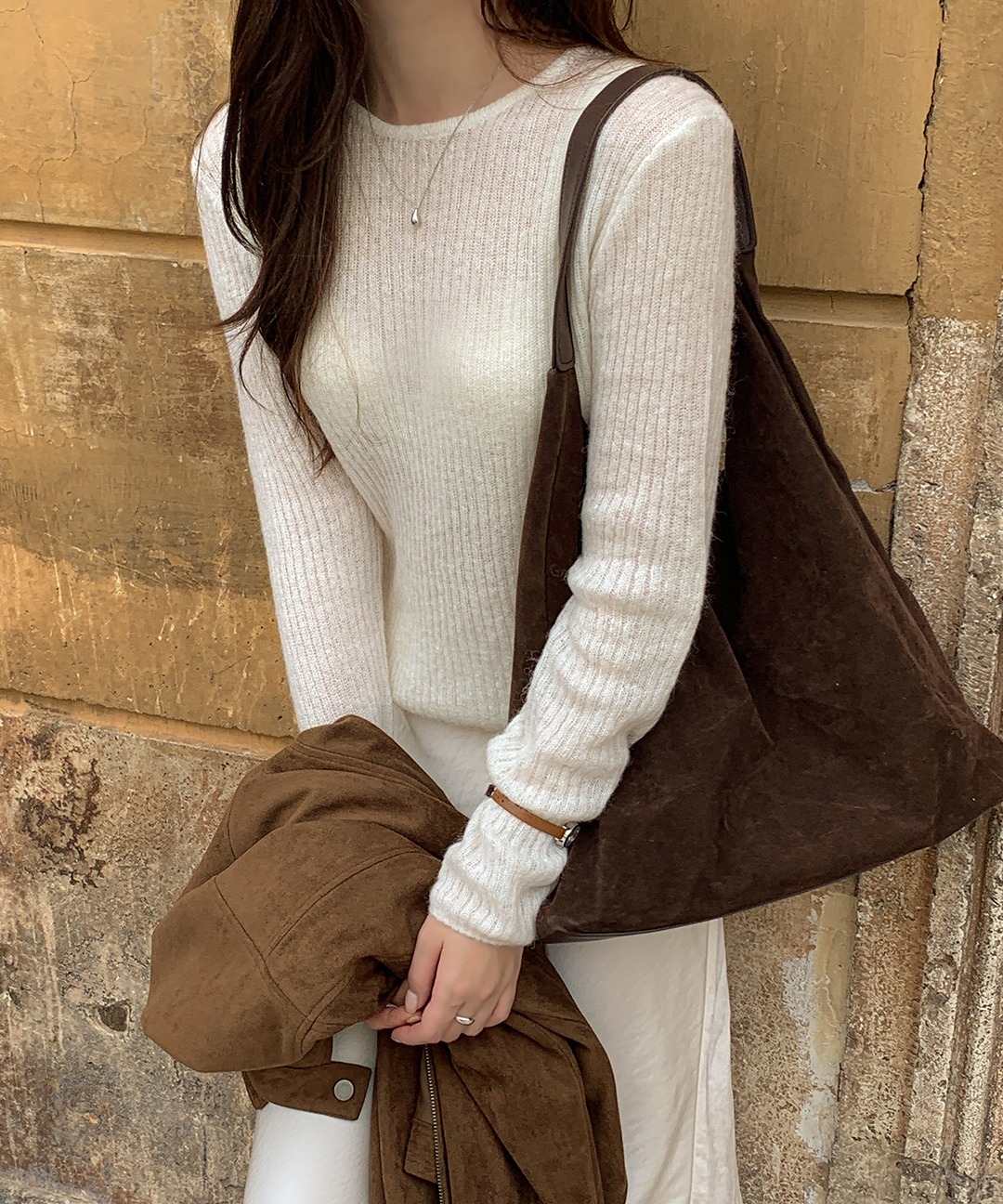ウール リブ クルーネック ニット