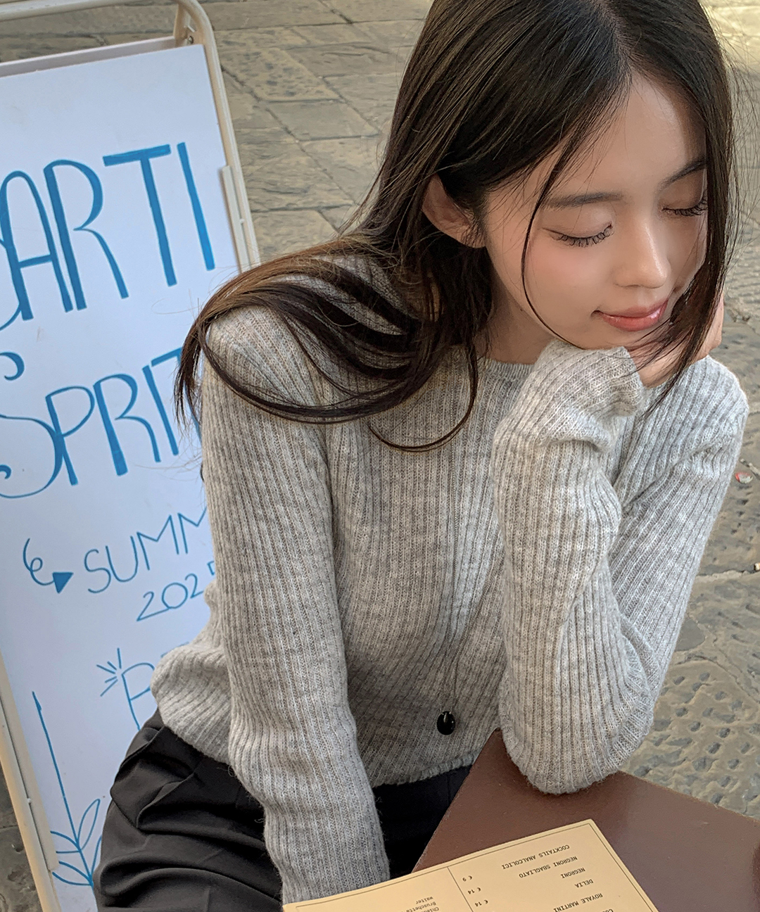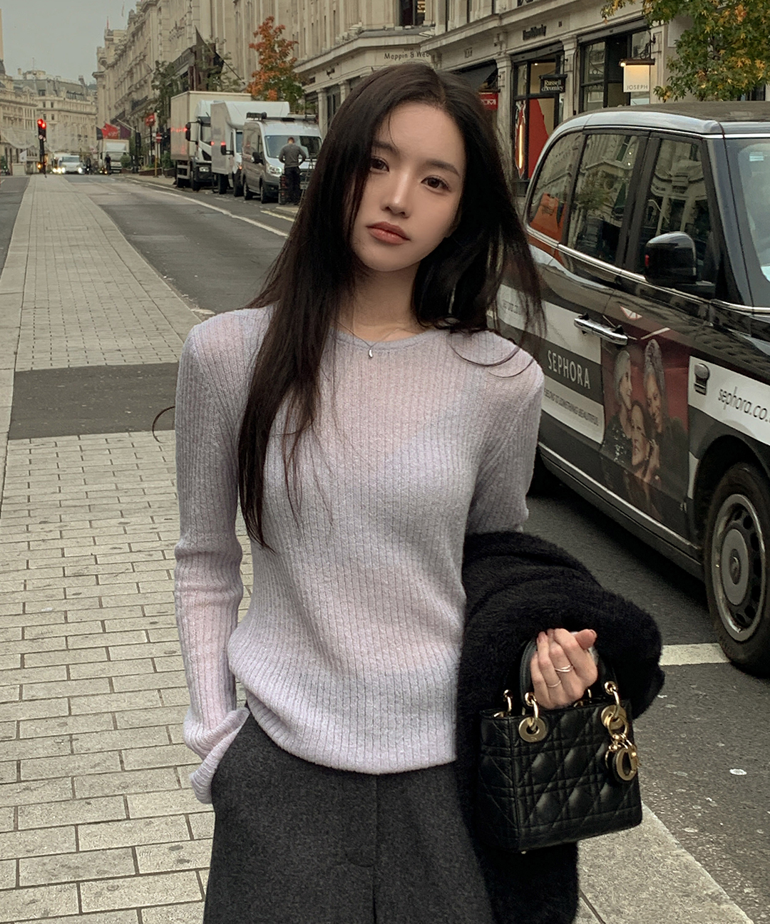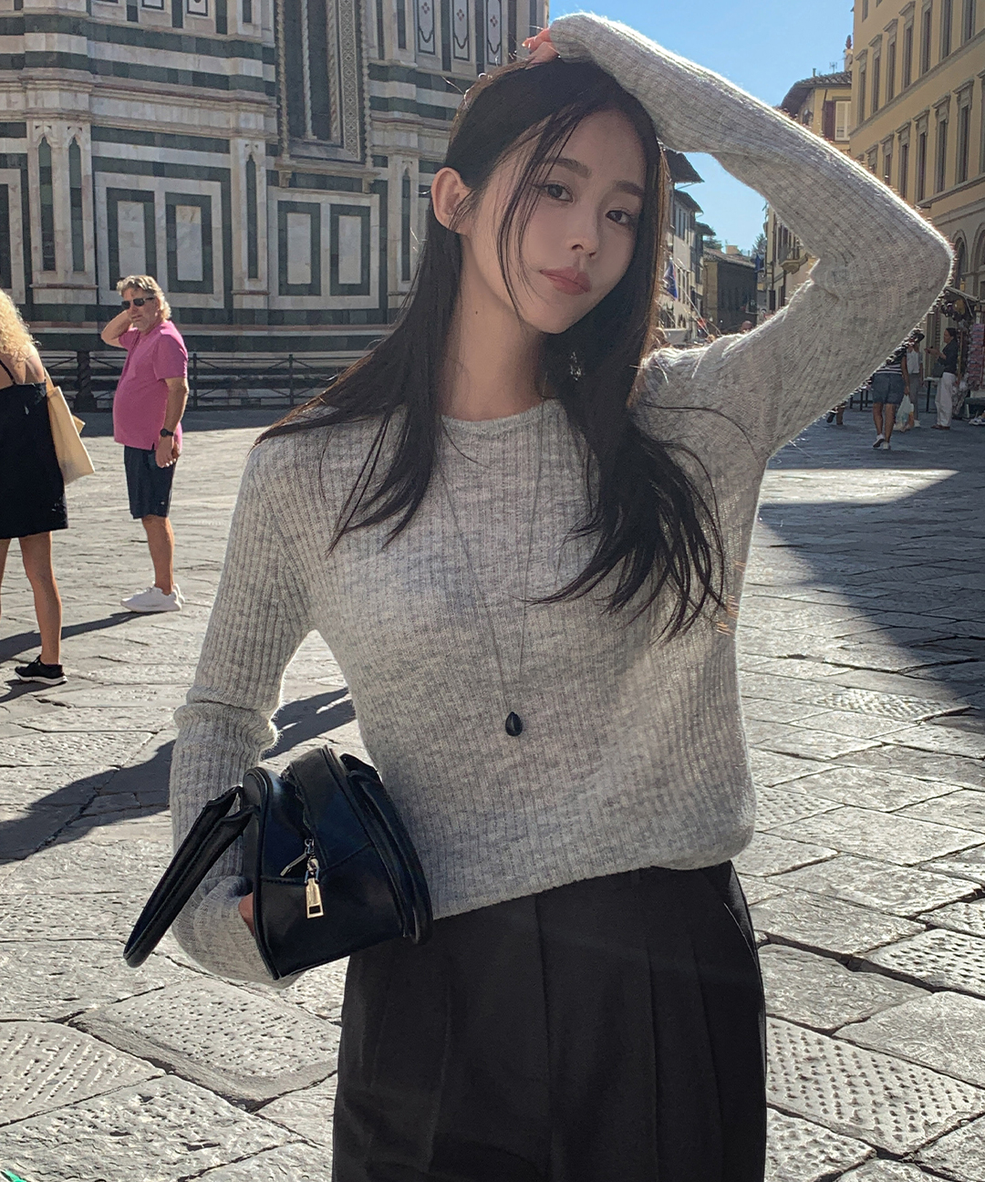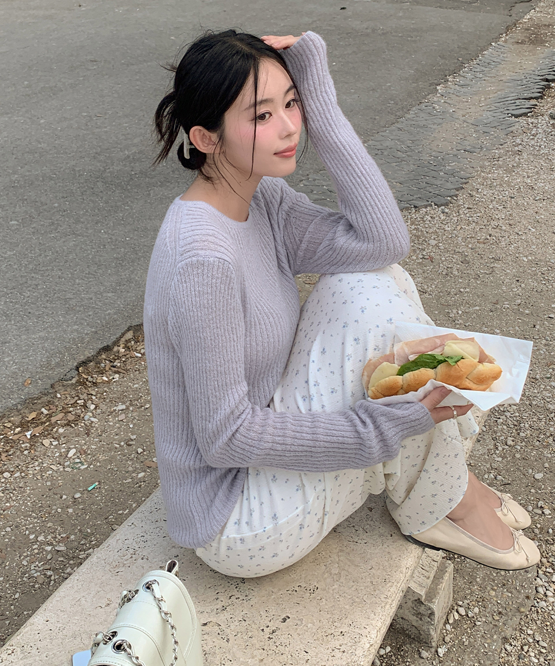 ウール リブ クルーネック ニット