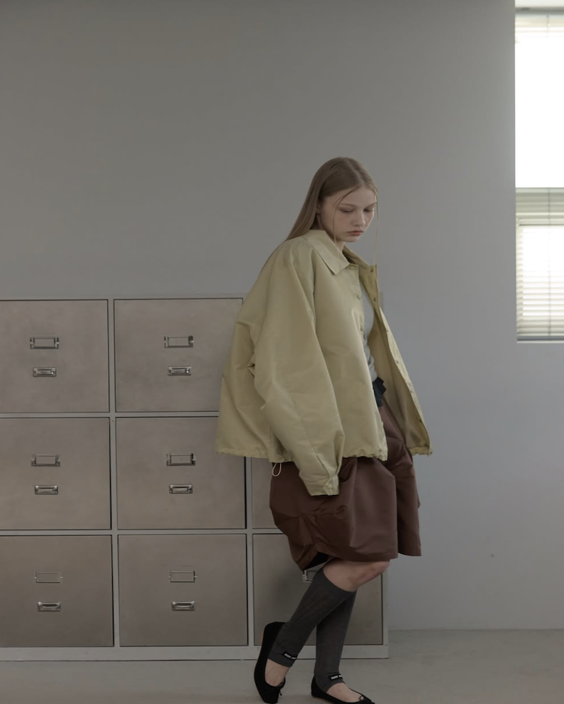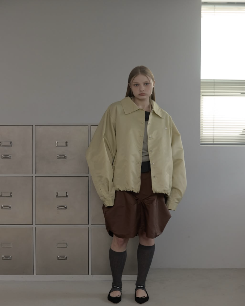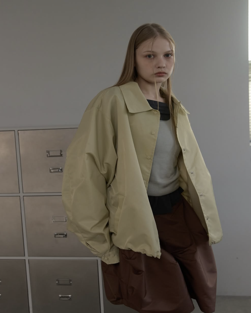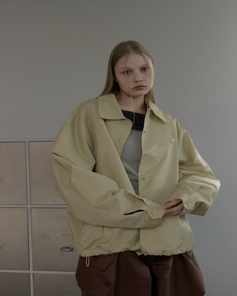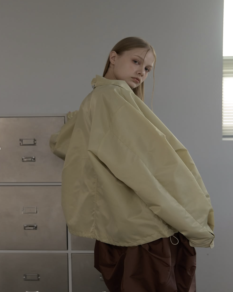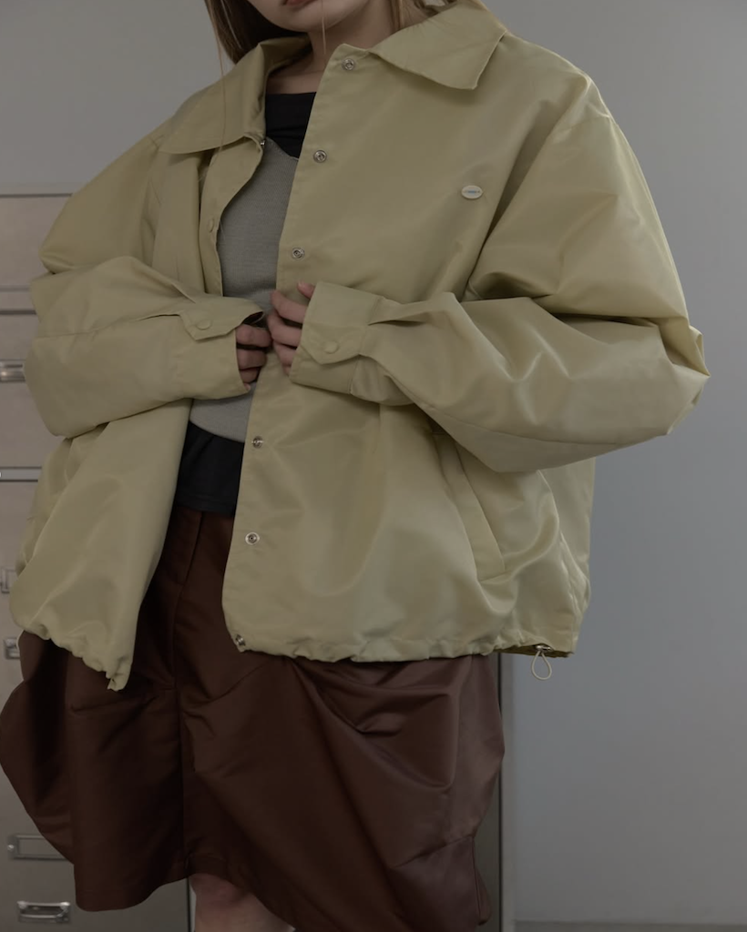 そのままルーズに羽織ればマニッシュなコーチジャケット風に、ギュッと絞れば丸みのあるバルーンシルエットにと、その日の気分でシルエットを調節できます。