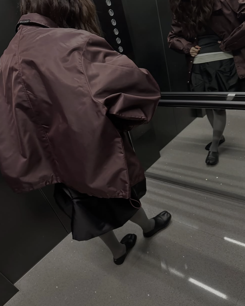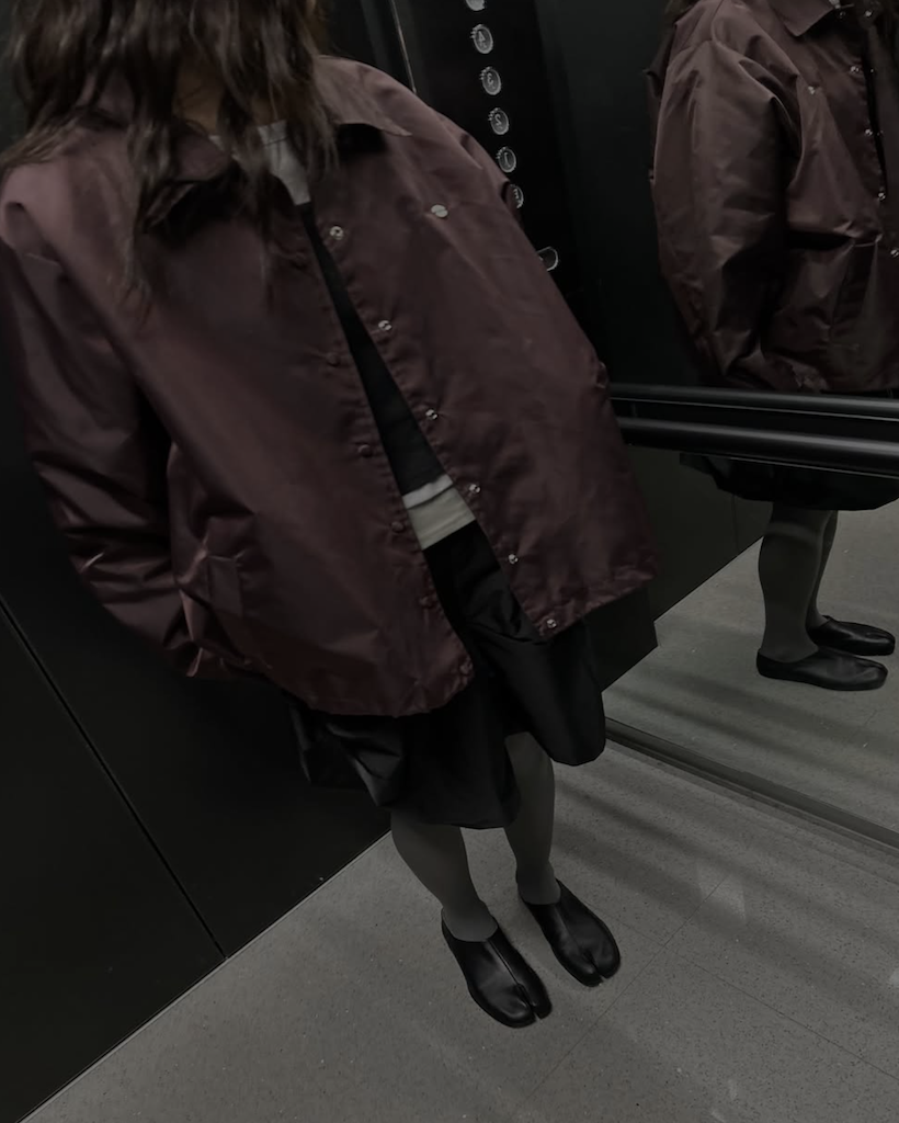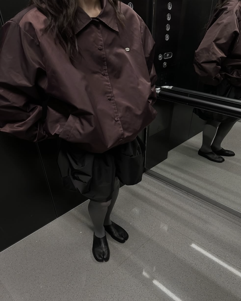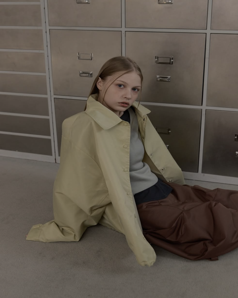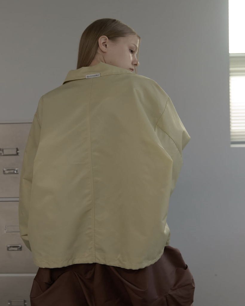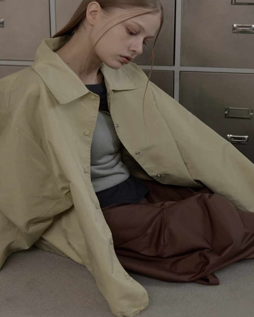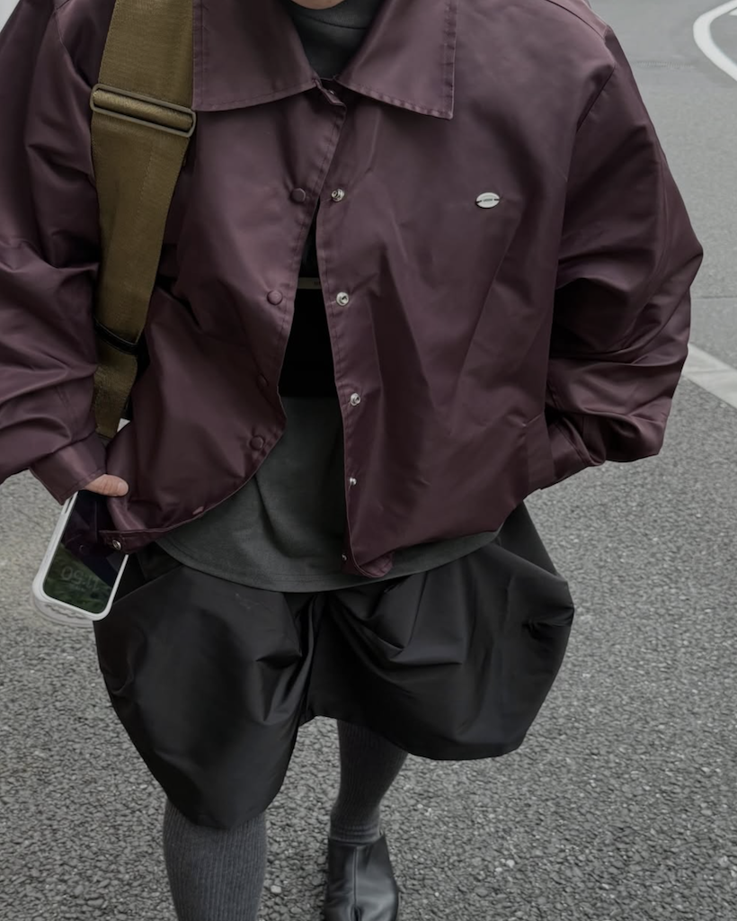 そのままルーズに羽織ればマニッシュなコーチジャケット風に、ギュッと絞れば丸みのあるバルーンシルエットにと、その日の気分でシルエットを調節できます。