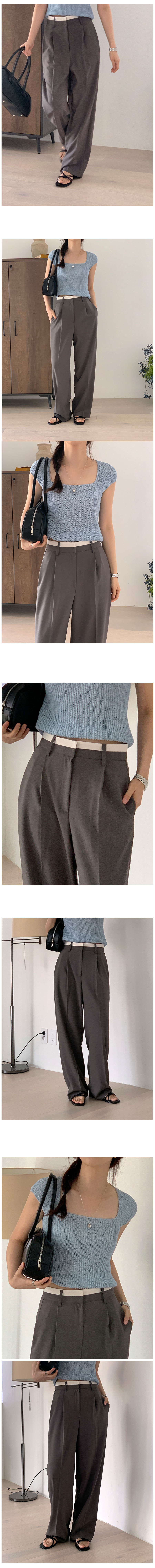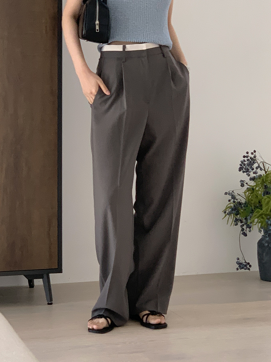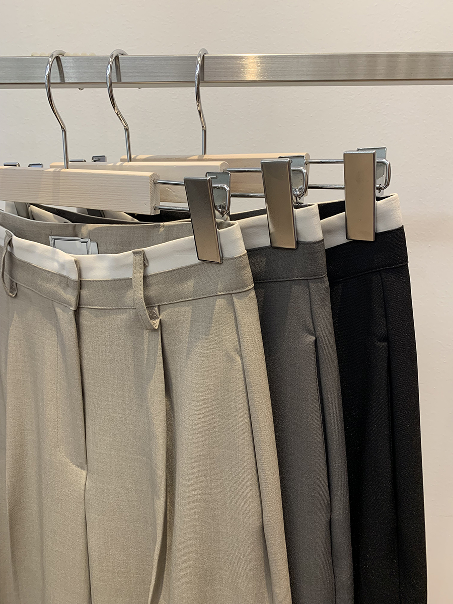 バイカラータック入りハイウエストワイドスパンロングスラックス3color