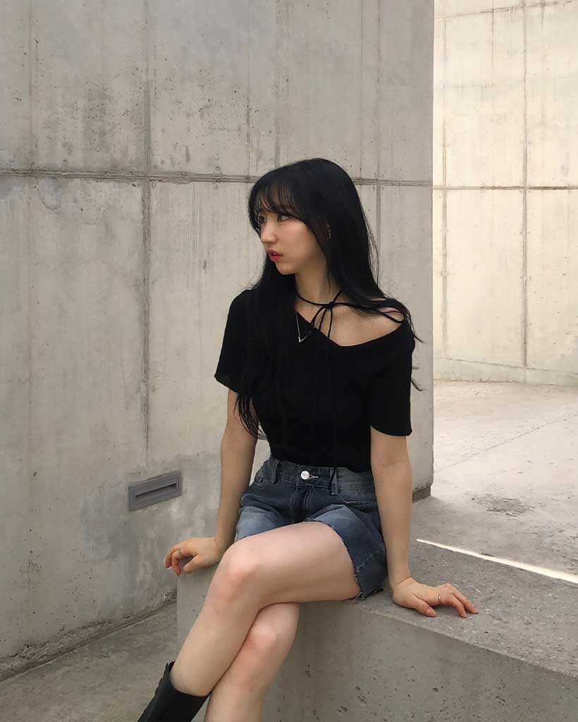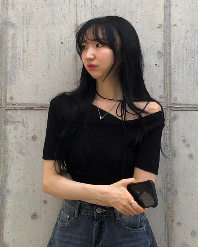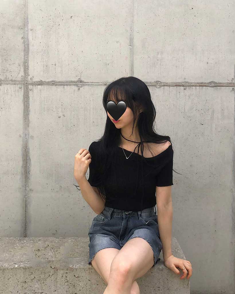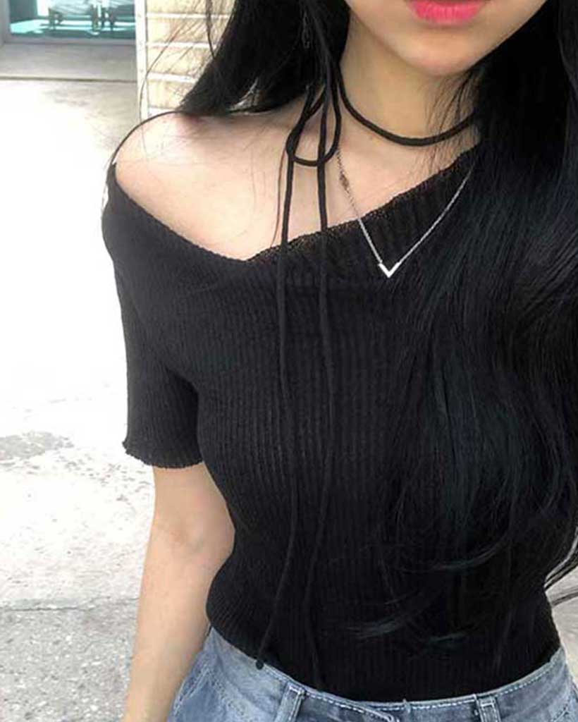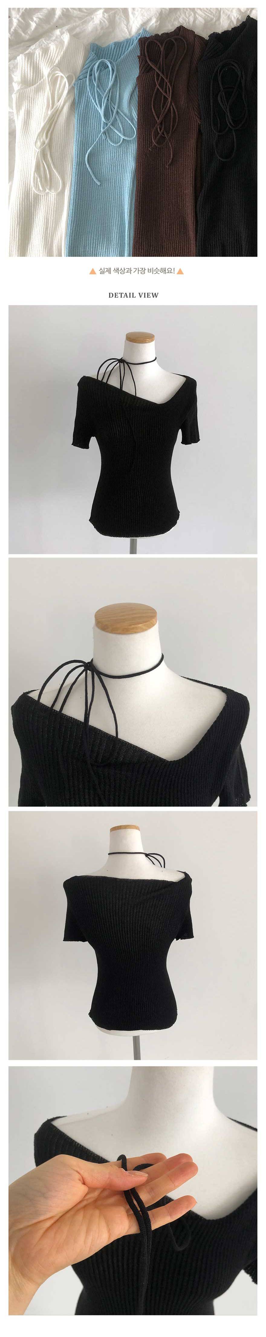 [チョーカーセット]ツイストワンショルダー半袖ニット
