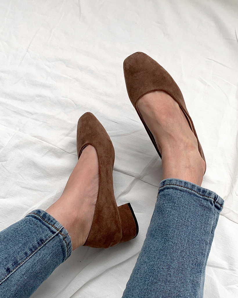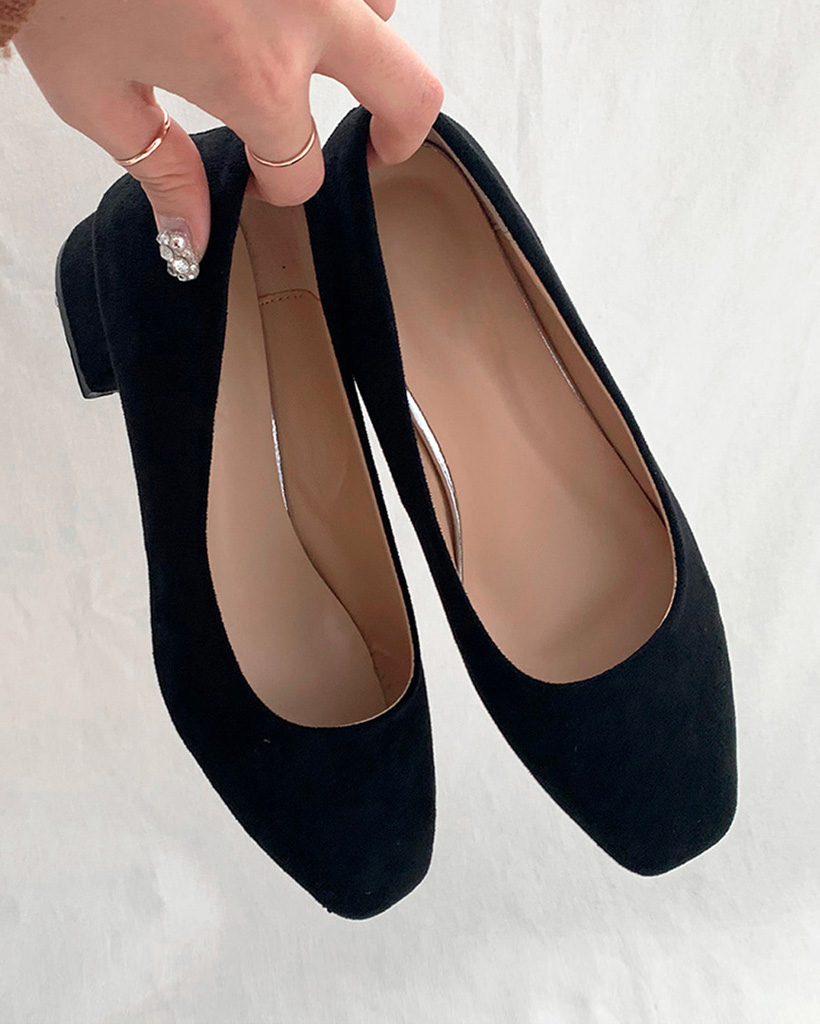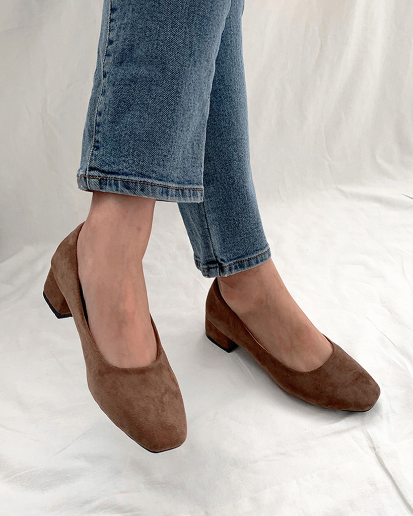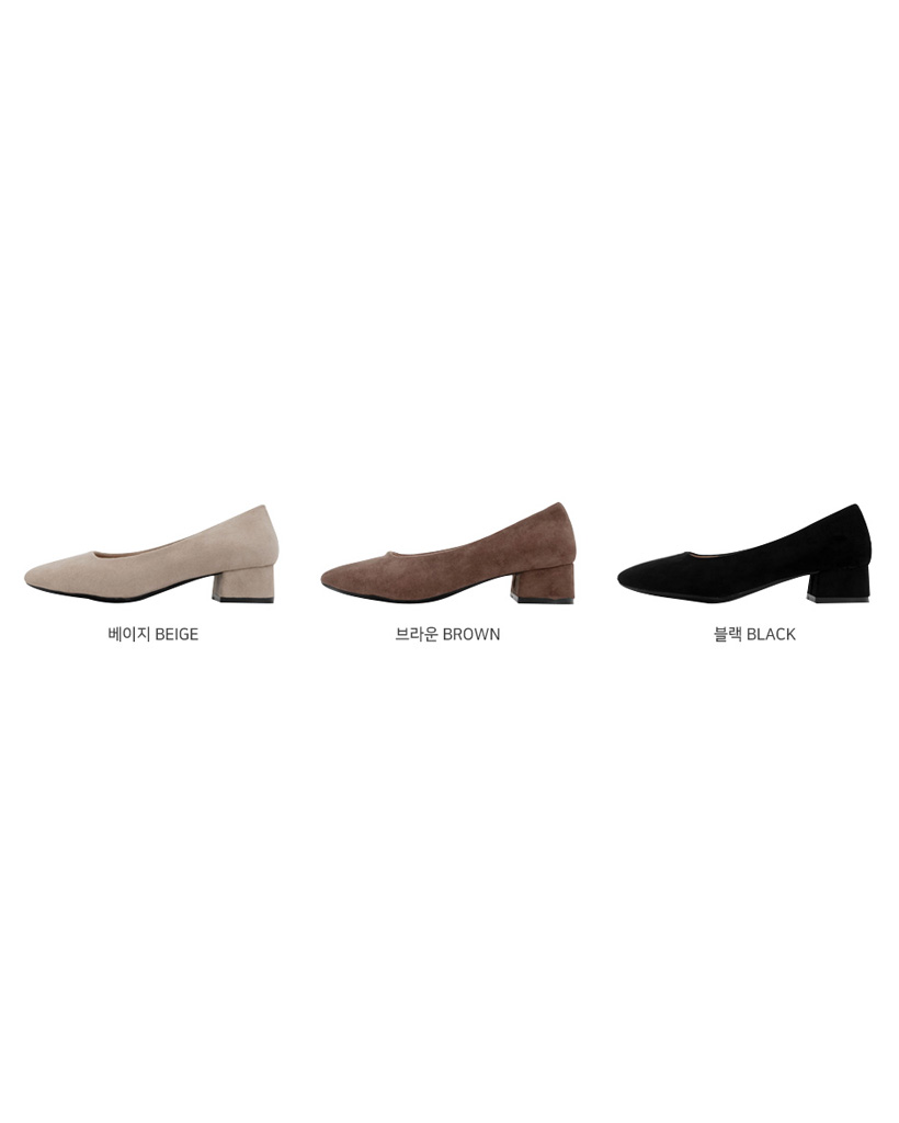 (3color) スエード スクエアトゥ ミドルヒール パンプス