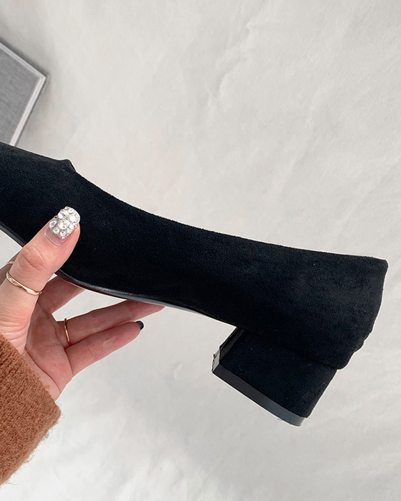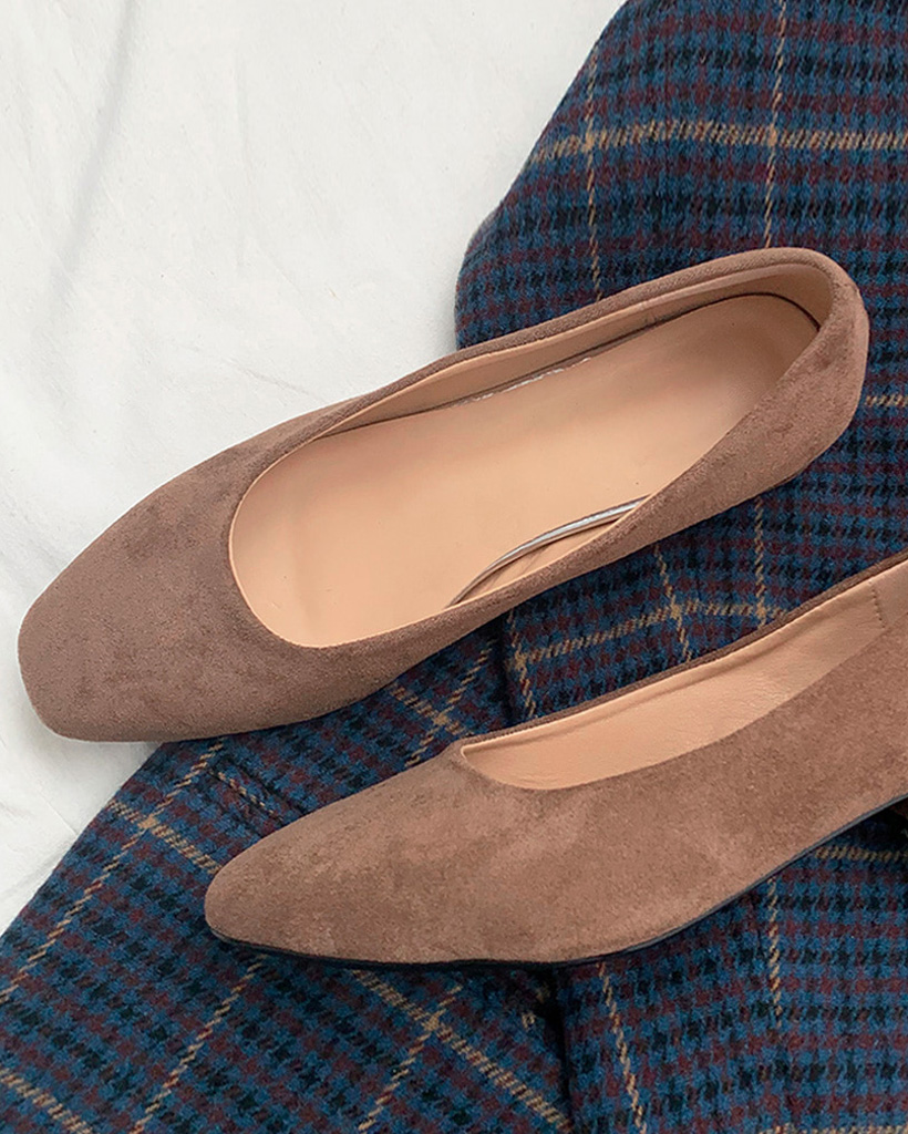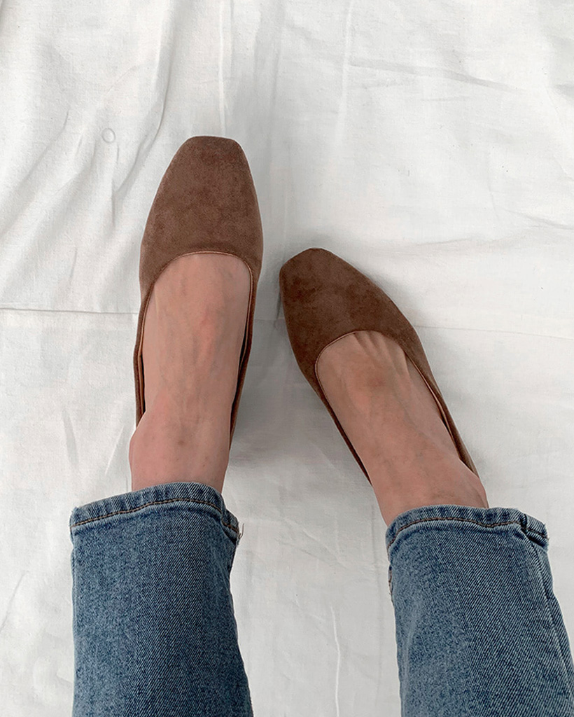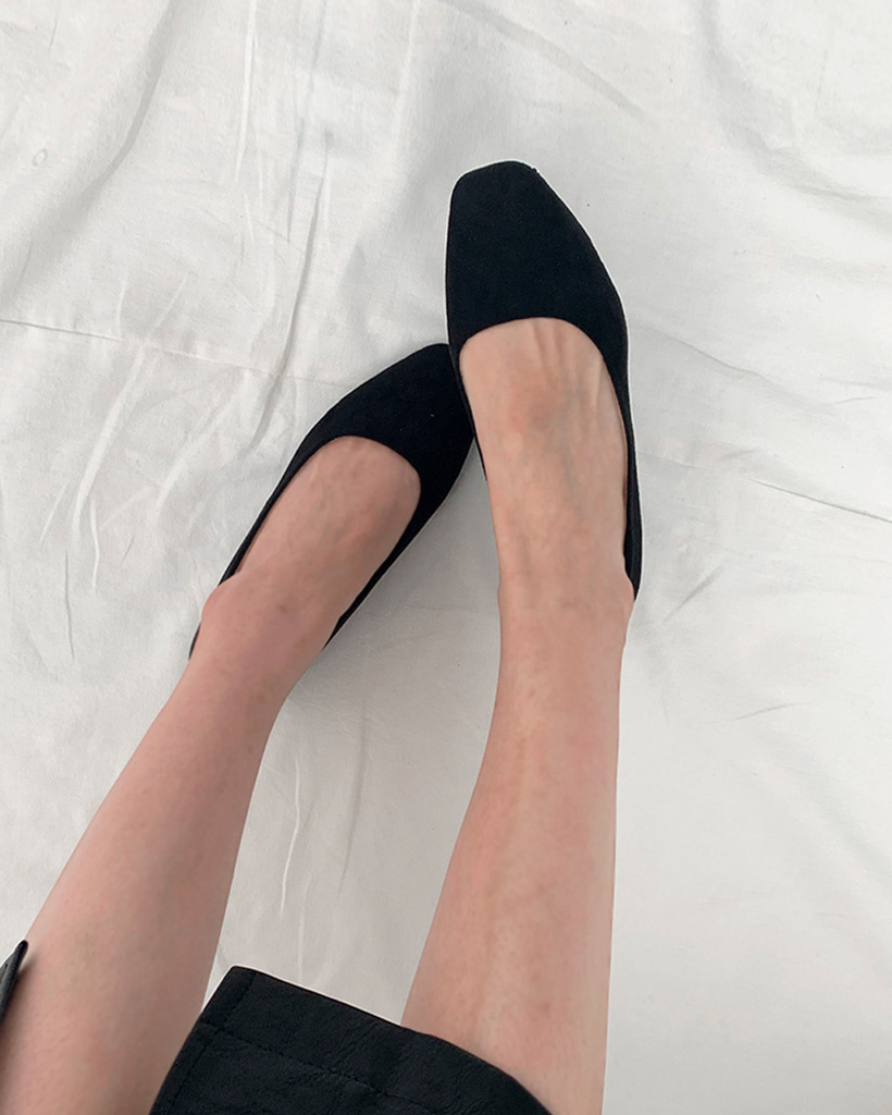 (3color) スエード スクエアトゥ ミドルヒール パンプス