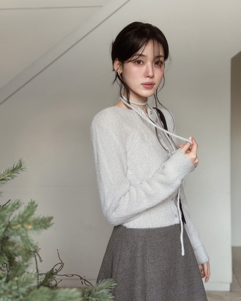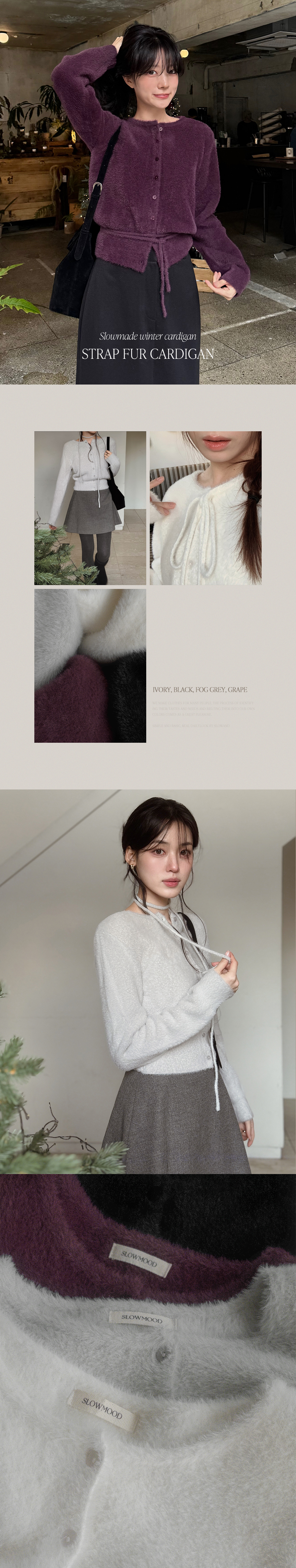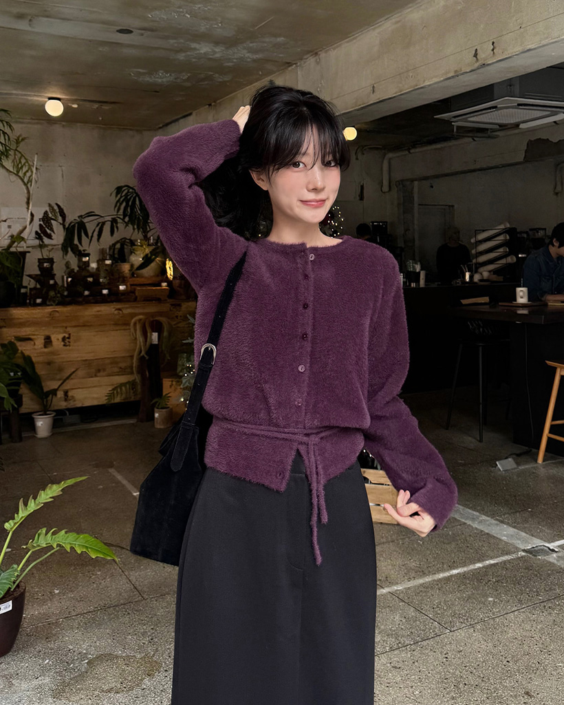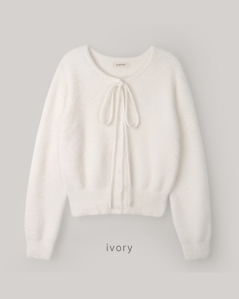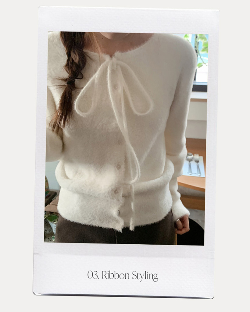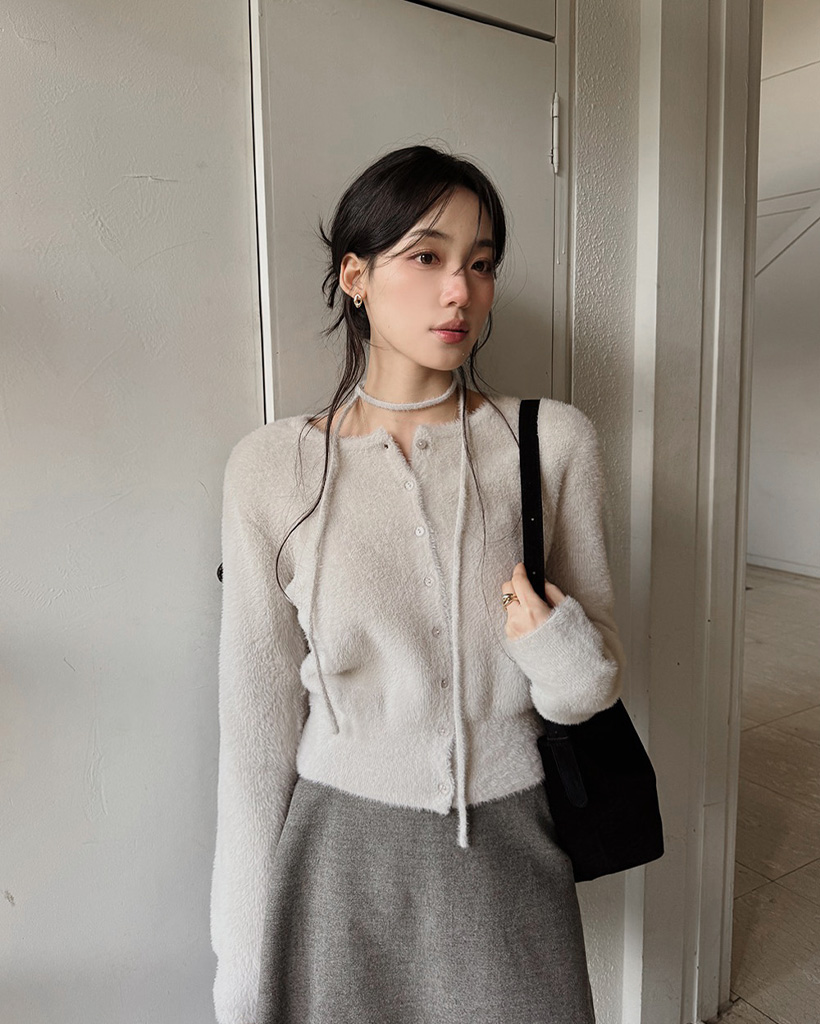 (4color) リボンストラップ ファー カーディガン