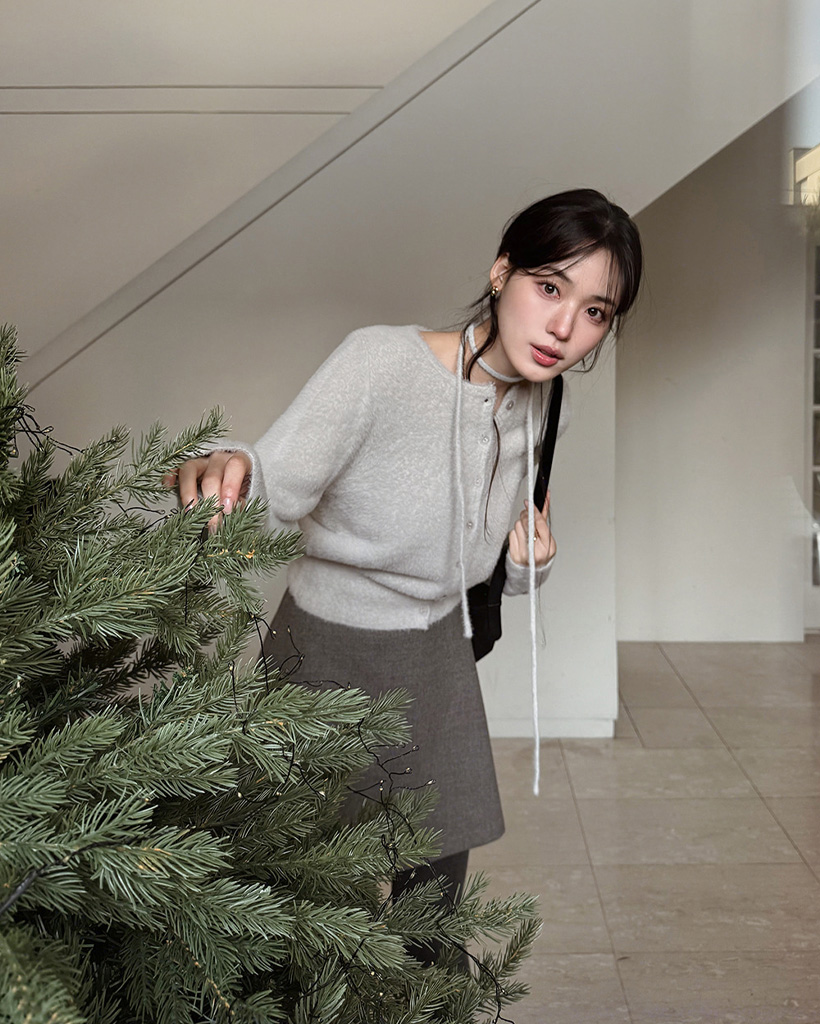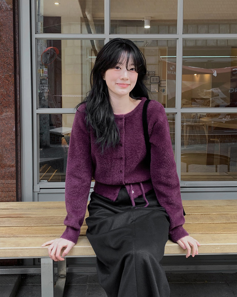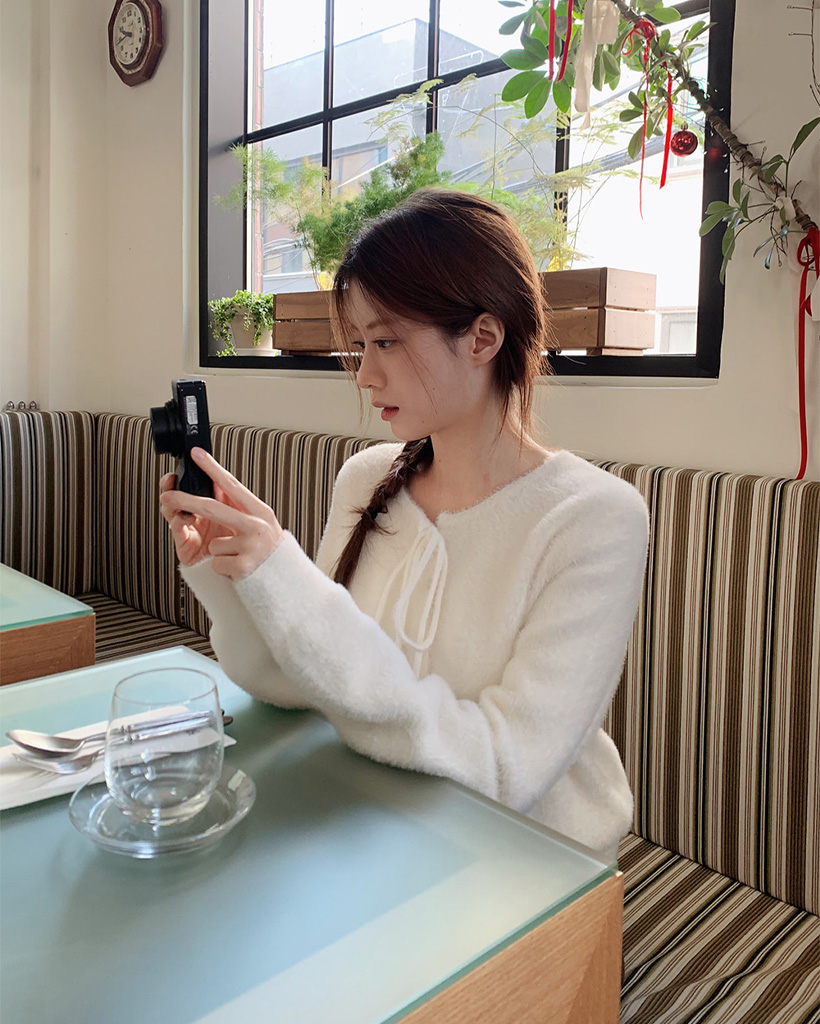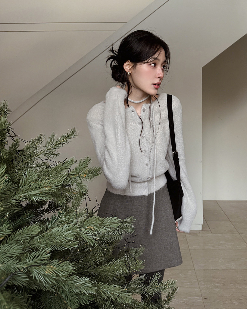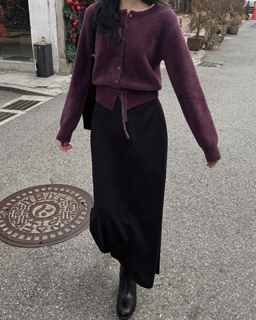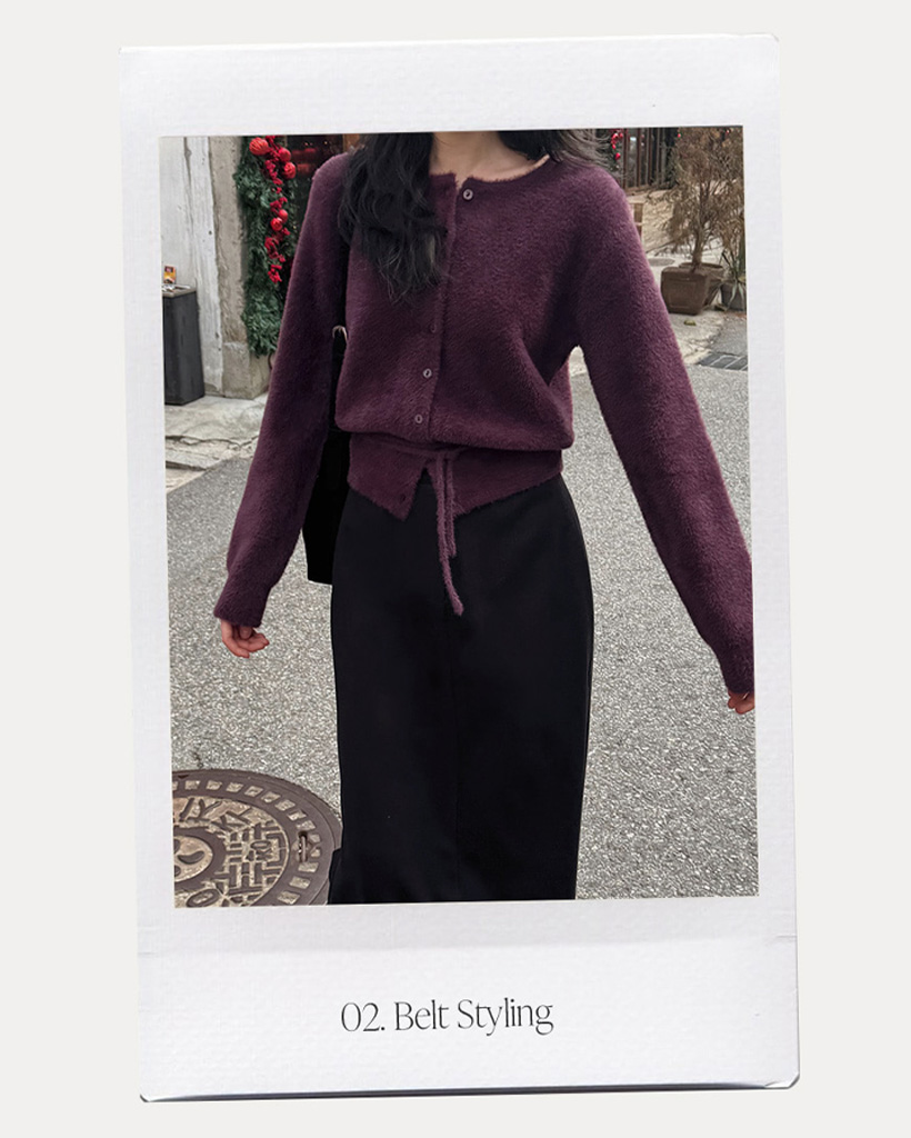(4color) リボンストラップ ファー カーディガン