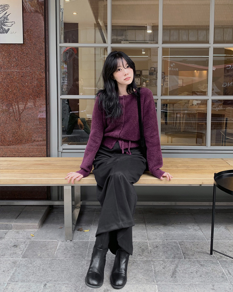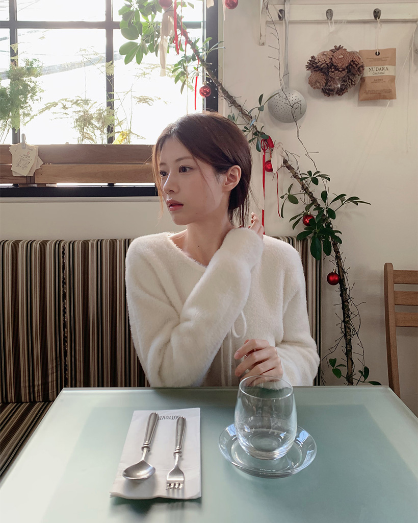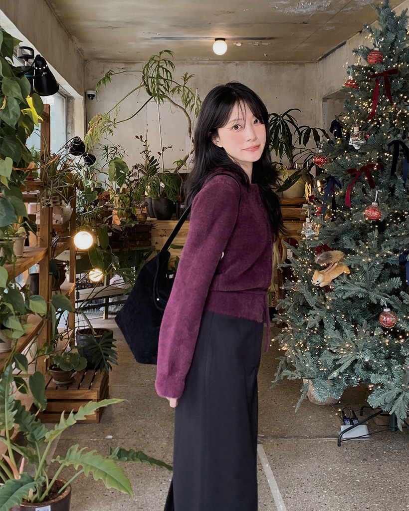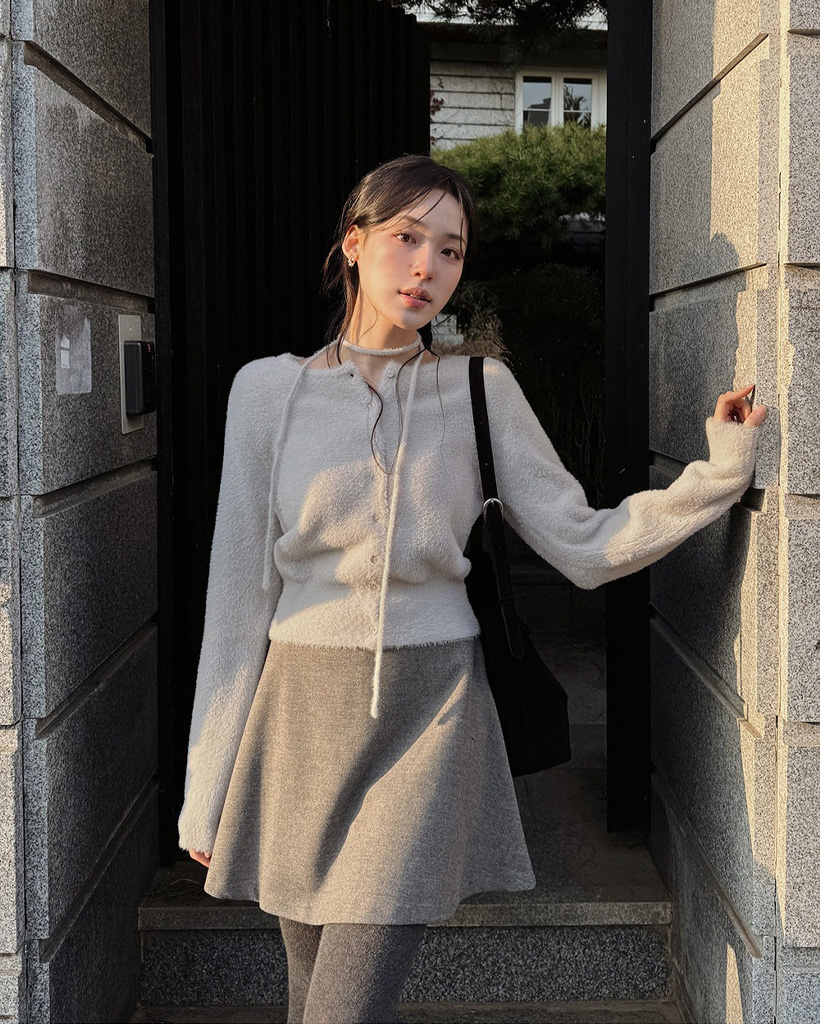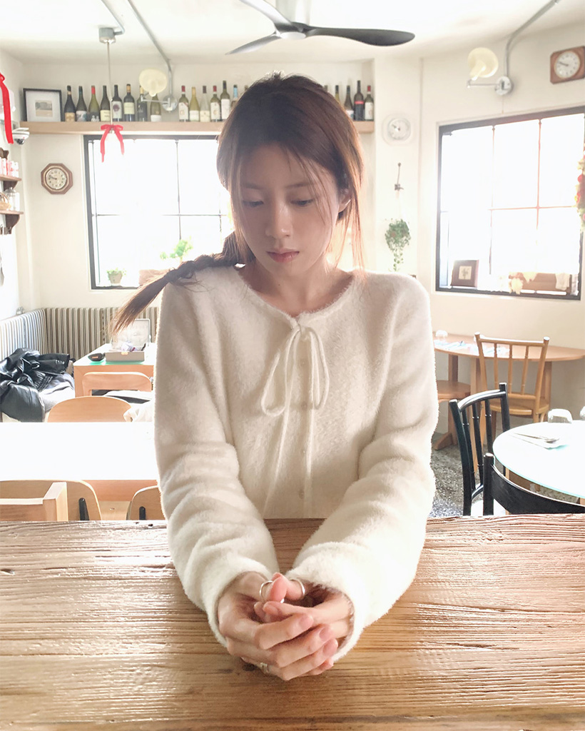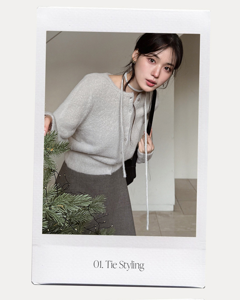 (4color) リボンストラップ ファー カーディガン