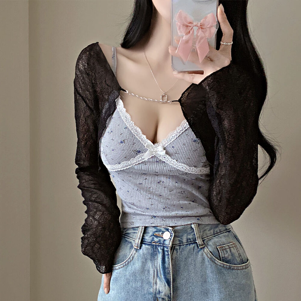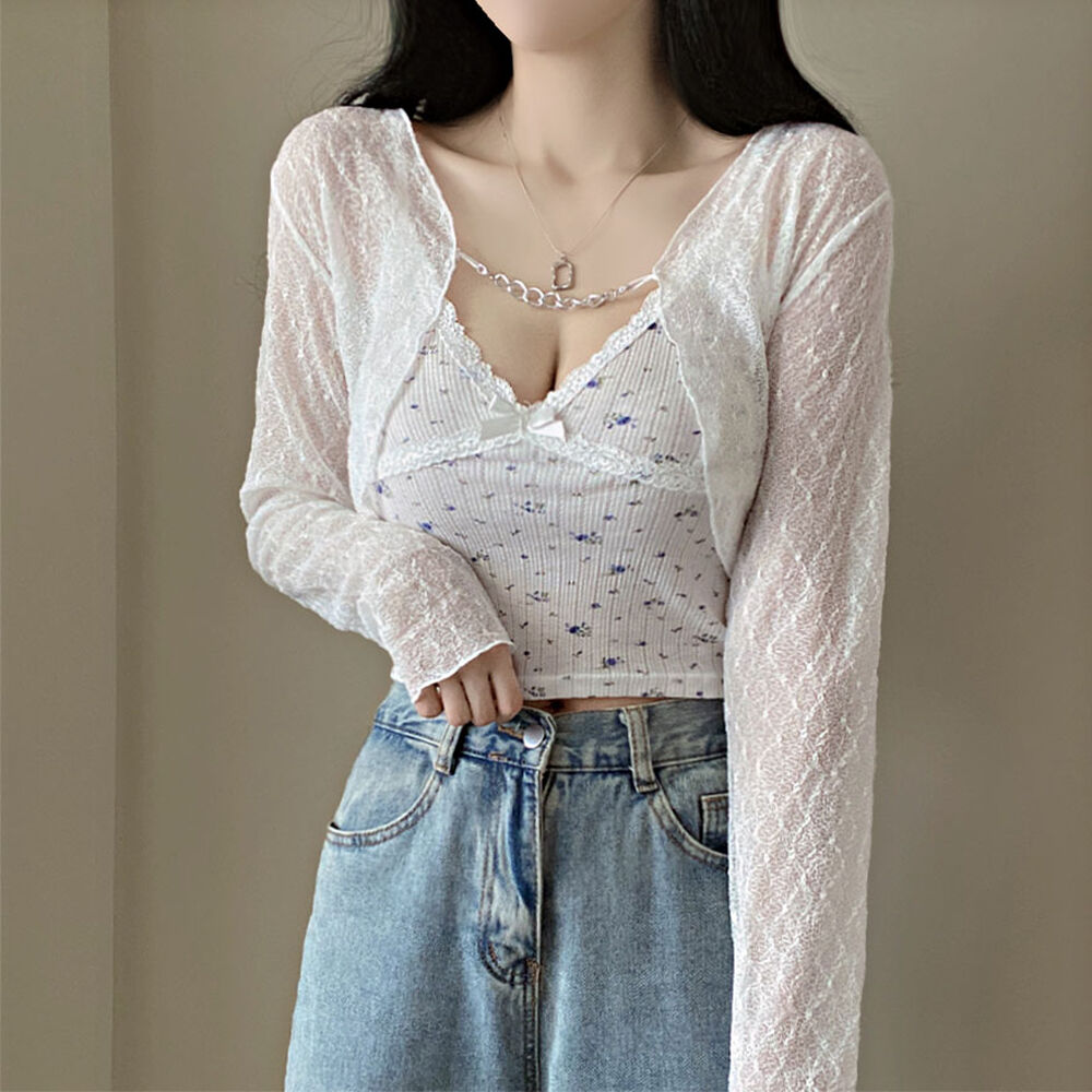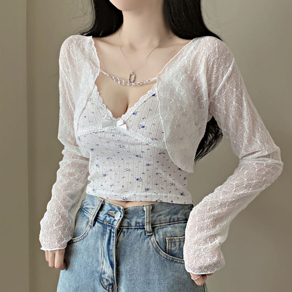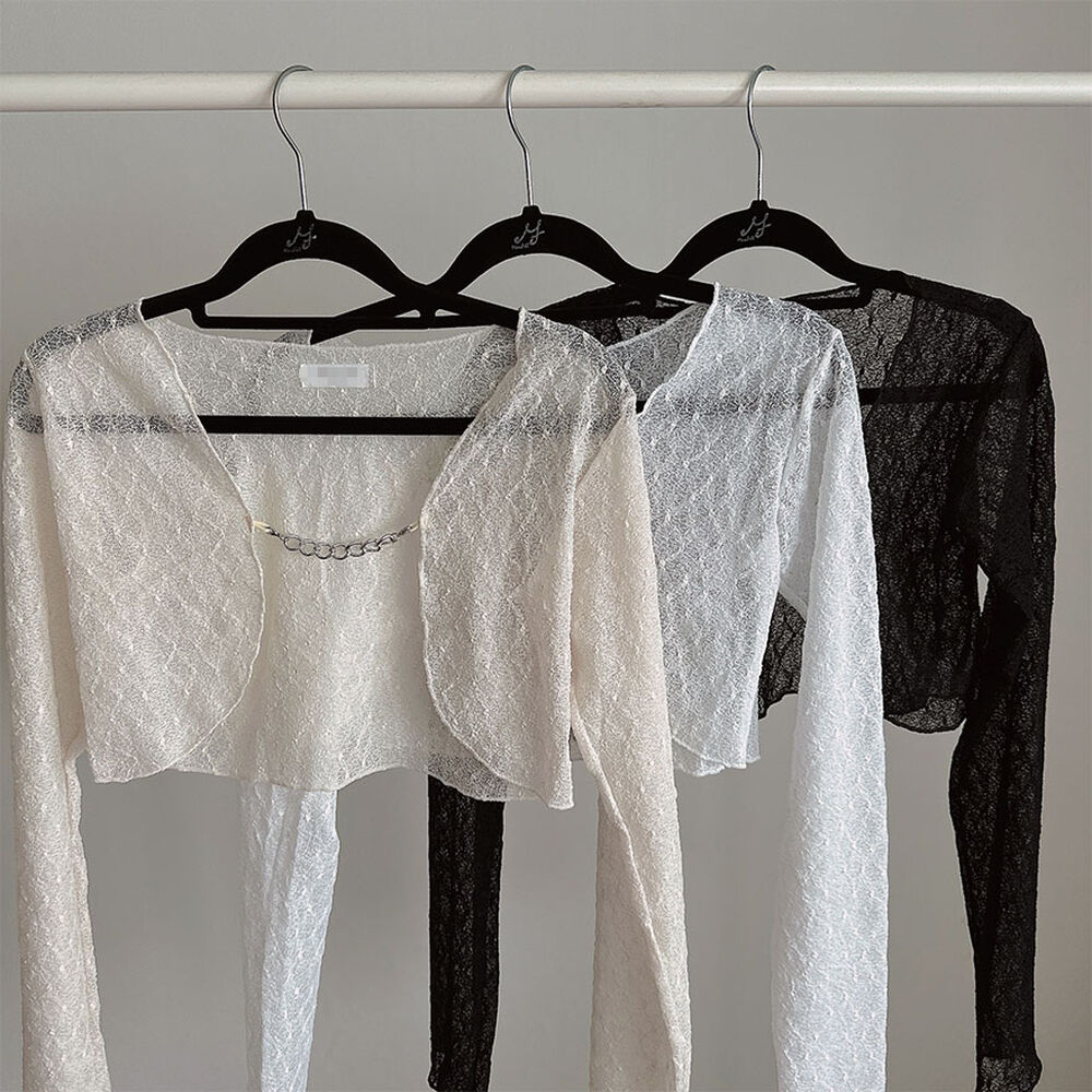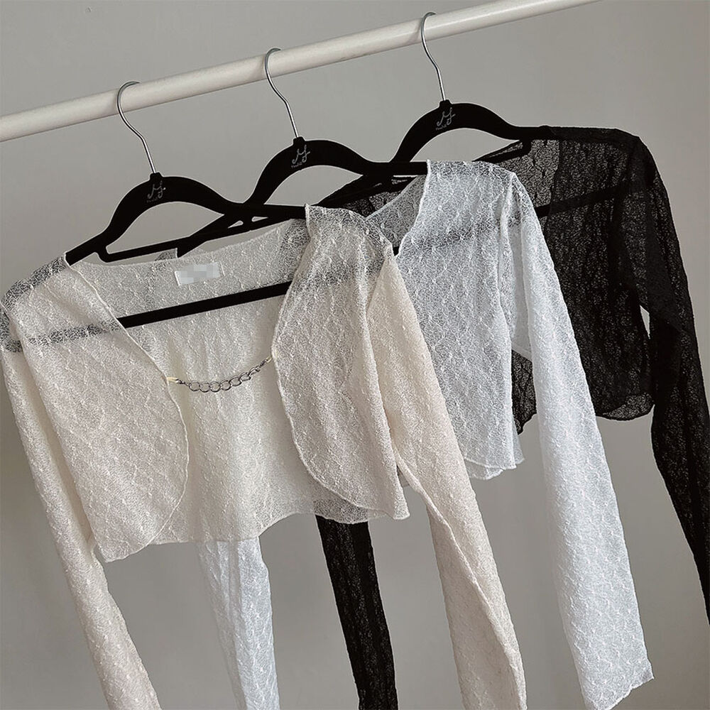 レースチェーンクロップドボレロ長袖シースルーカーディガン