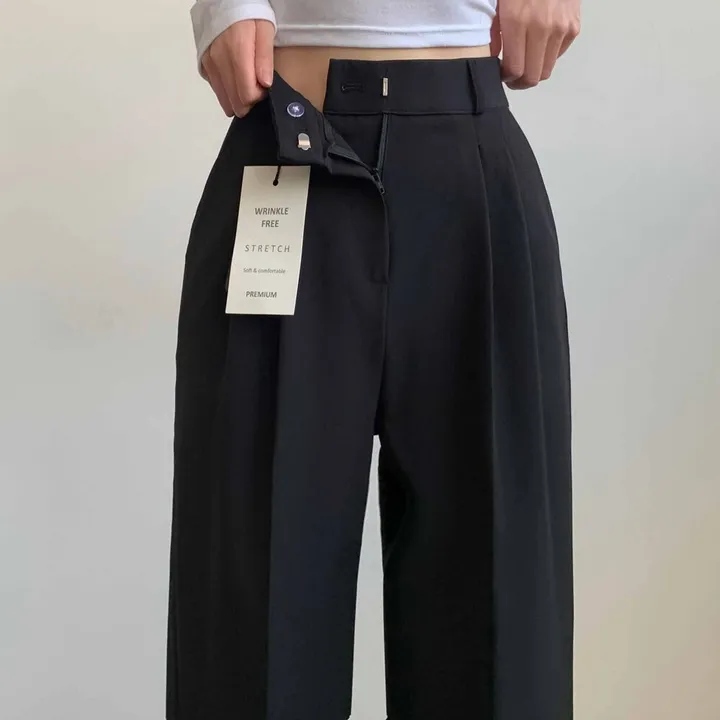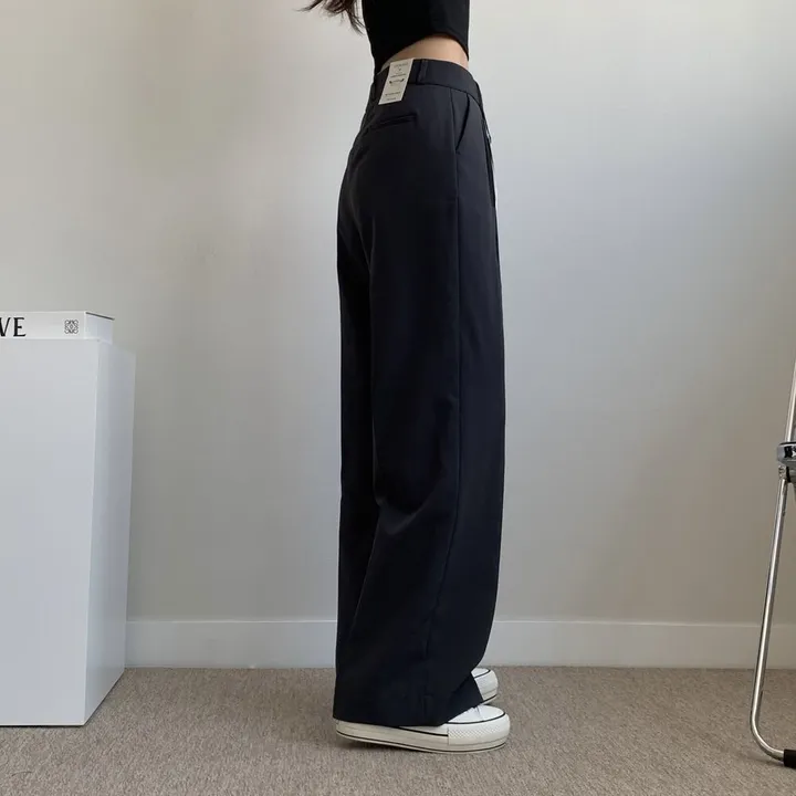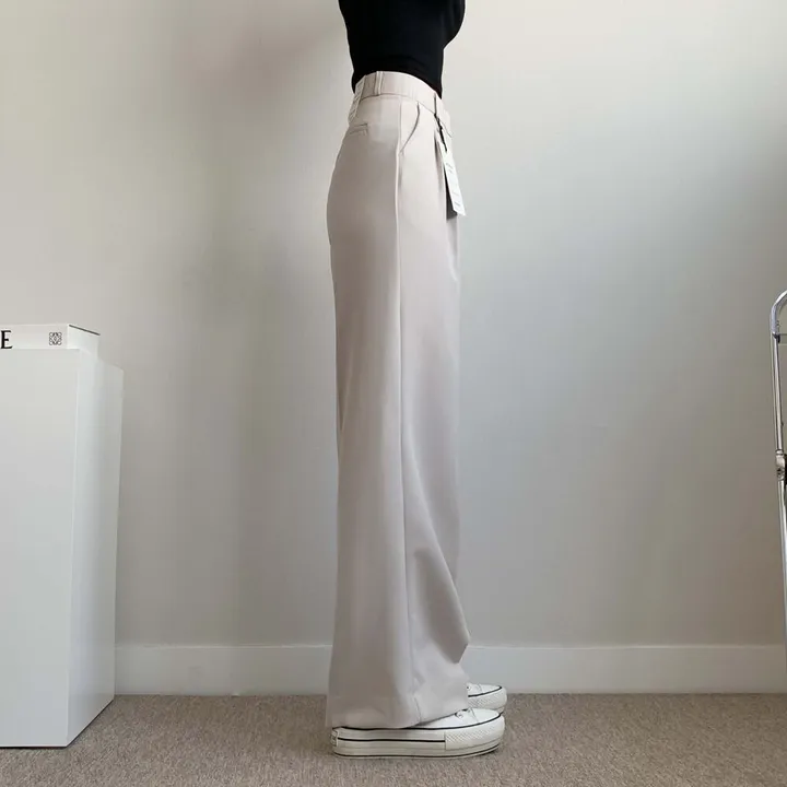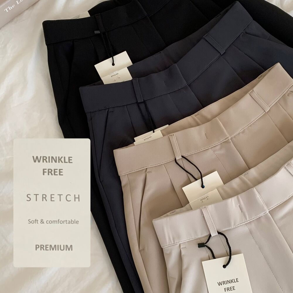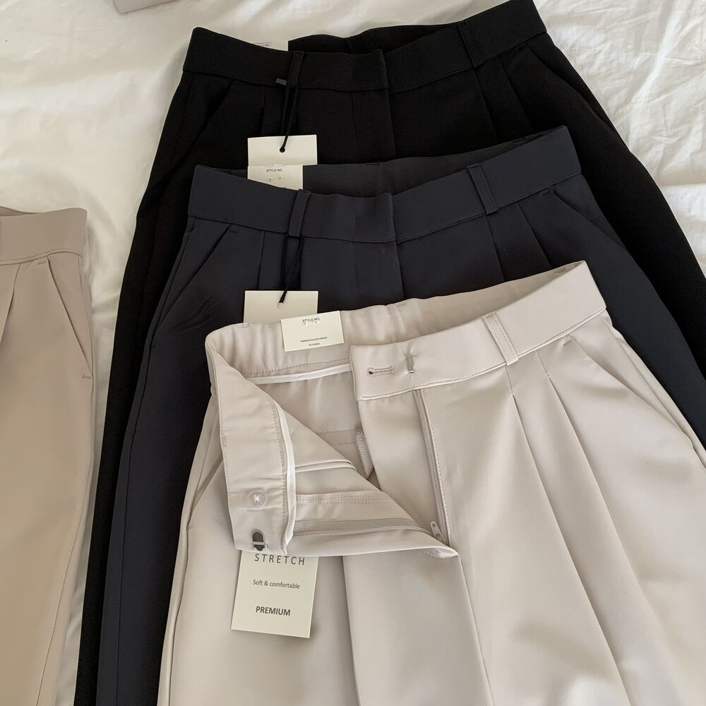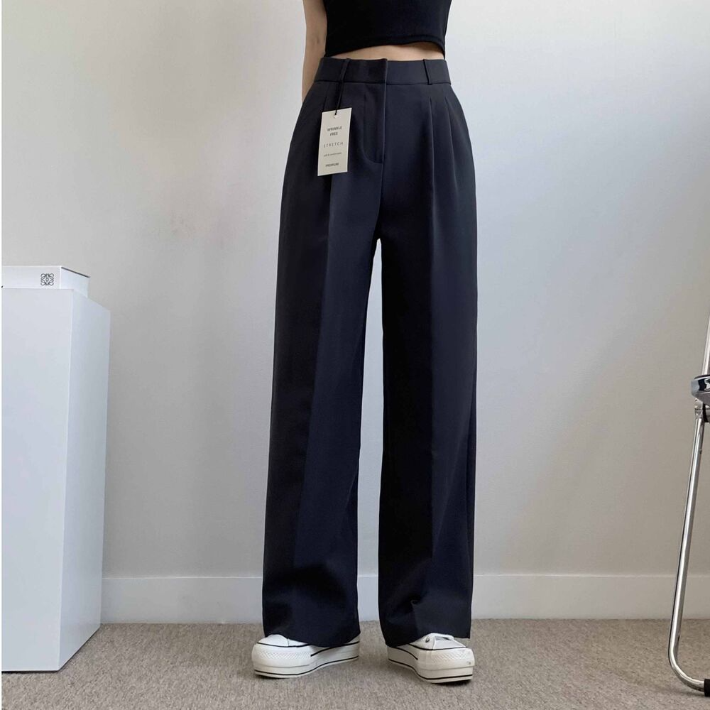 [選べる着丈]ハイウエストワイドストレートスパンスラックス