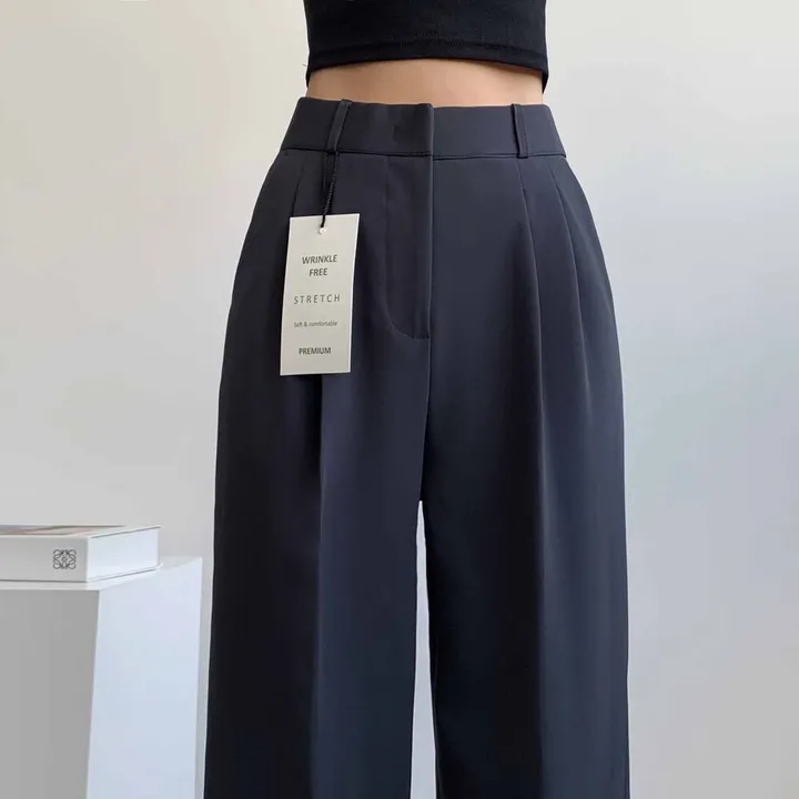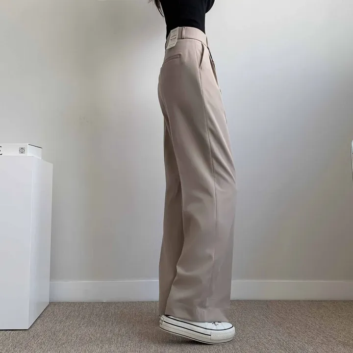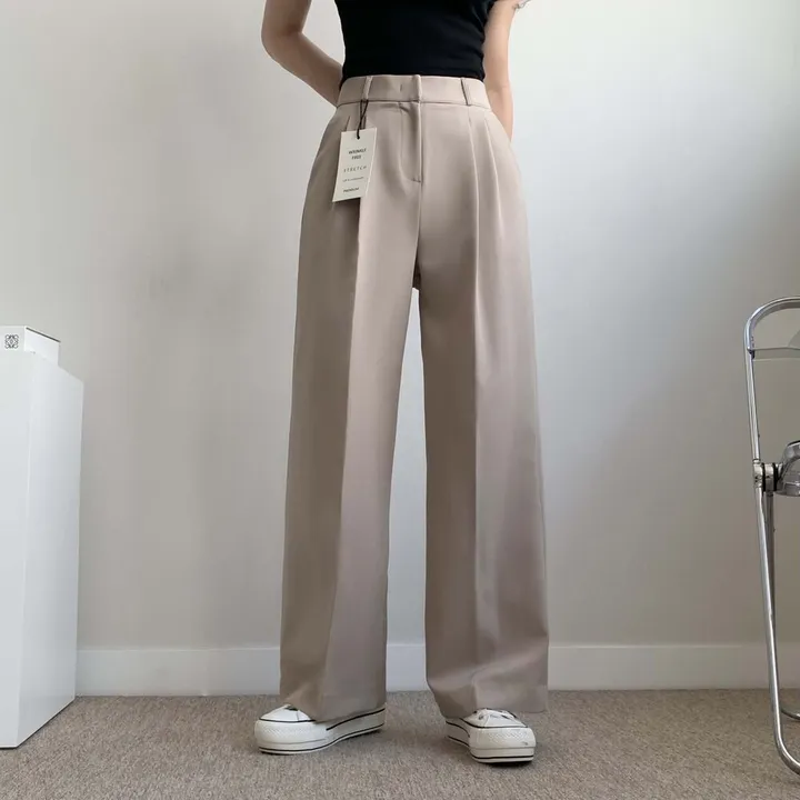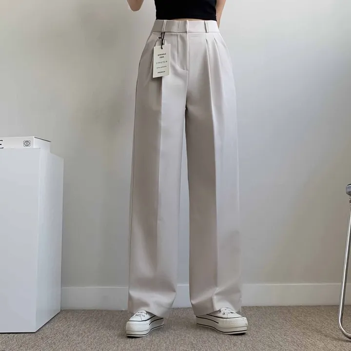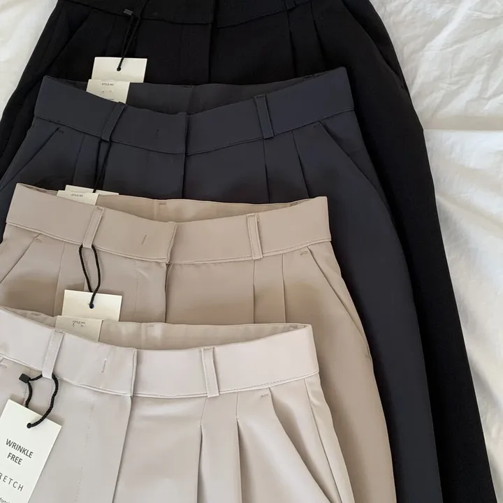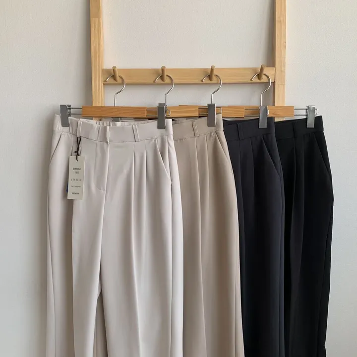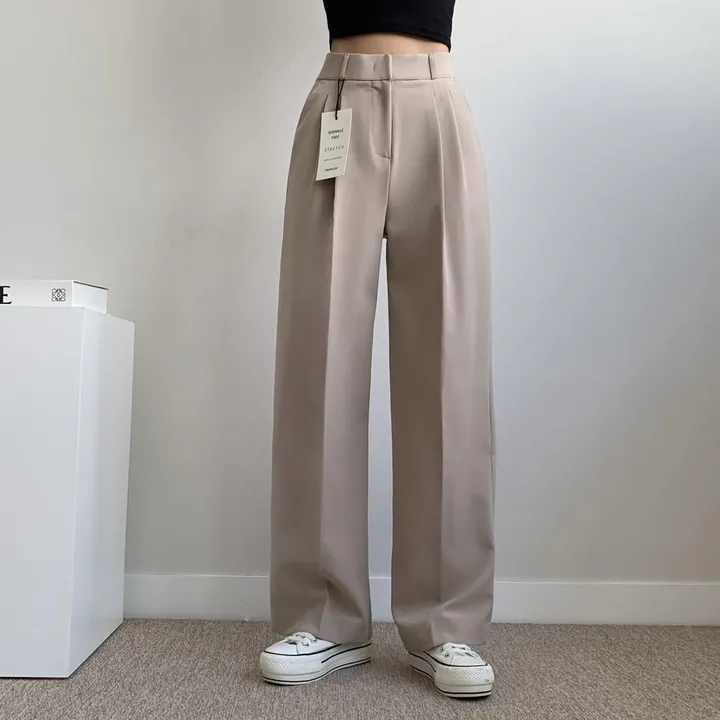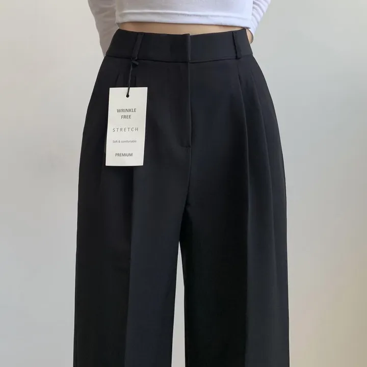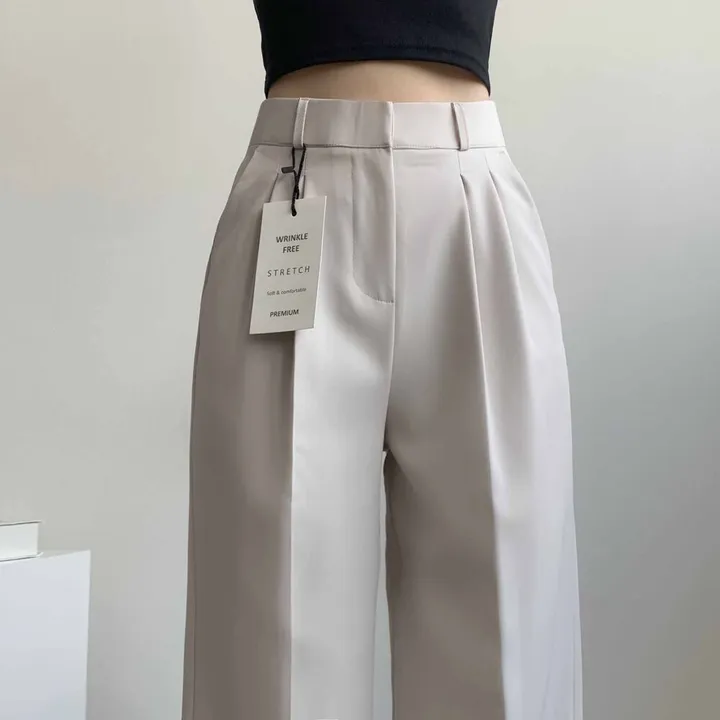 [選べる着丈]ハイウエストワイドストレートスパンスラックス