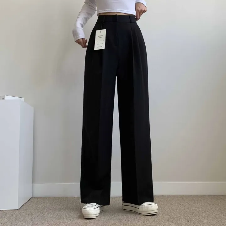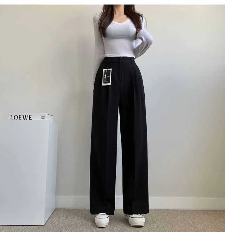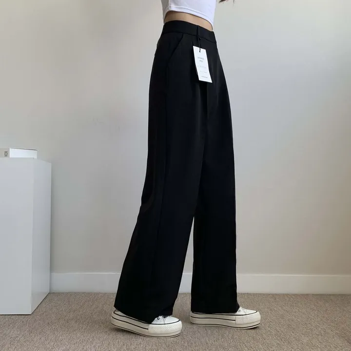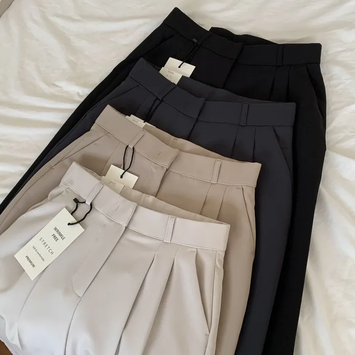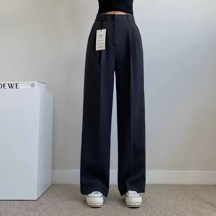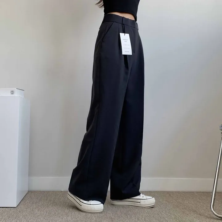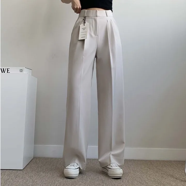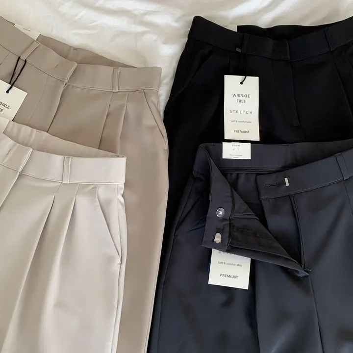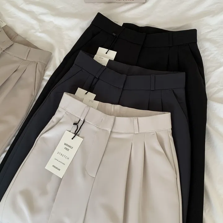 [選べる着丈]ハイウエストワイドストレートスパンスラックス