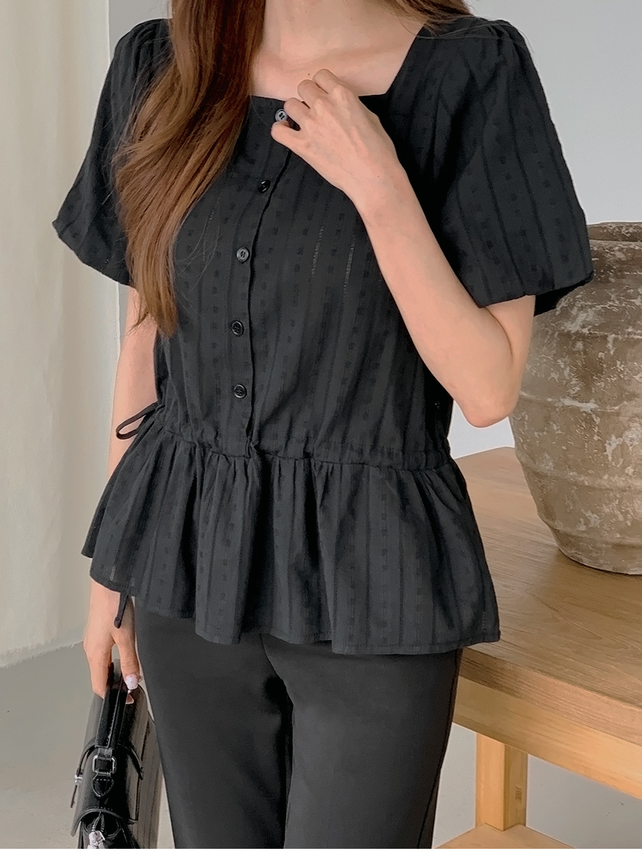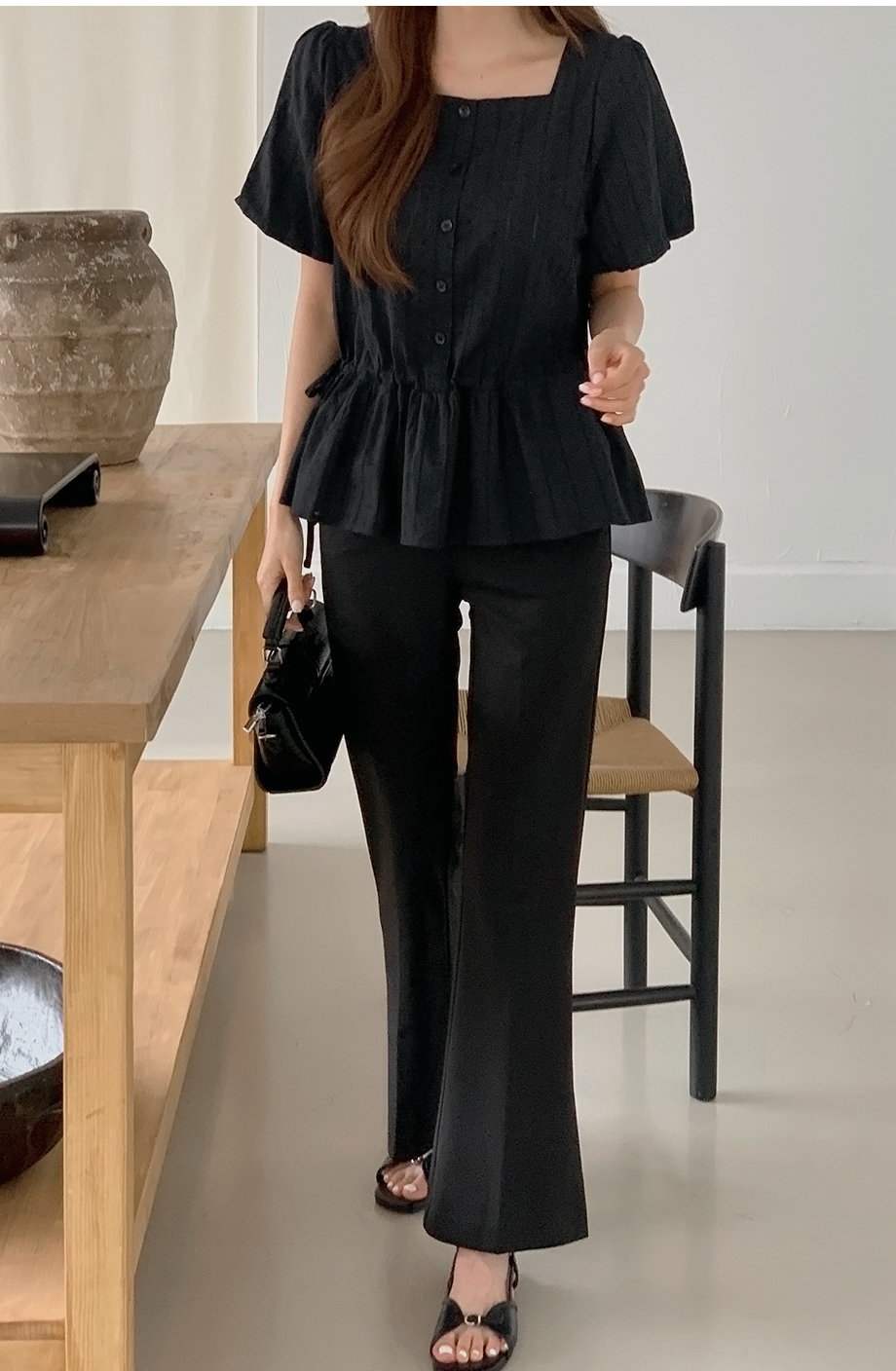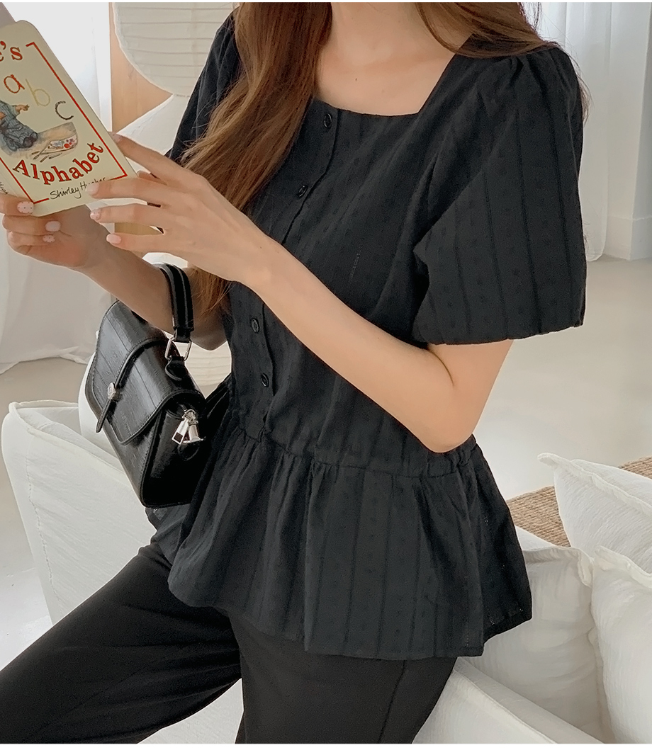 【オケージョン】コットンストリングスクエアネック半袖ブラウス
