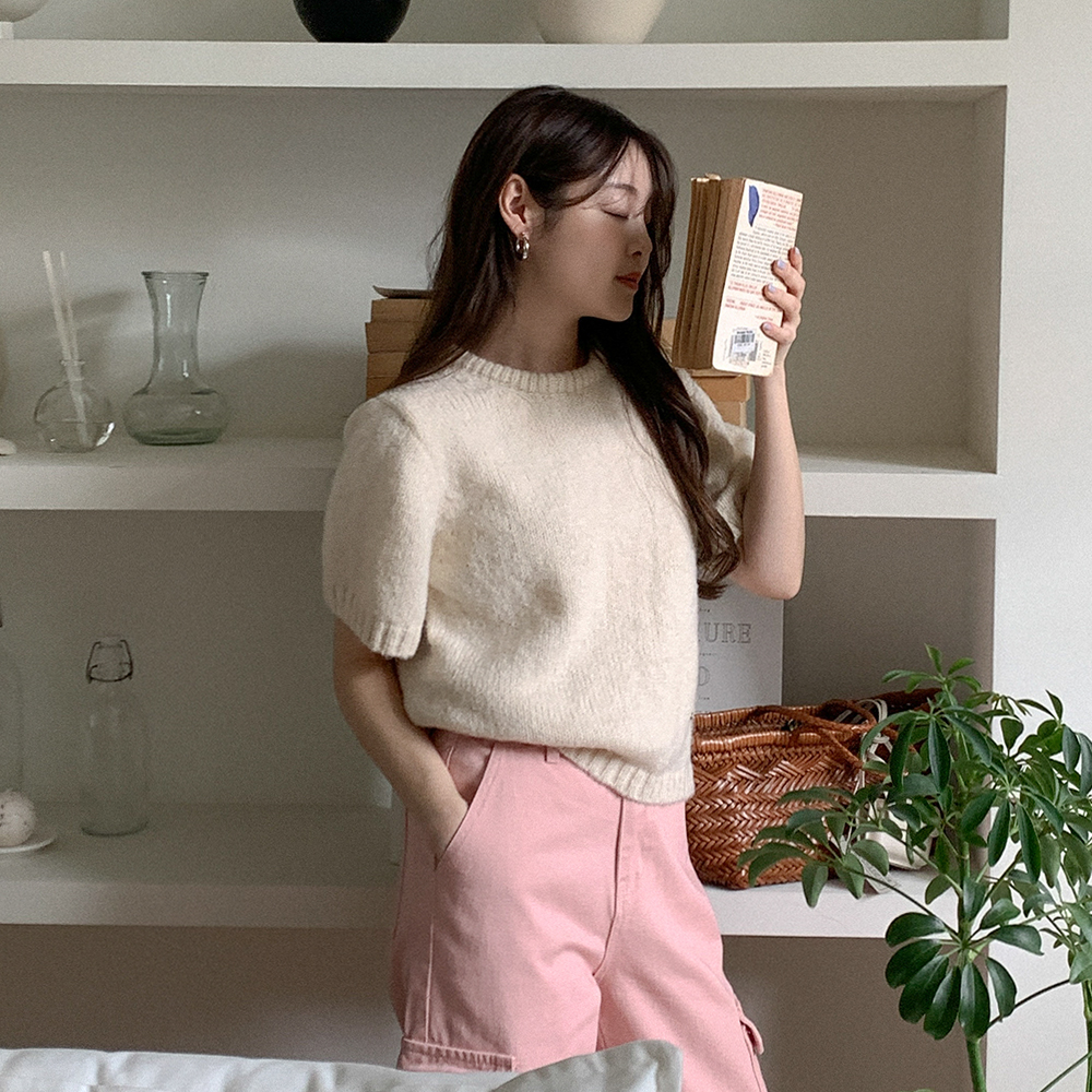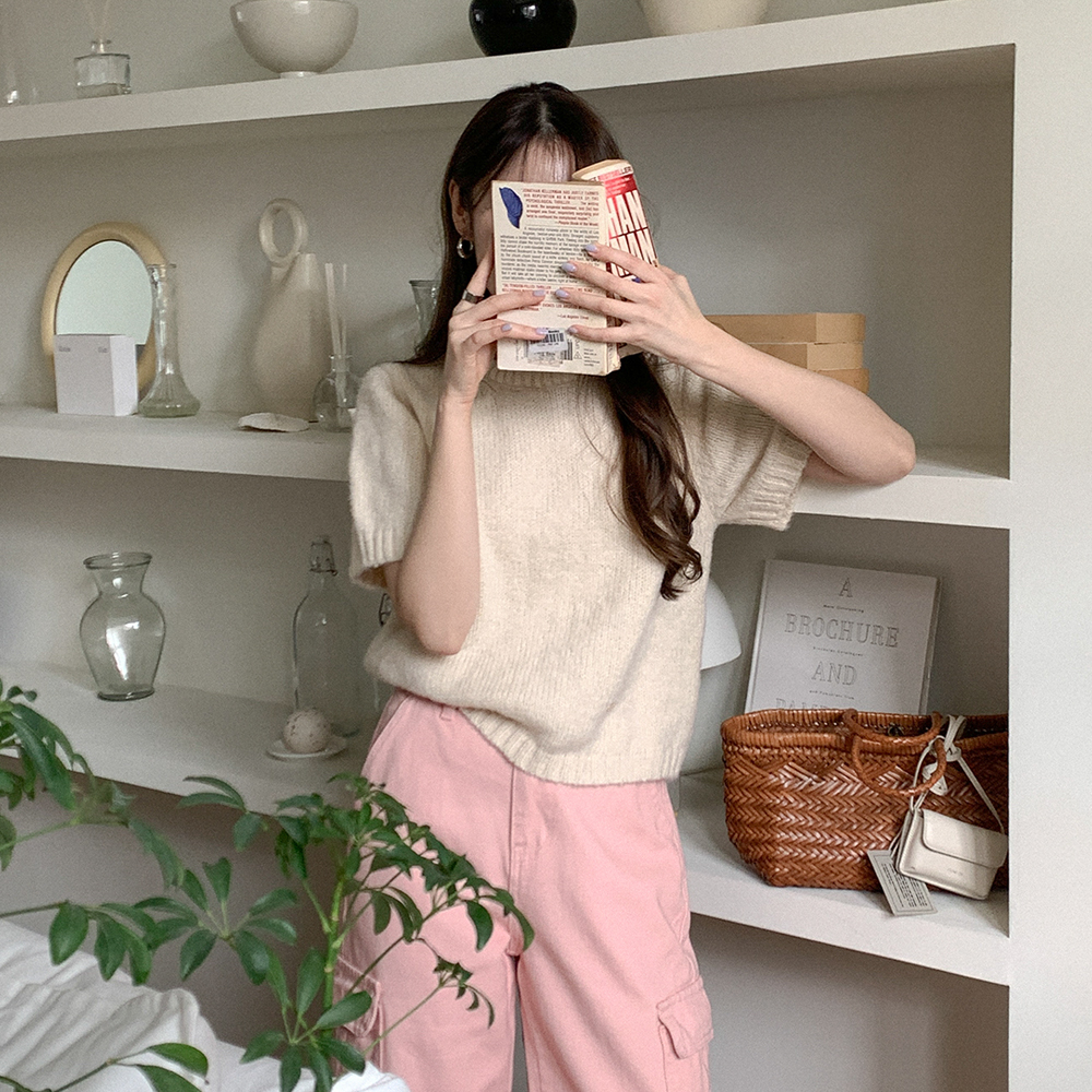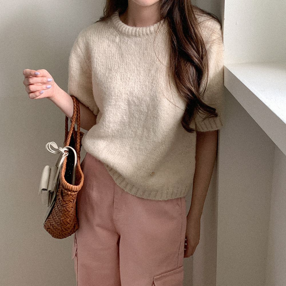 ベーシックラウンド半袖ニット