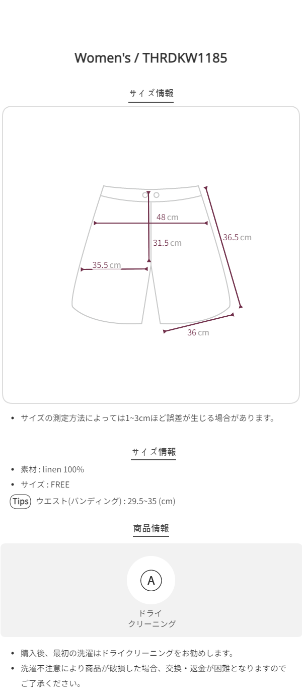 バンディングゴムタック入りショートパンツ3color