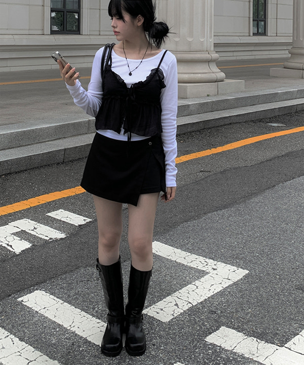 星形ボタンラップ風ショートキュロットパンツ (2color)