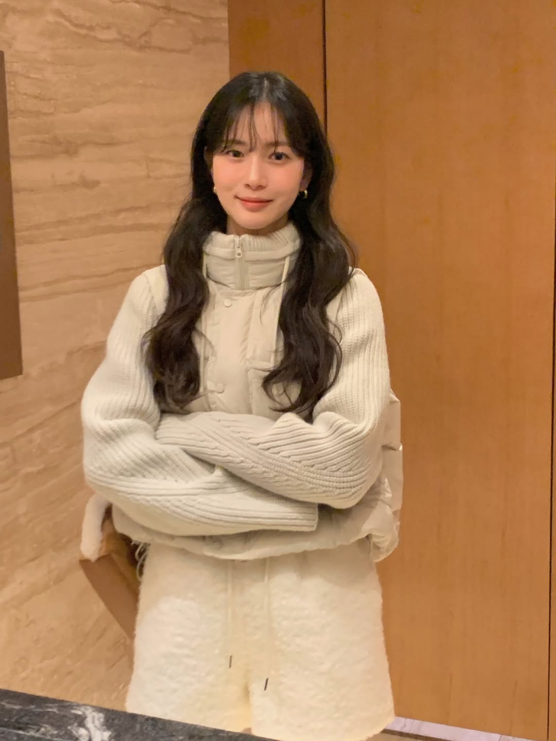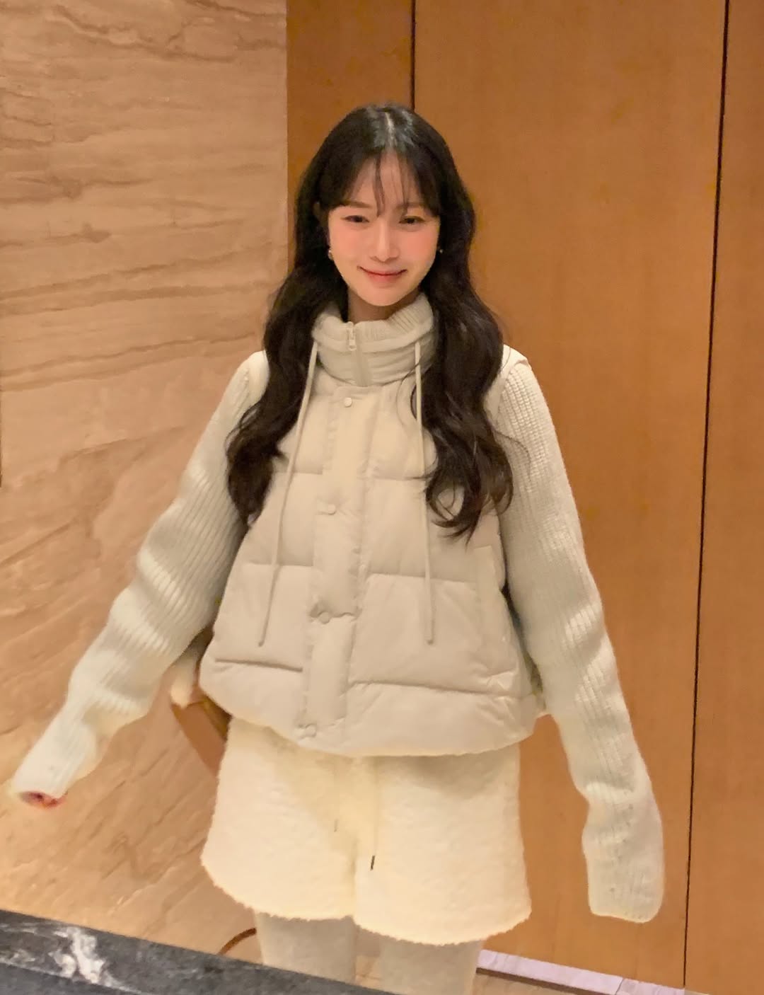 (2 color)ニット袖ハイネックダウン