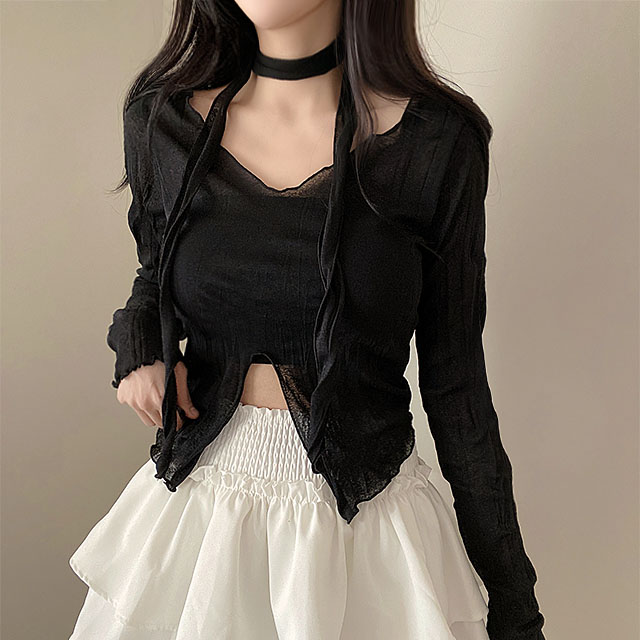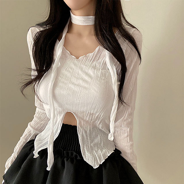 (3col)リンクルタイマフラースリット長袖Tシャツ