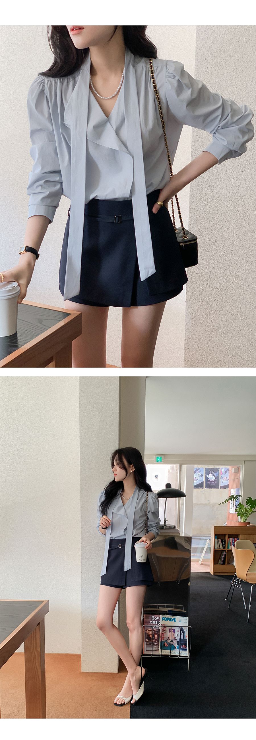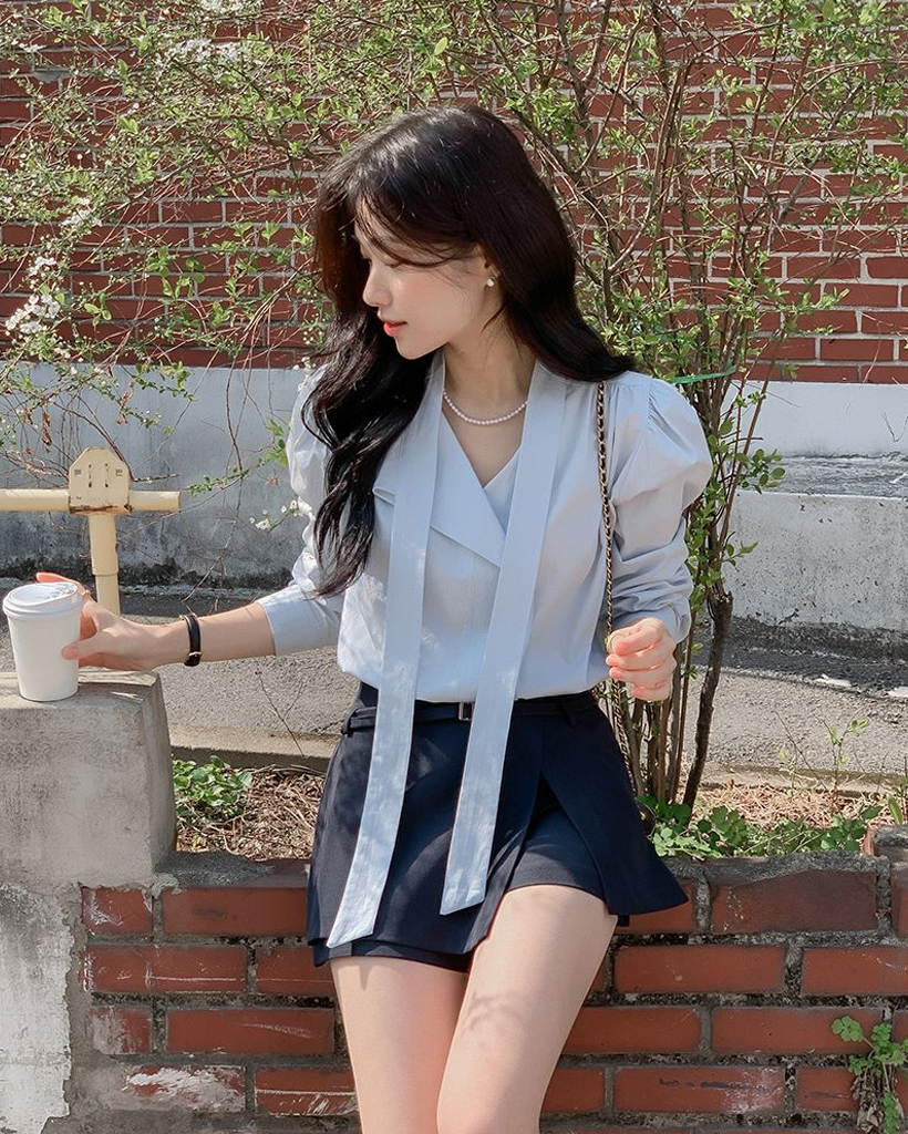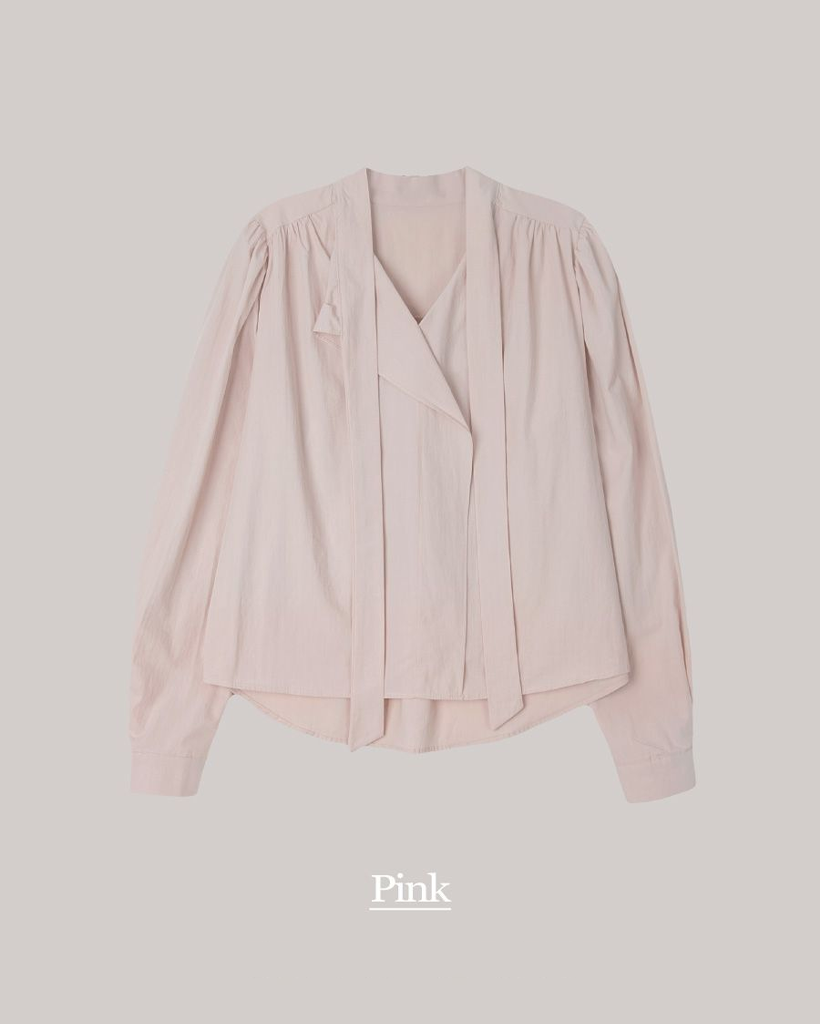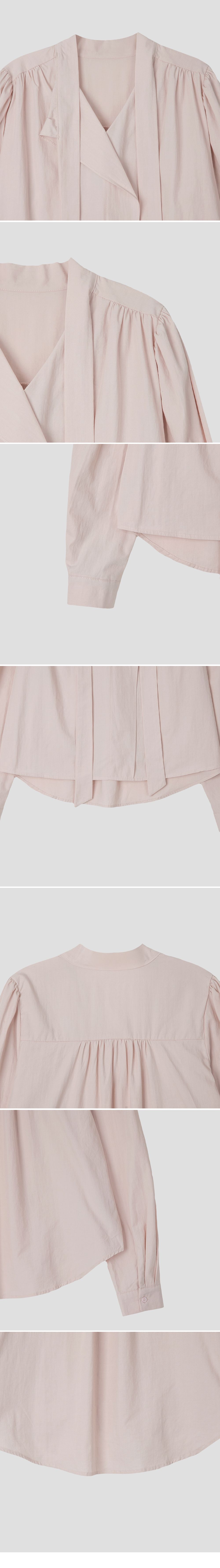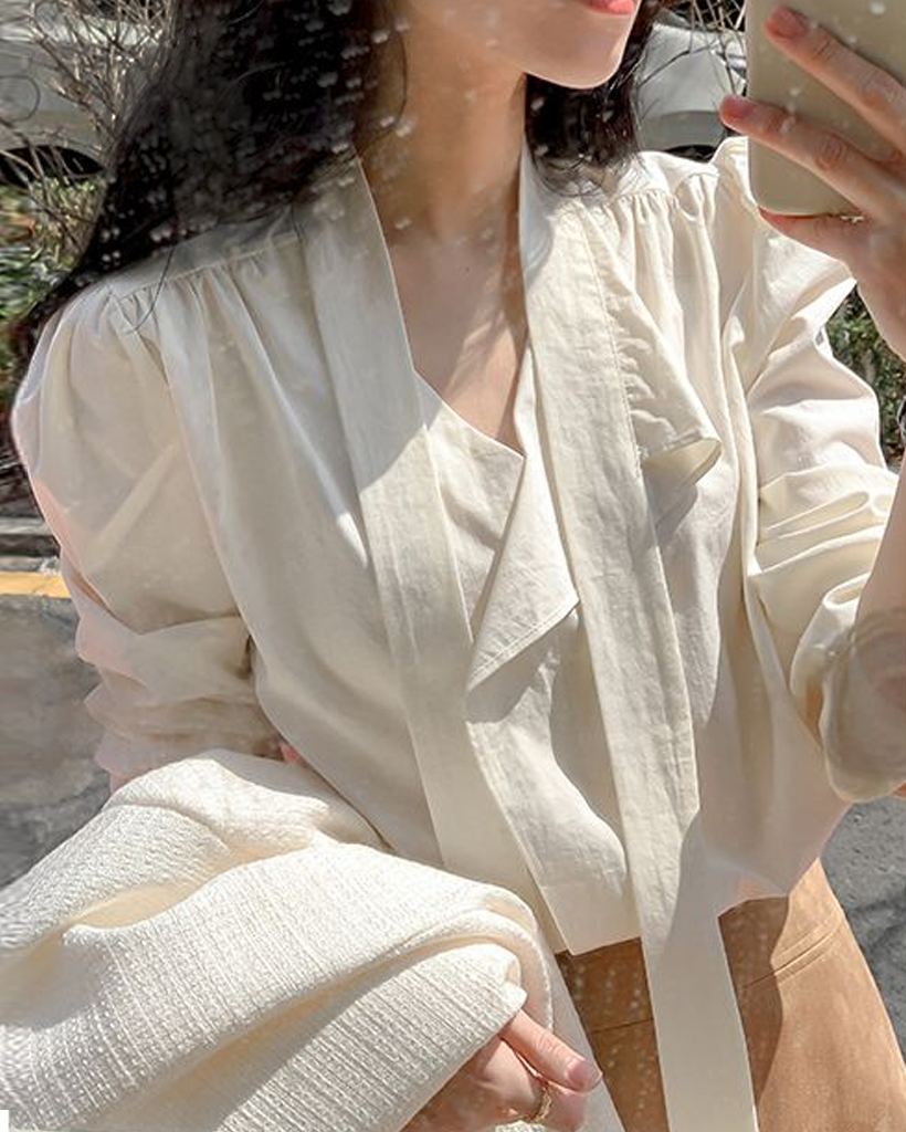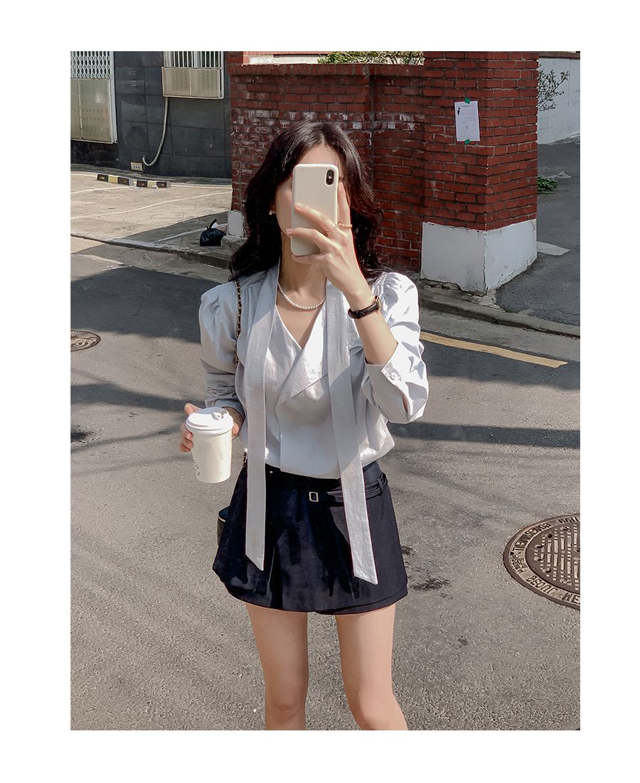 Vネックフリルストラップロングスリーブブラウス