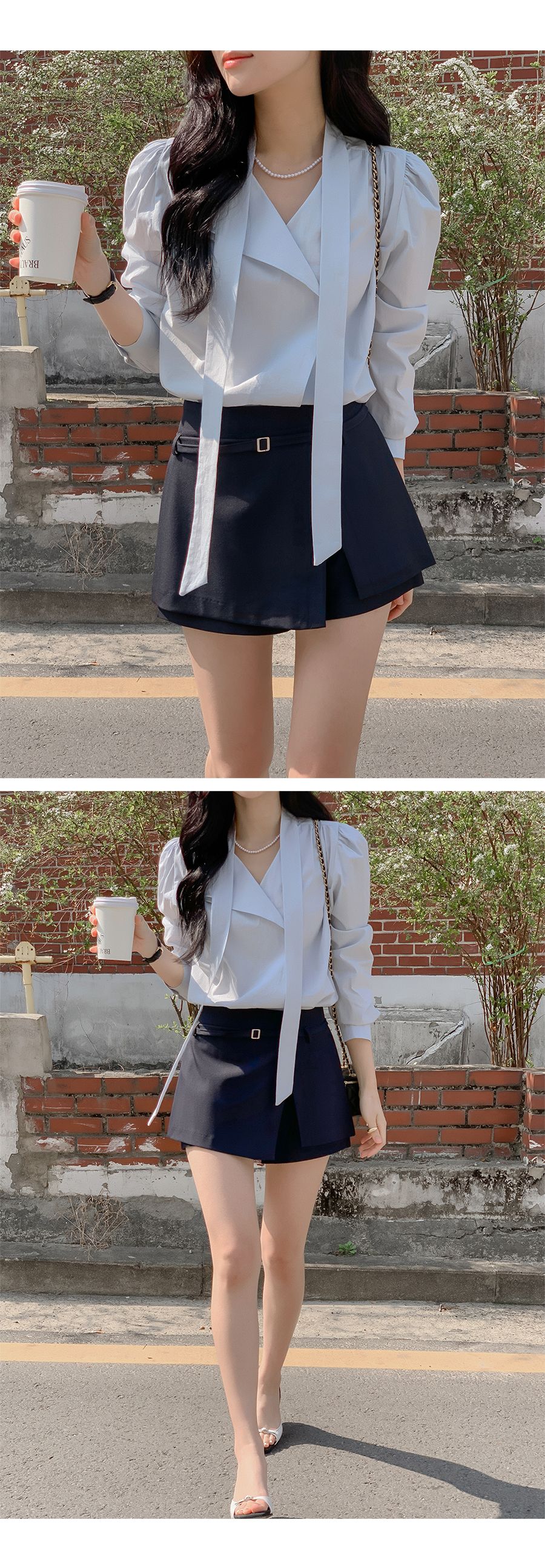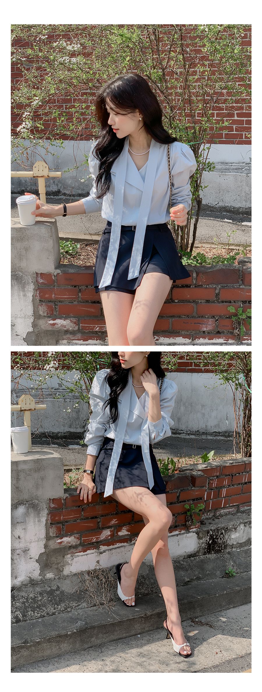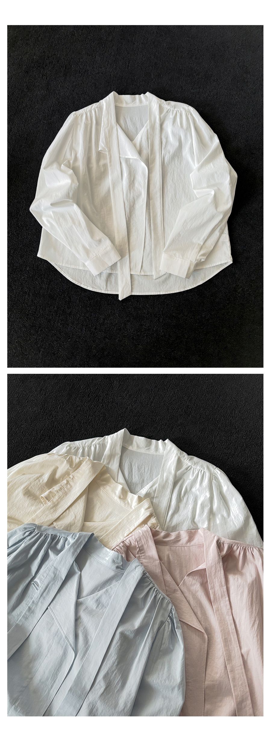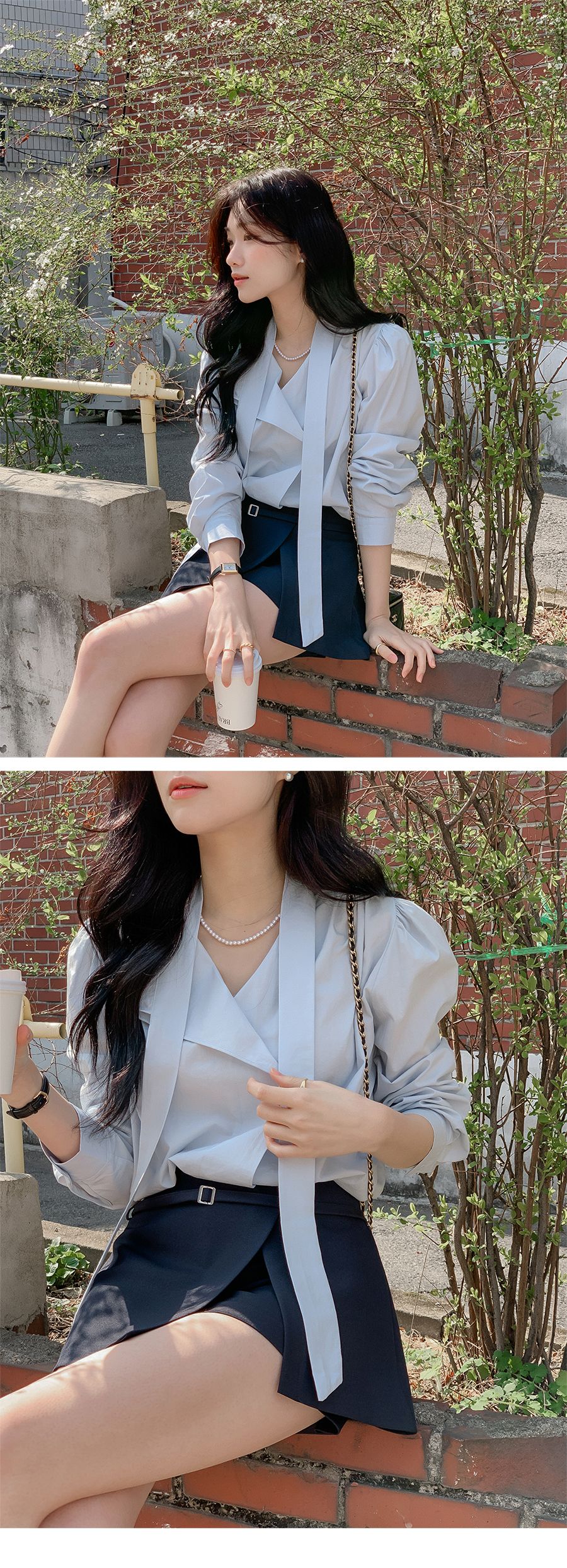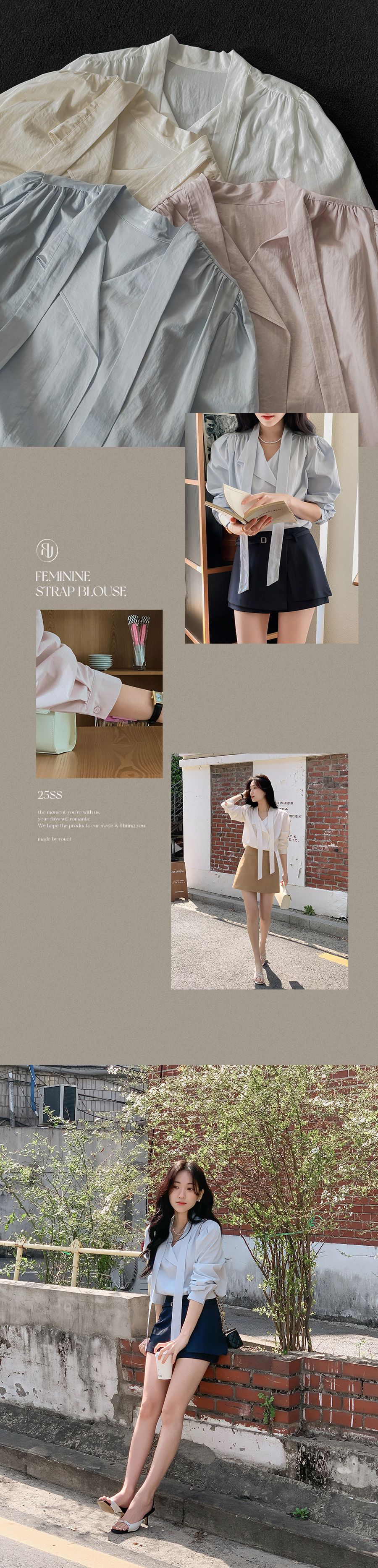 Vネックフリルストラップロングスリーブブラウス