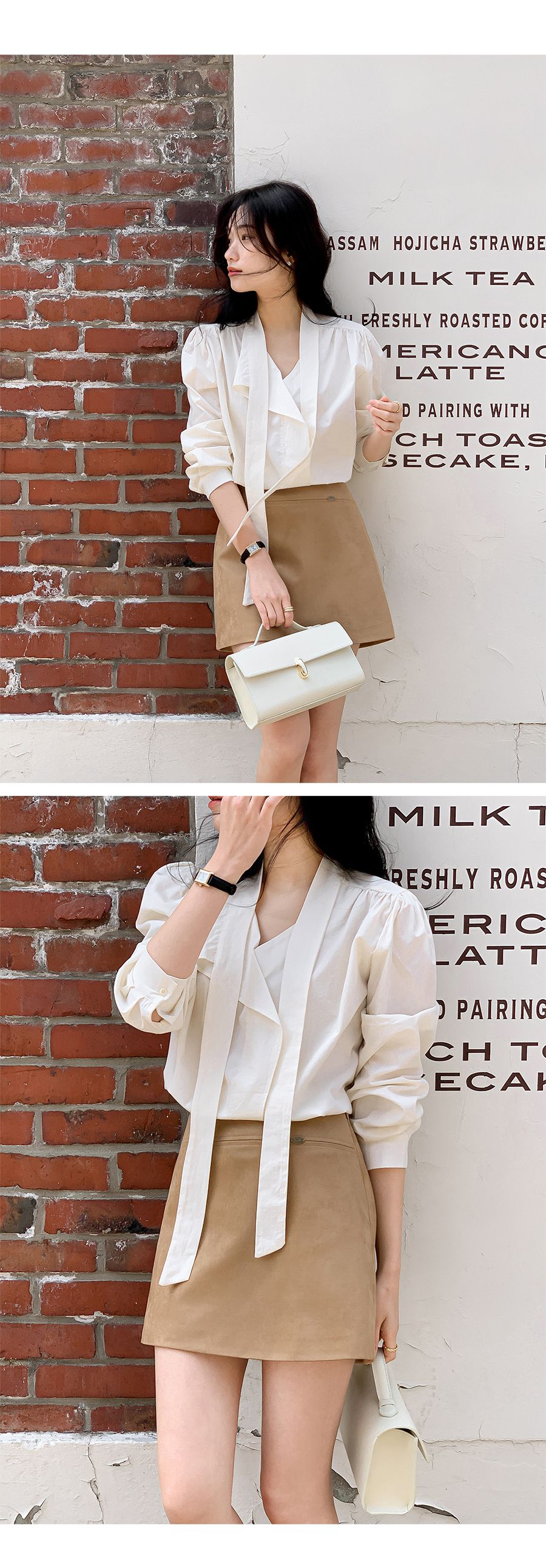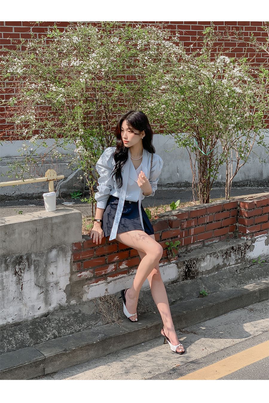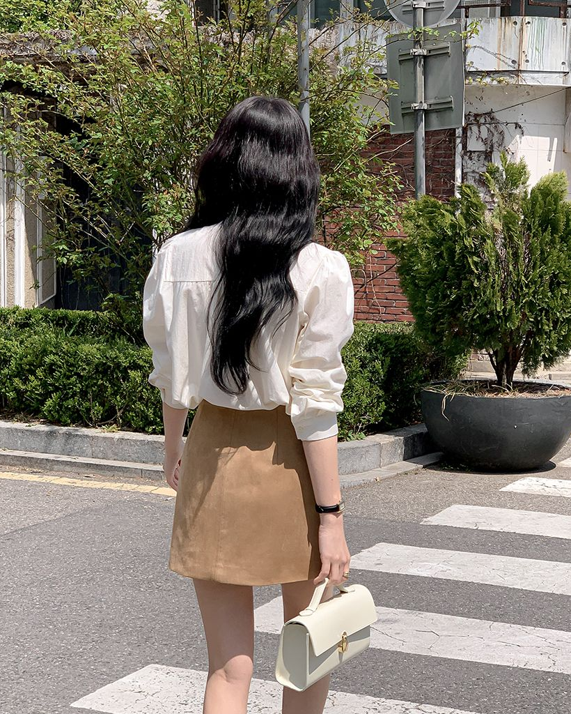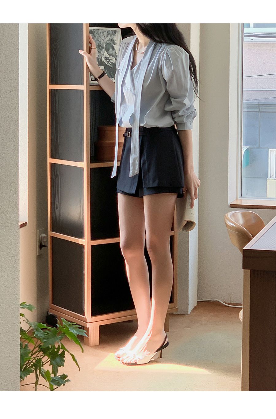 Vネックフリルストラップロングスリーブブラウス