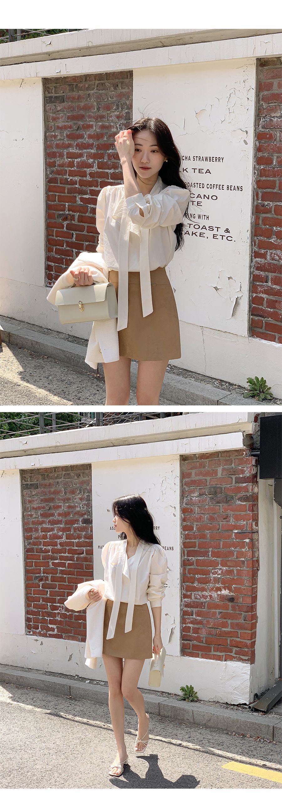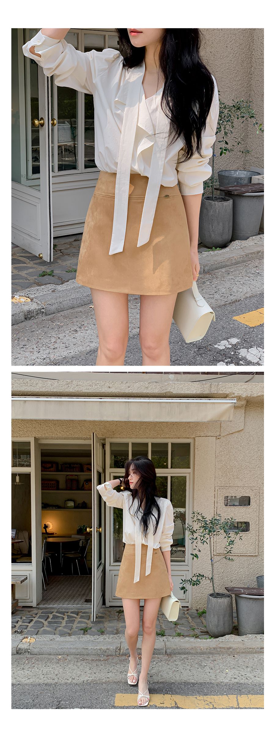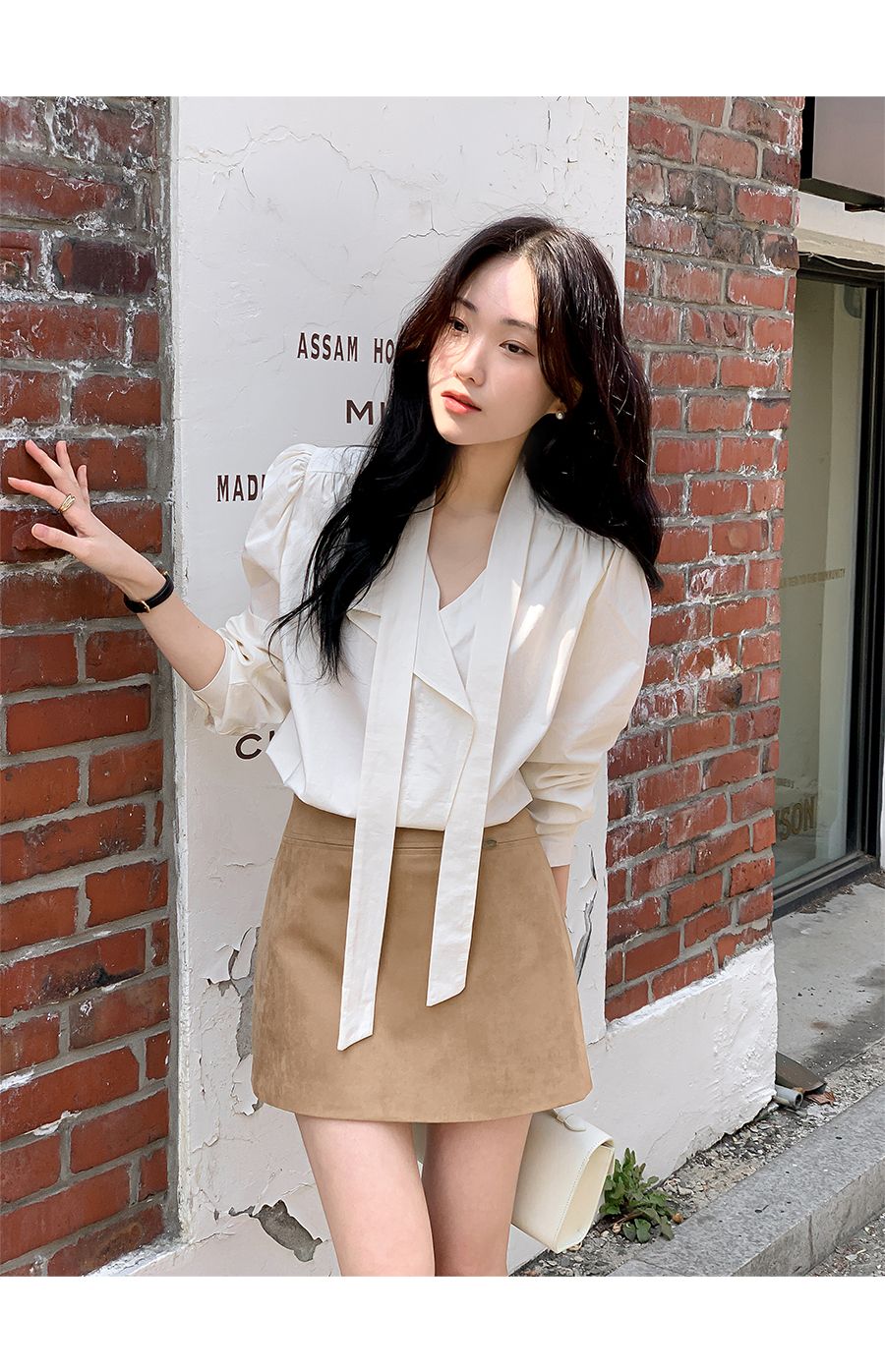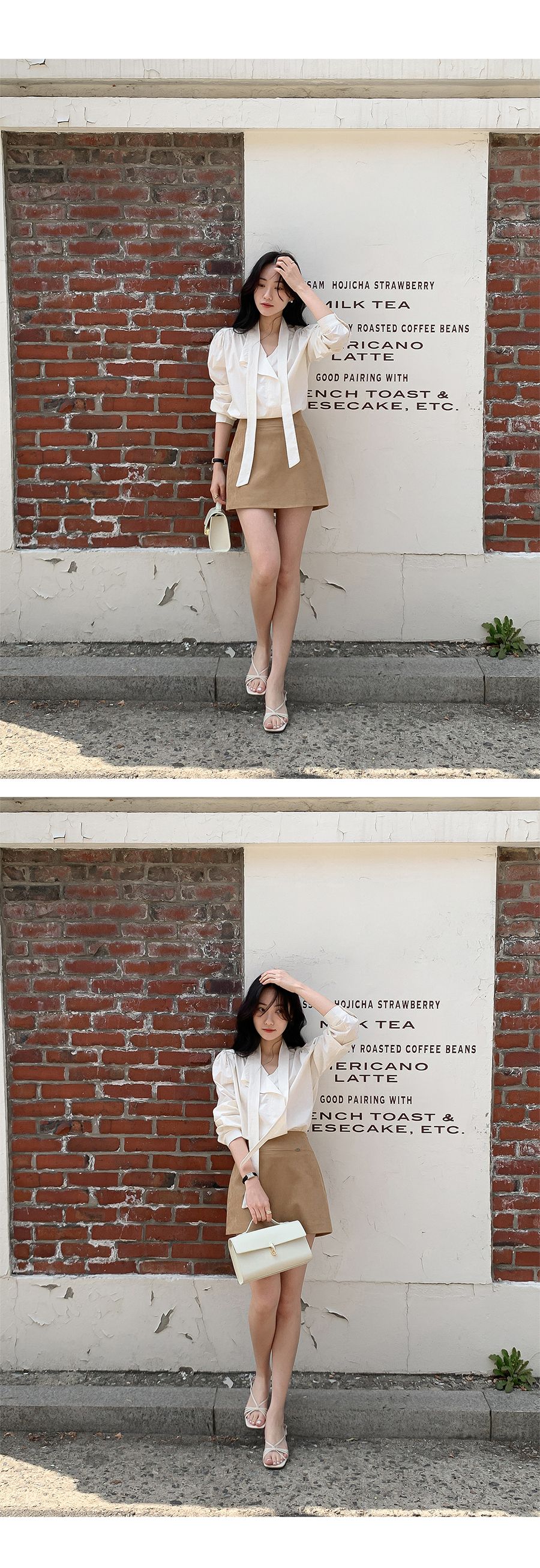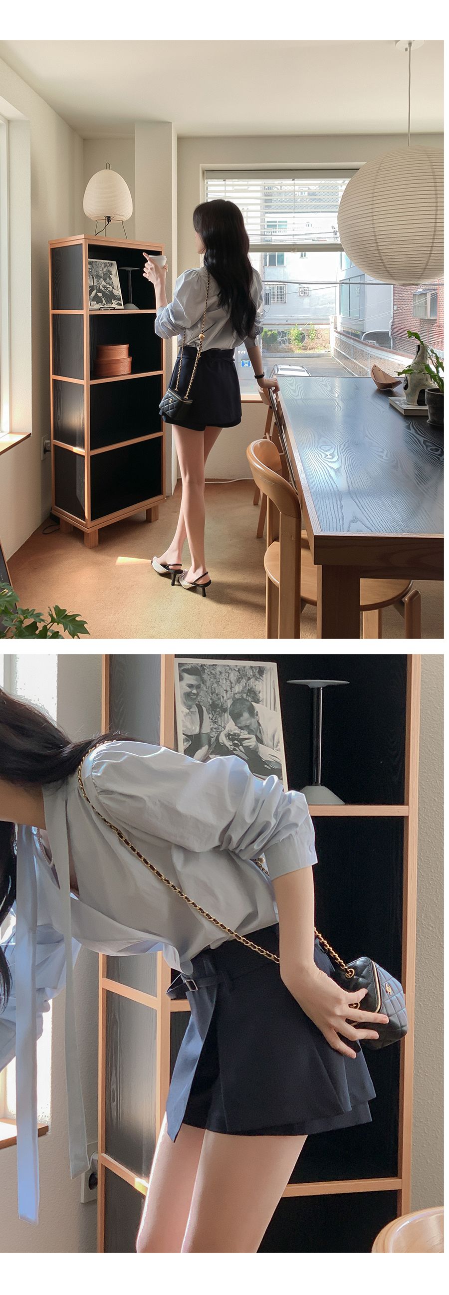 Vネックフリルストラップロングスリーブブラウス