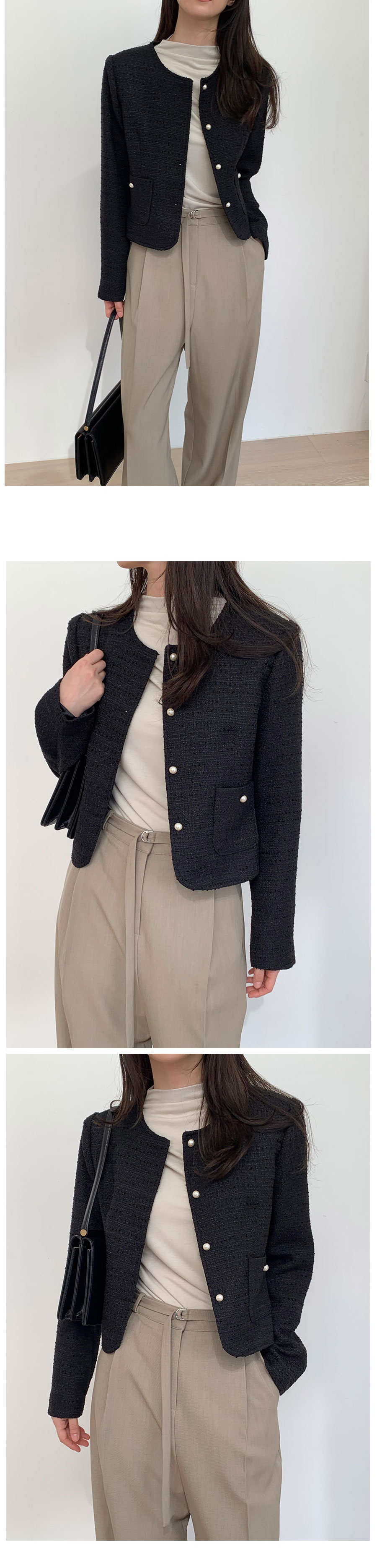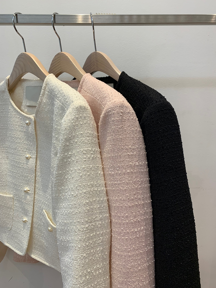 【オケージョン】ラウンドセミクロップドツイードジャケット