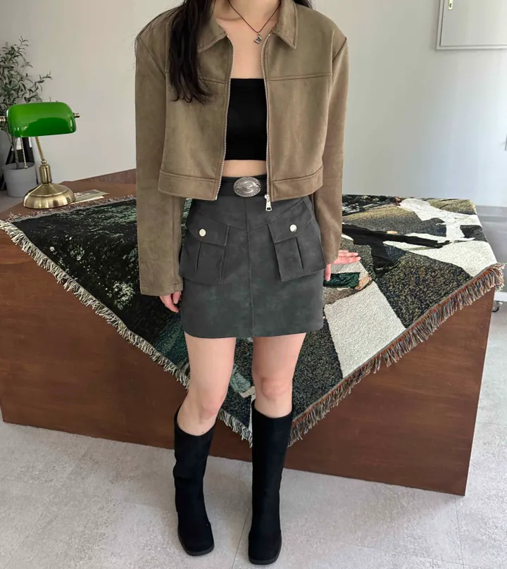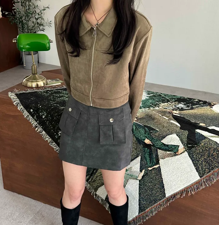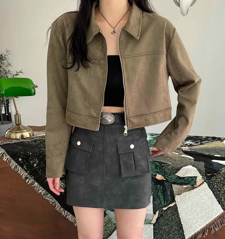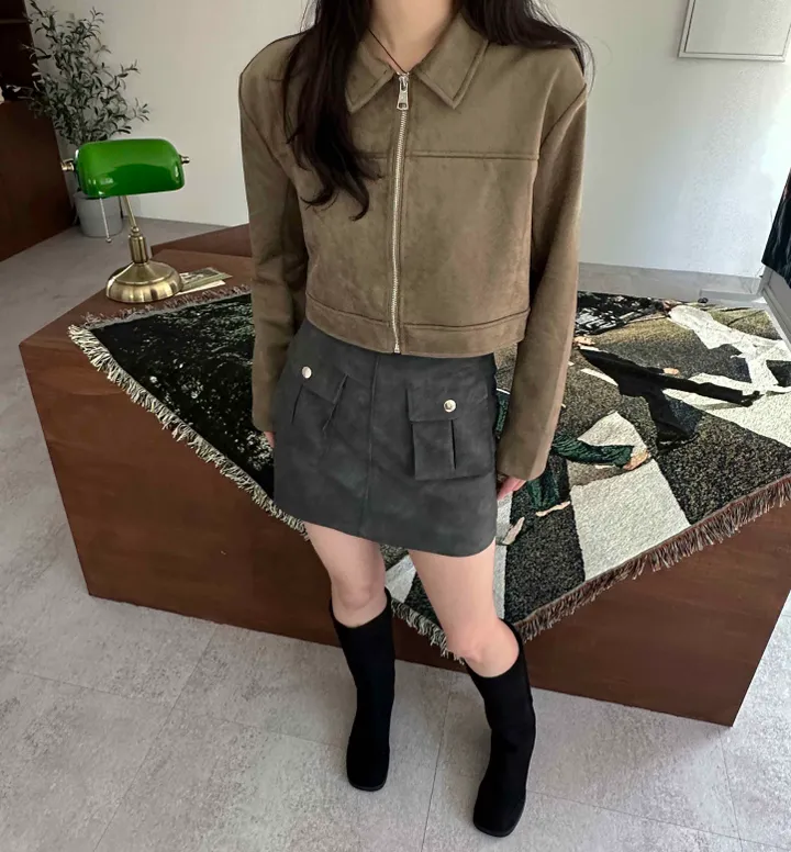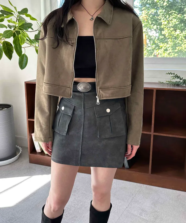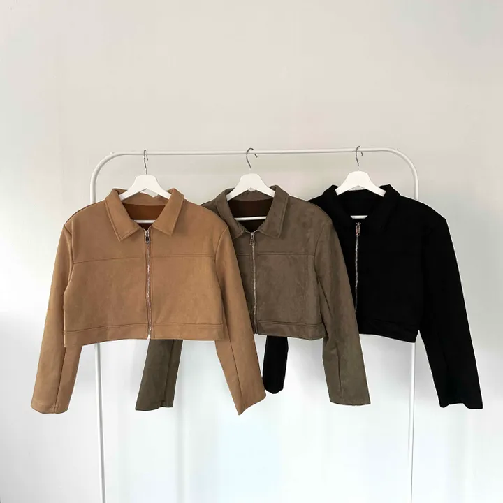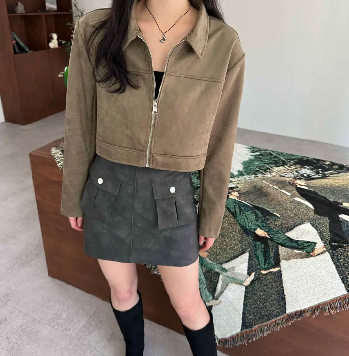 スエードオーバーサイズカラークロップドジップアップジャケット(3color)