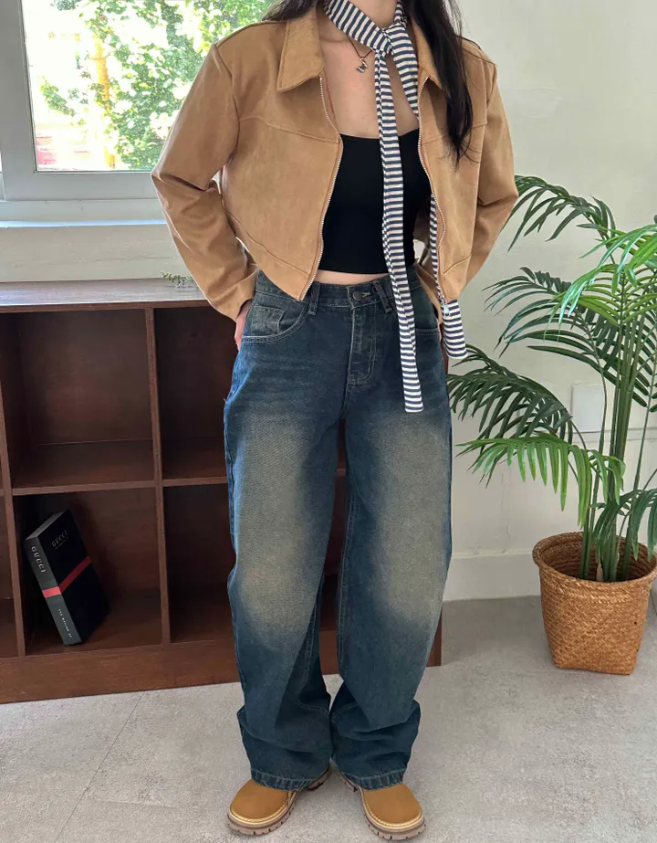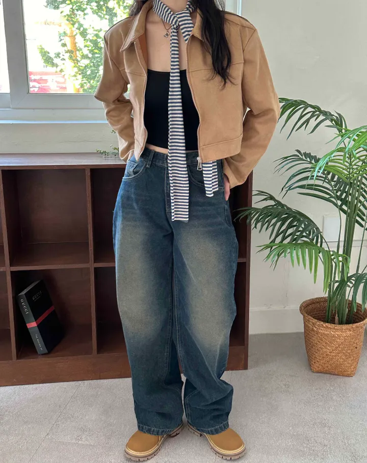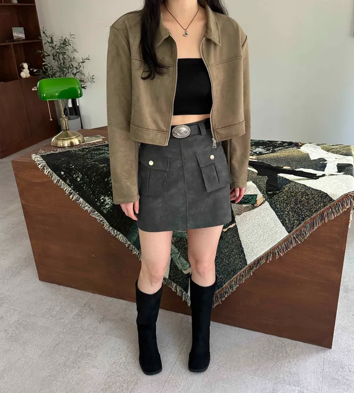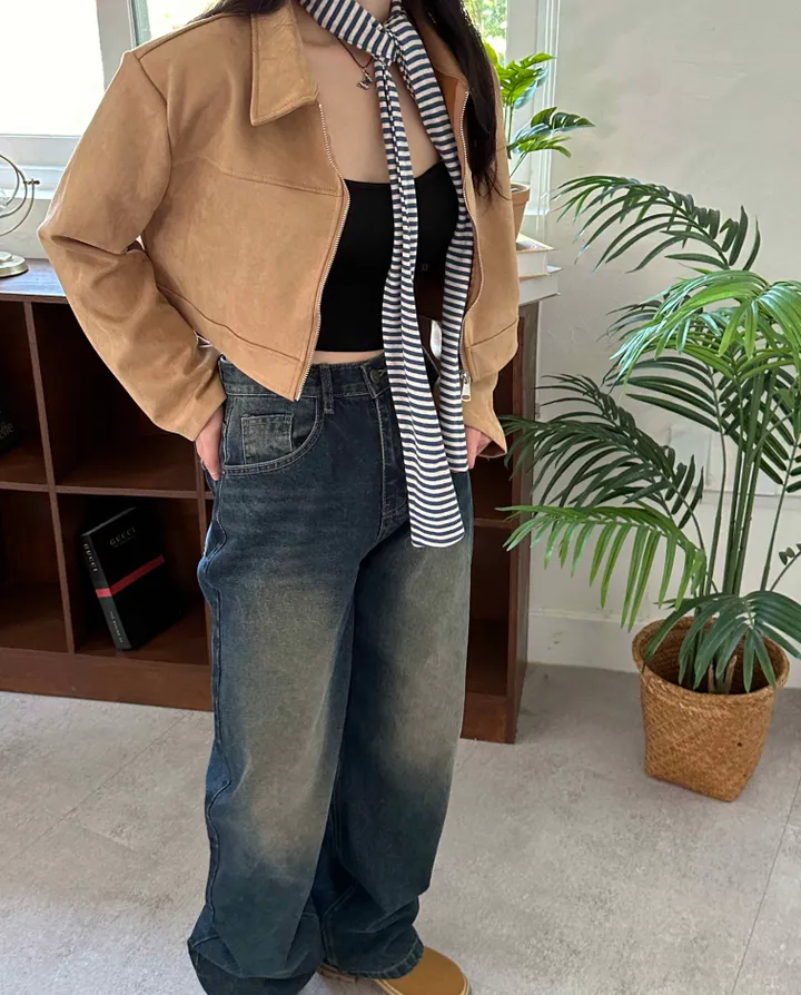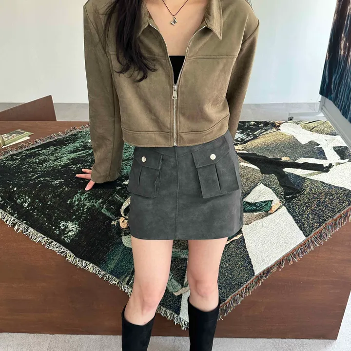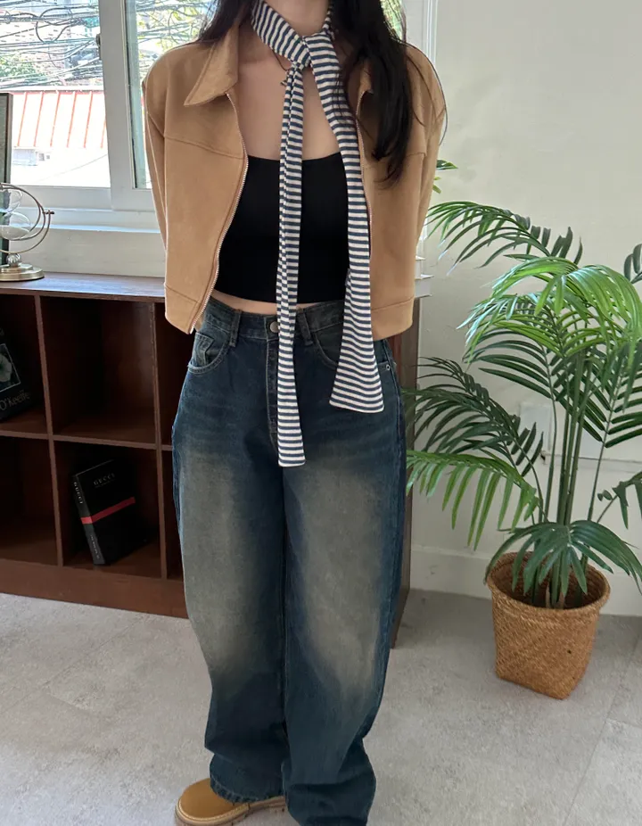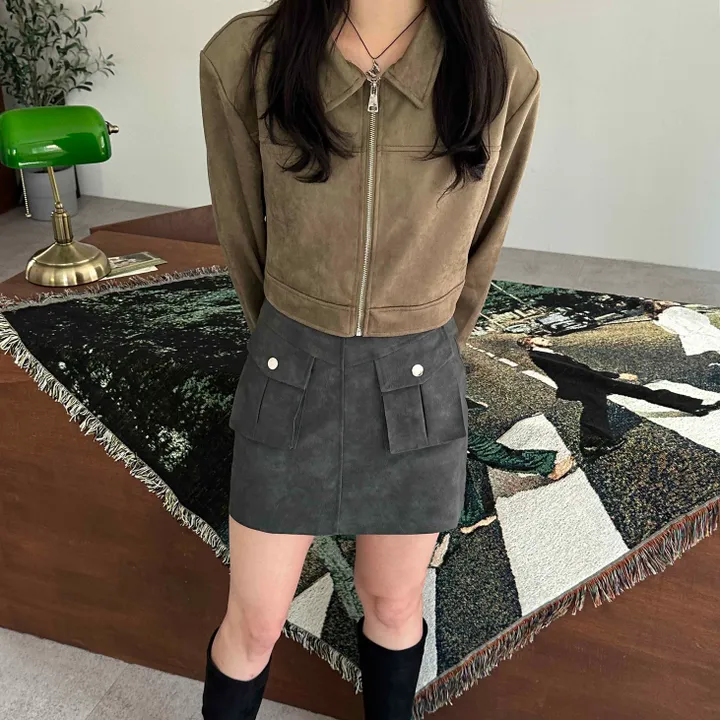 スエードオーバーサイズカラークロップドジップアップジャケット(3color)
