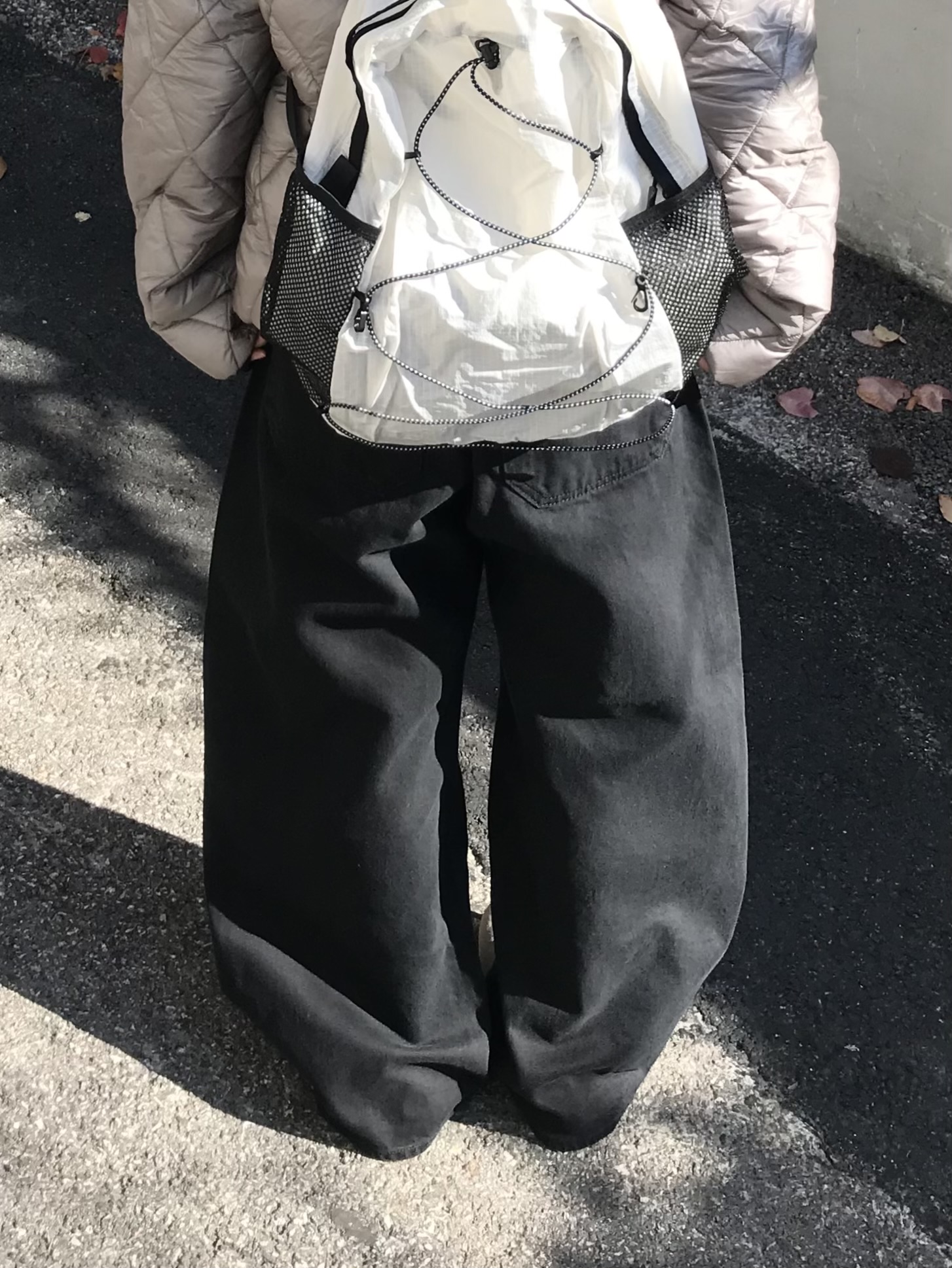 M ウエスト40.5 わたり40 ヒップ64 股上33 裾幅28.5 総丈104