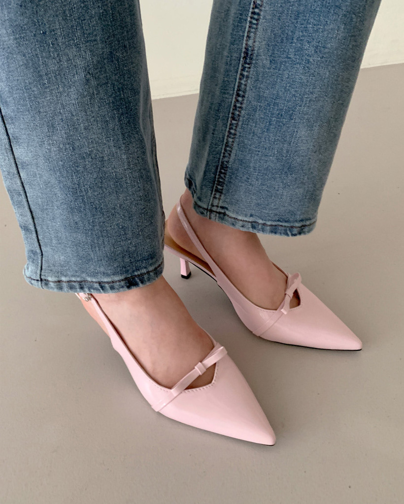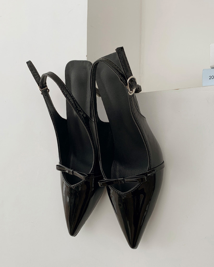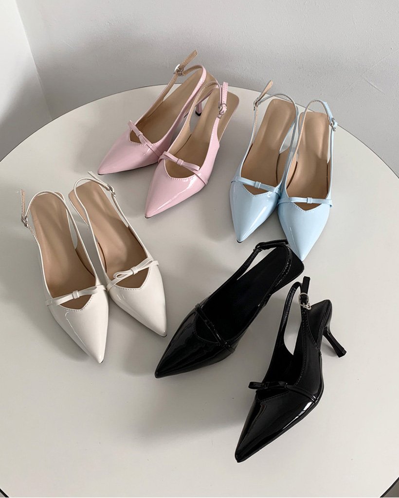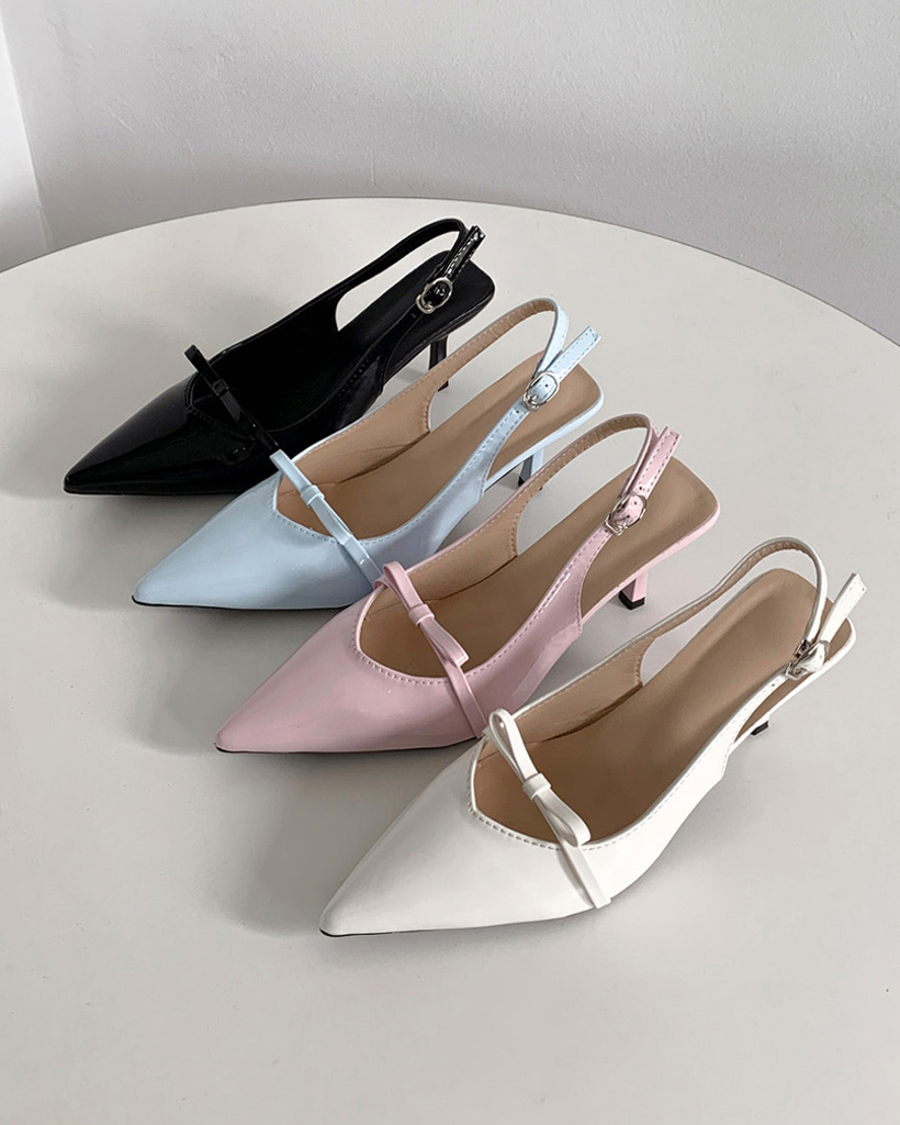 ポインテッドトゥリボンスリングバックヒール (4color)