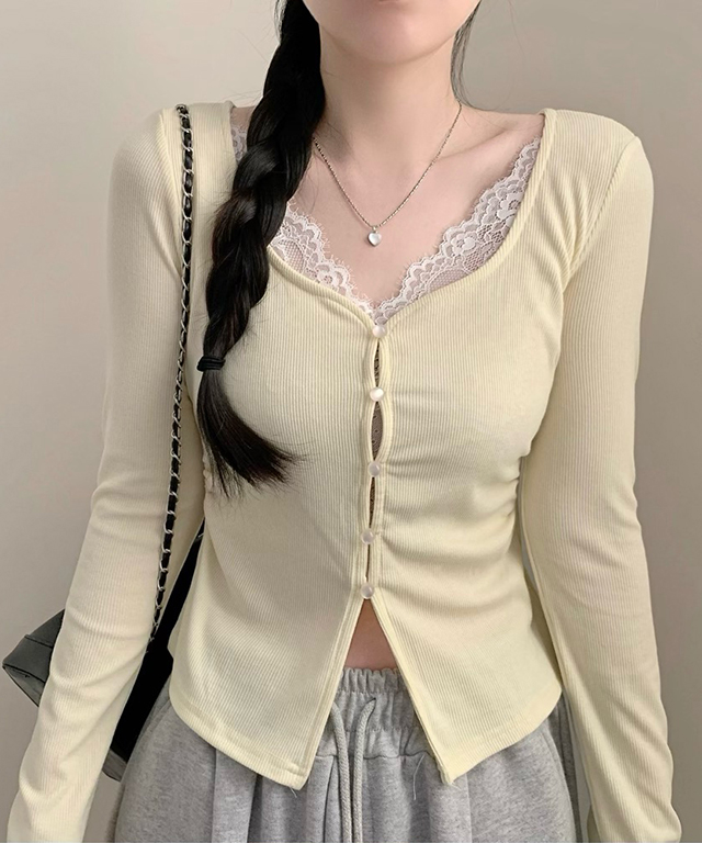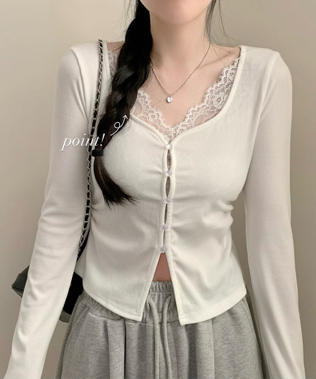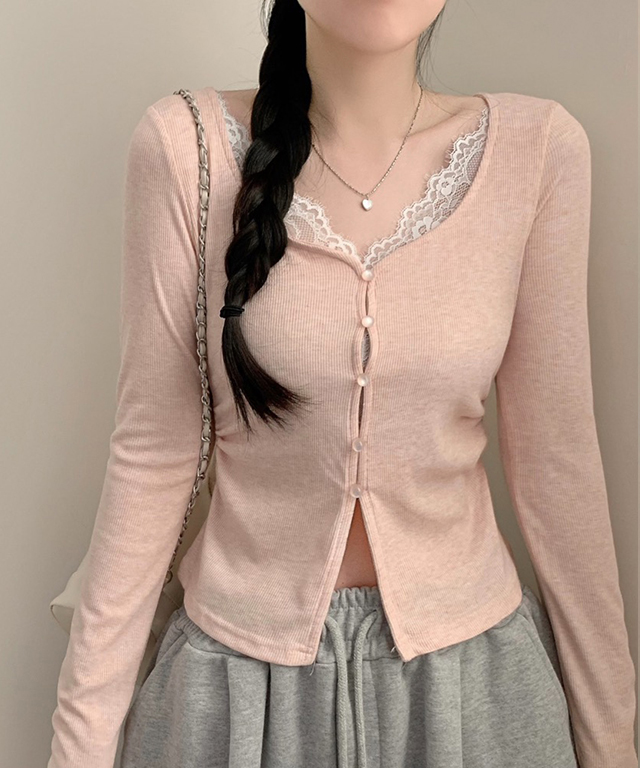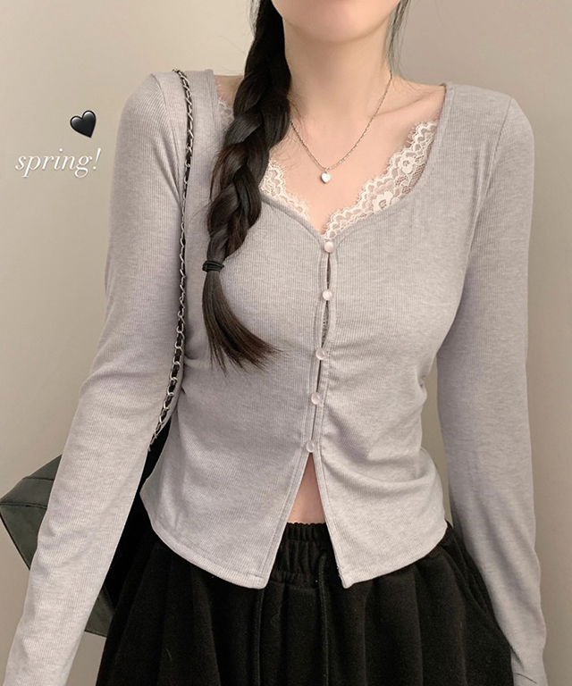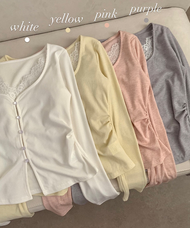 (4color)フロントボタンスリットロングスリーブTシャツ
