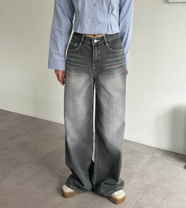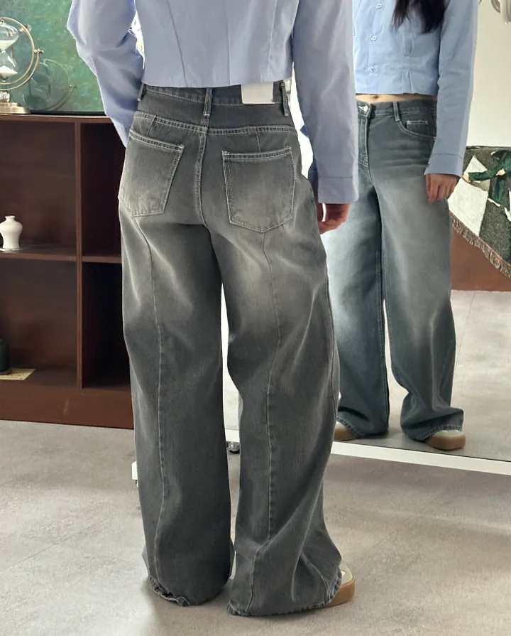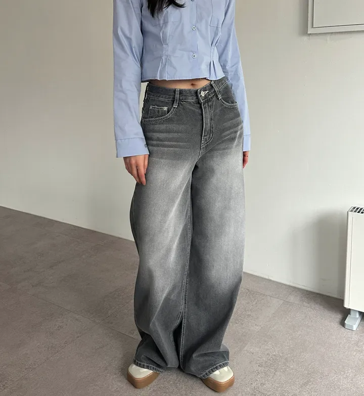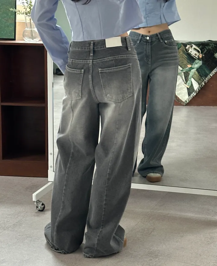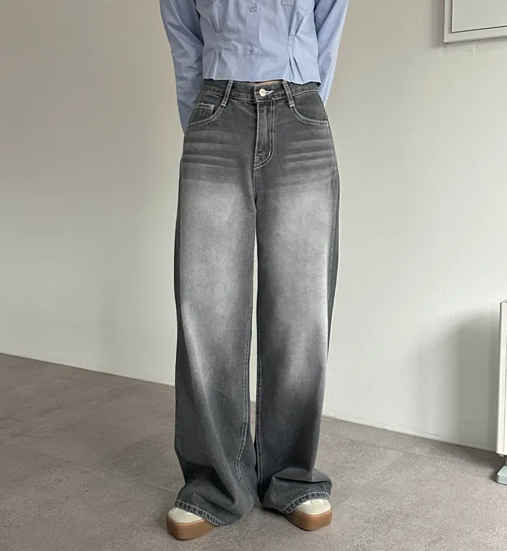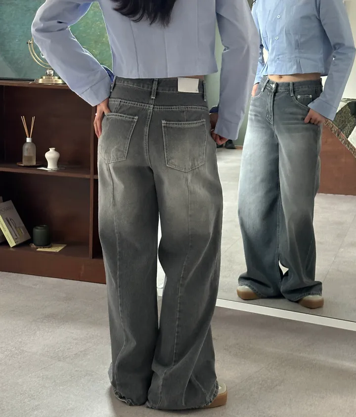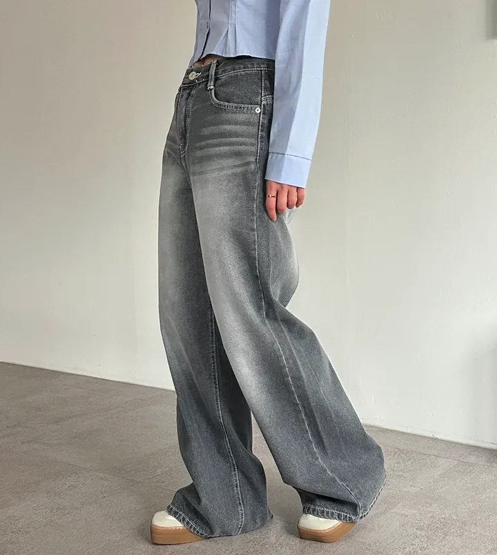 ウォッシュグレーデニムワイドロングパンツ[1color]
