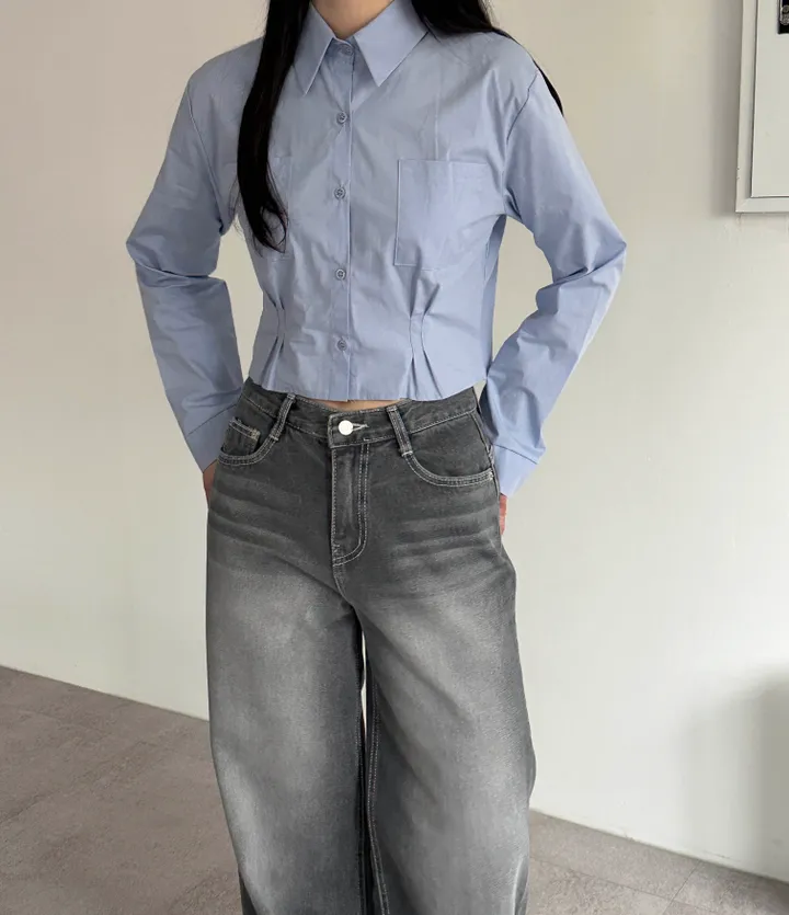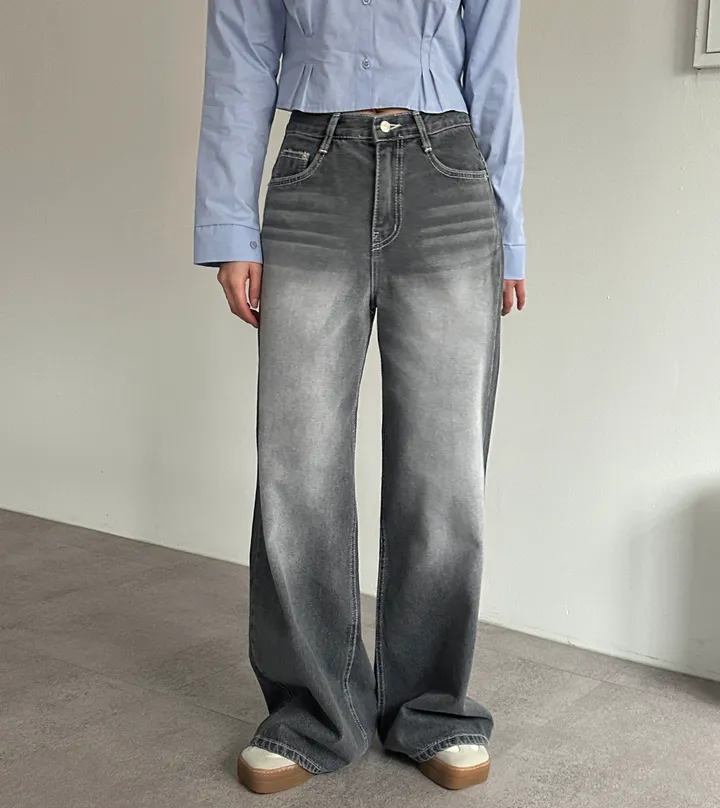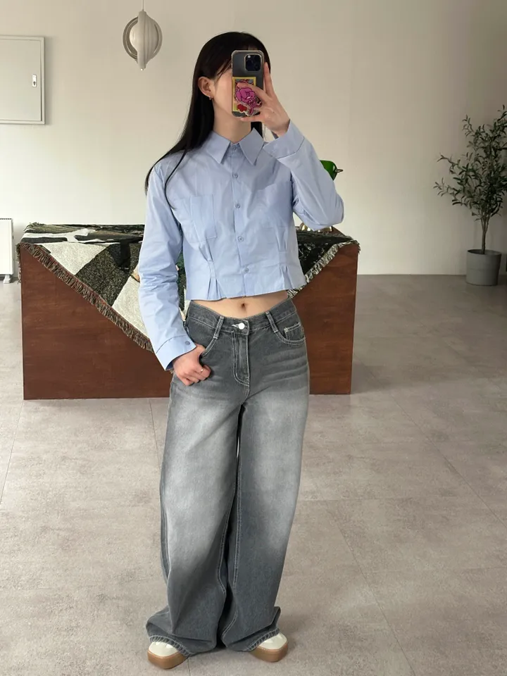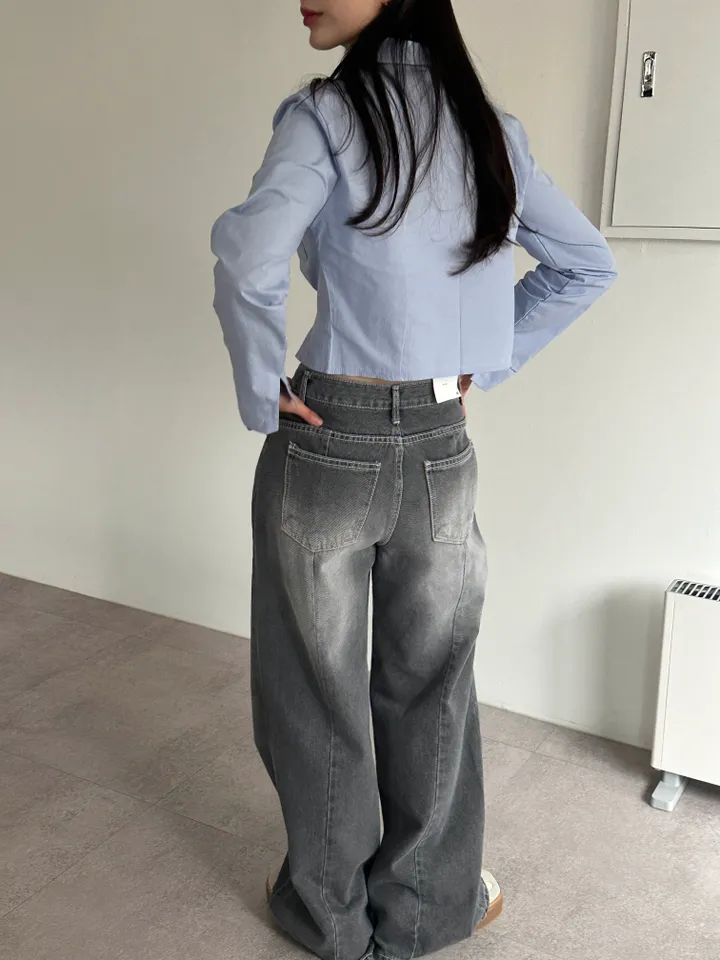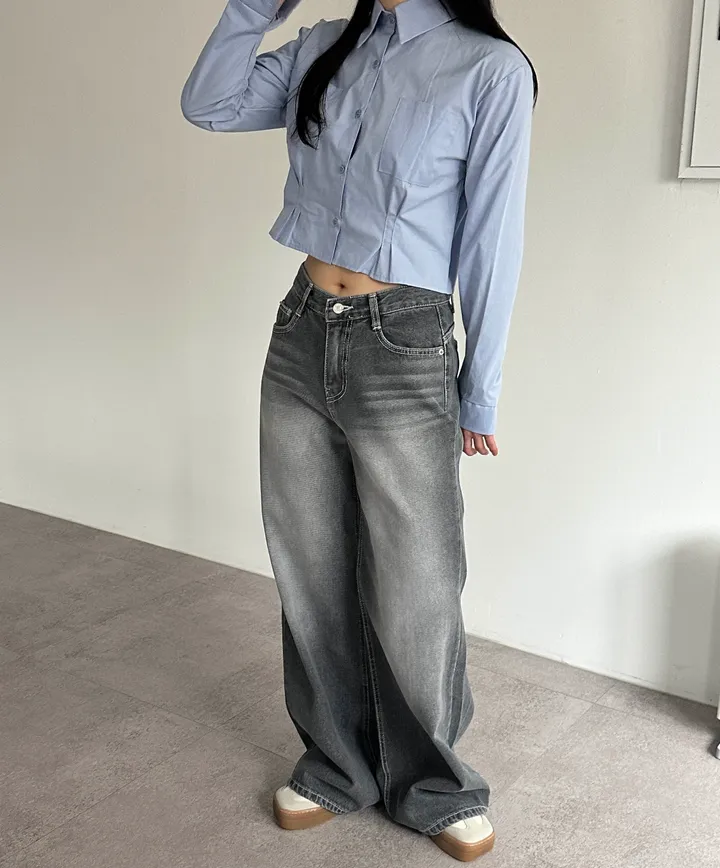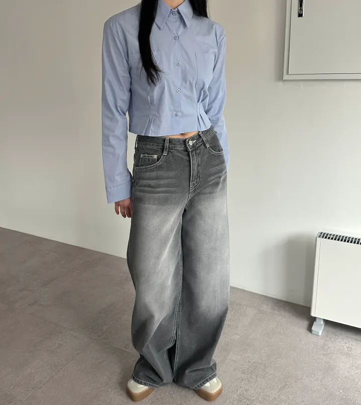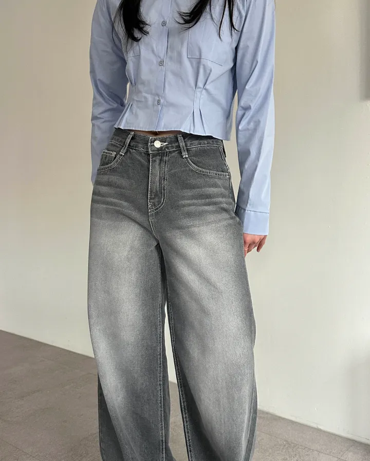 ウォッシュグレーデニムワイドロングパンツ[1color]