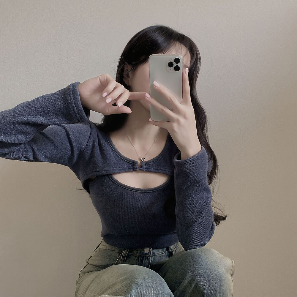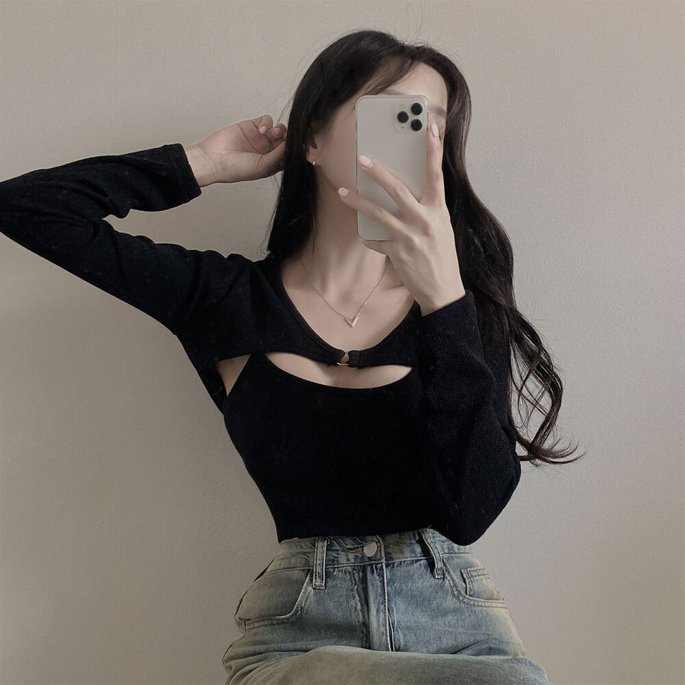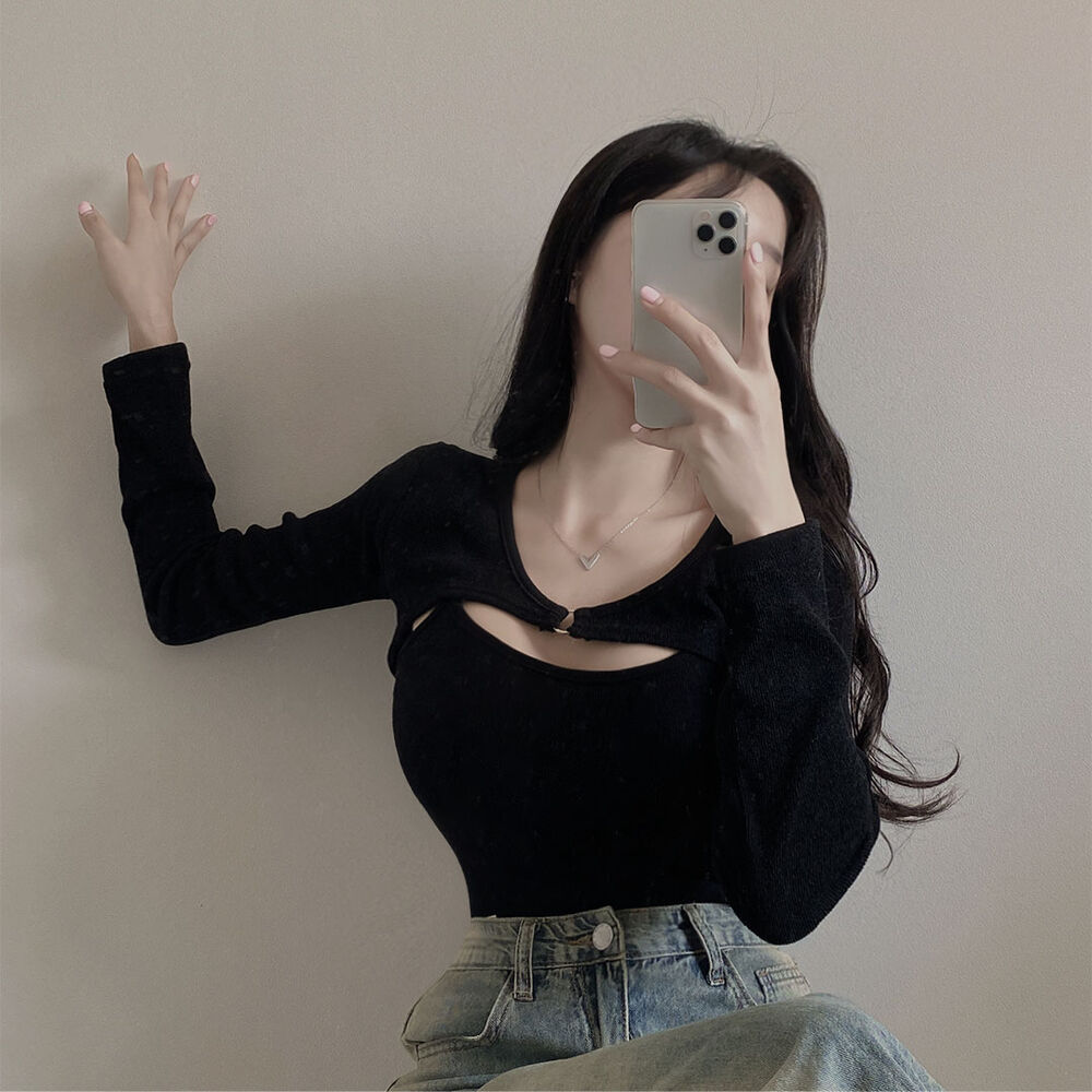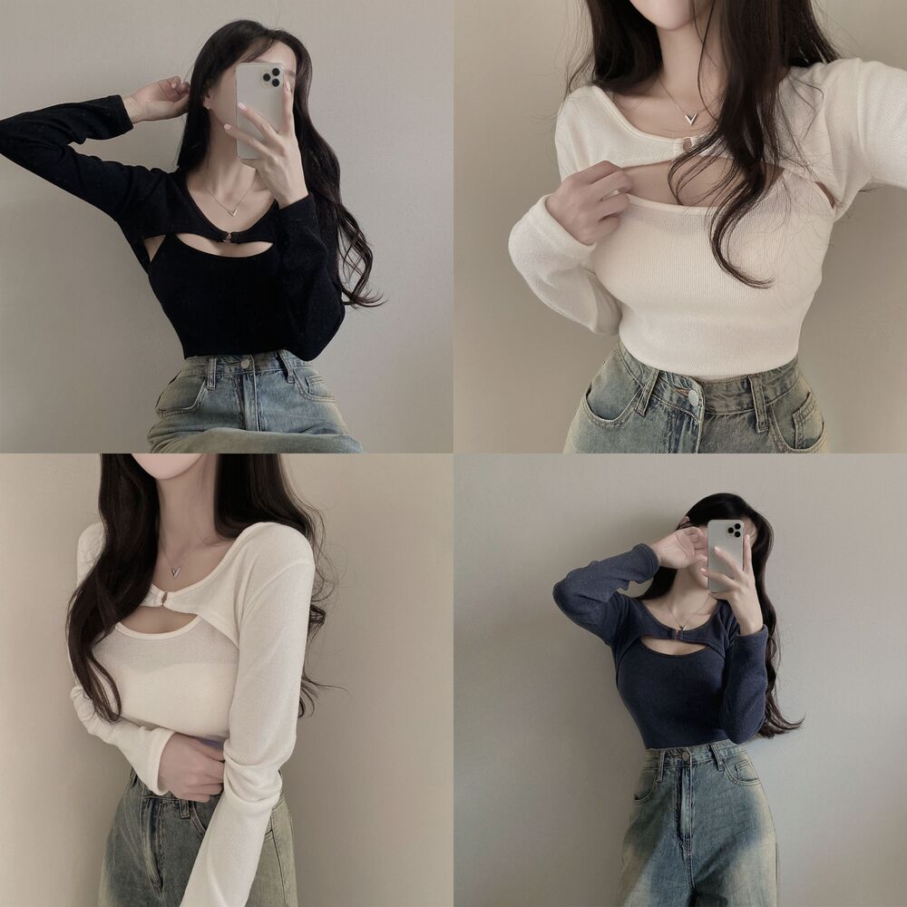 (SET)ボレロバックルスリムクロップドニットTシャツ+ノースリーブ
